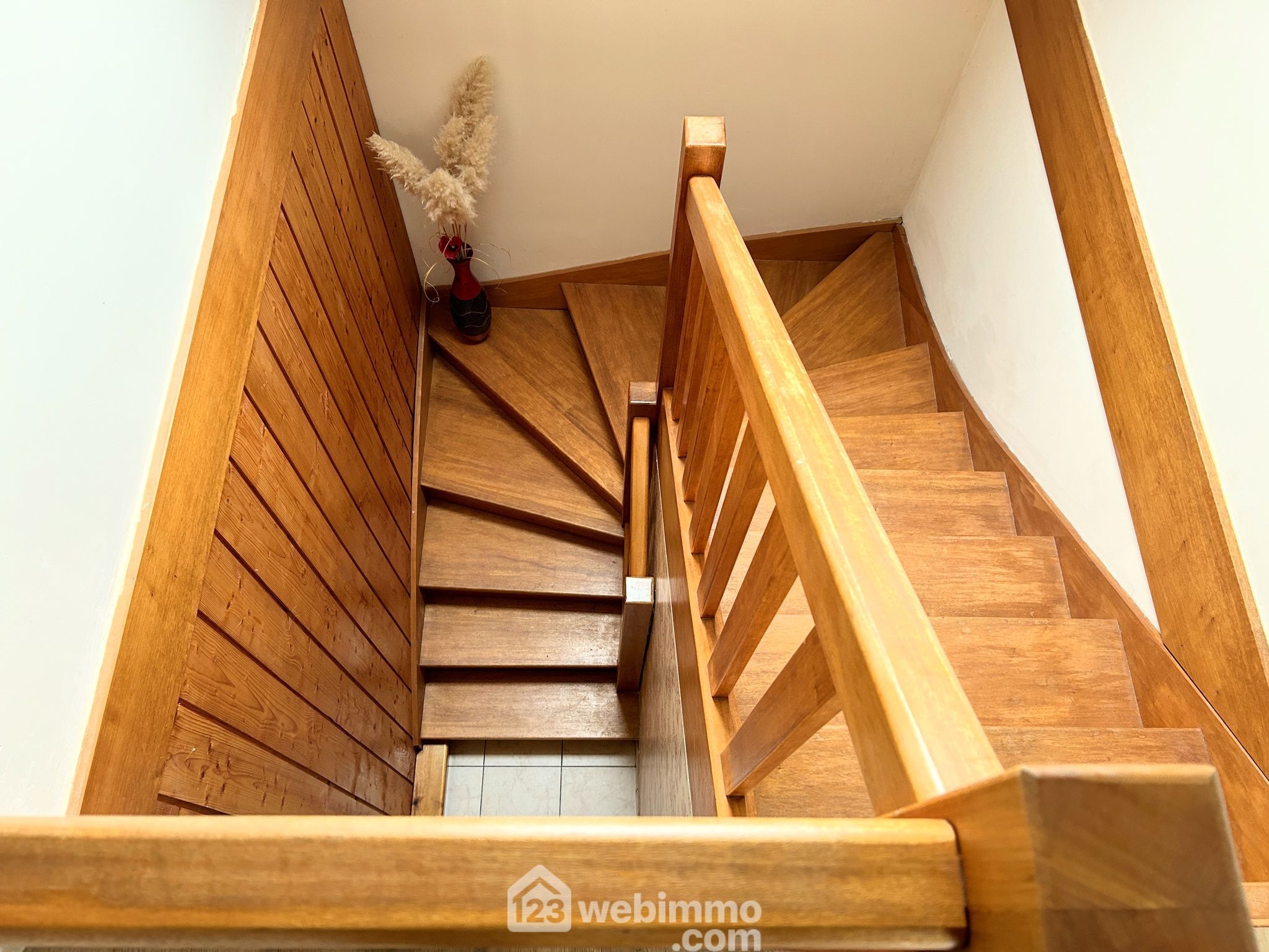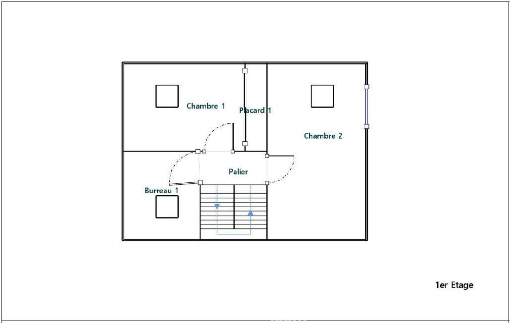 A l'étage, sur une dalle béton, le palier dessert 2 chambres de 12 et 19m2 au sol ainsi qu'un bureau/espace nuit de 8m2 au sol et de 4,5m2 habitables.