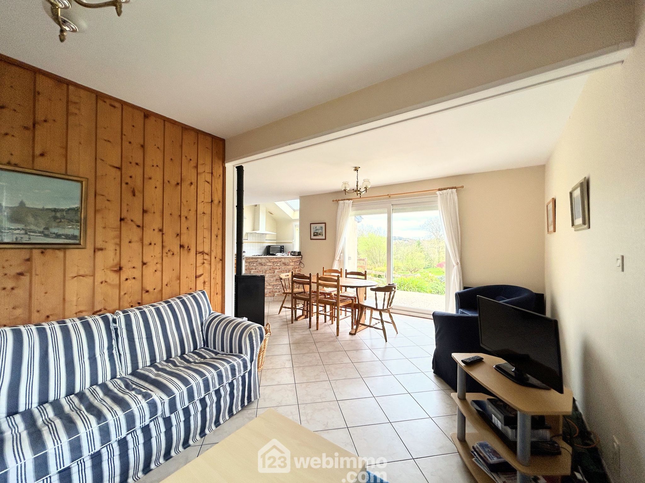 Dans le bourg de Trédrez, à 1,5km de la mer et à 10km de Lannion et sa gare TGV, sur une parcelle de 794m2, 100% constructible, maison de 1994 de 88m2 au sol, 74m2 habitables, orientée Sud avec sous-sol et hangar.