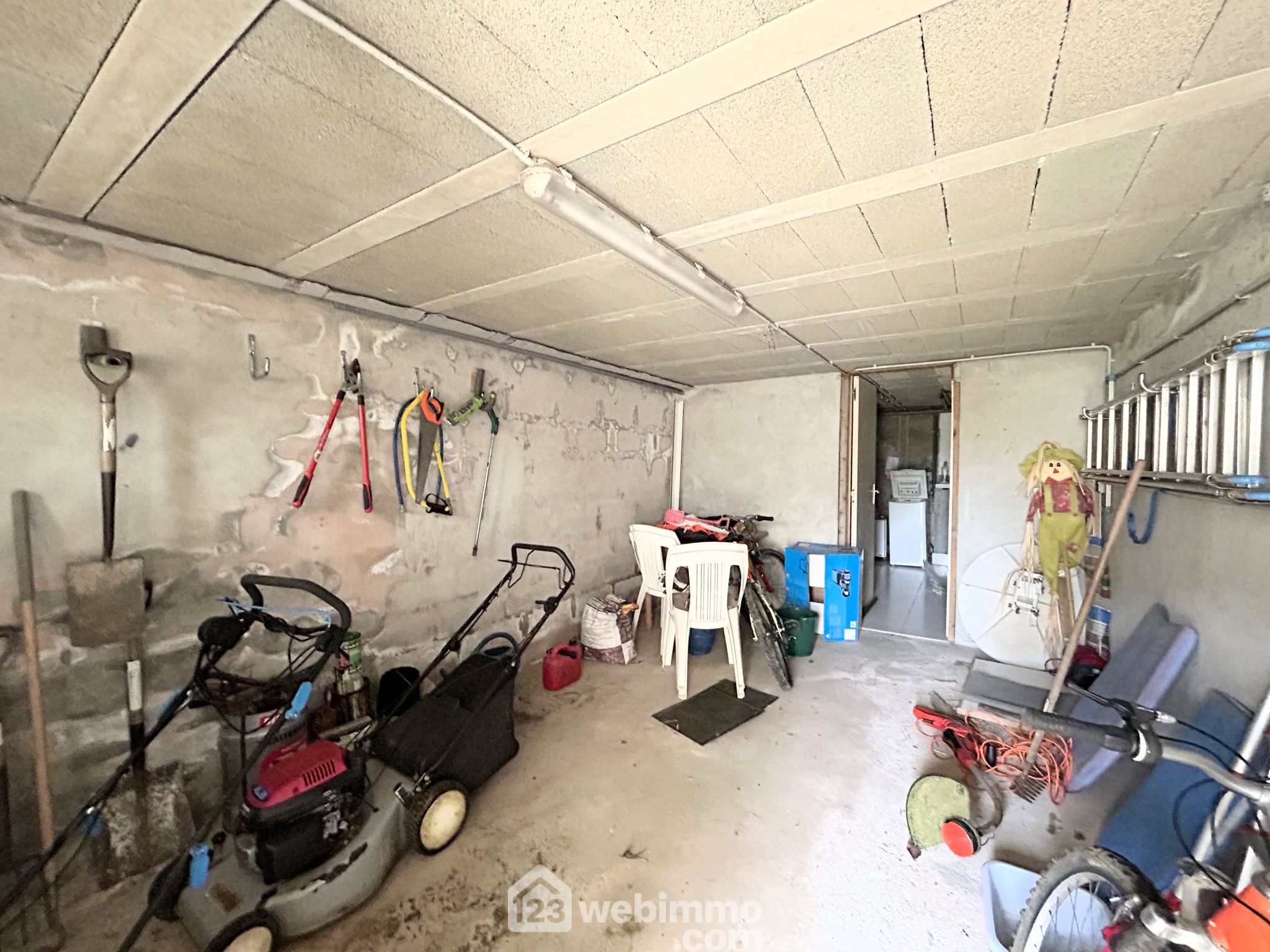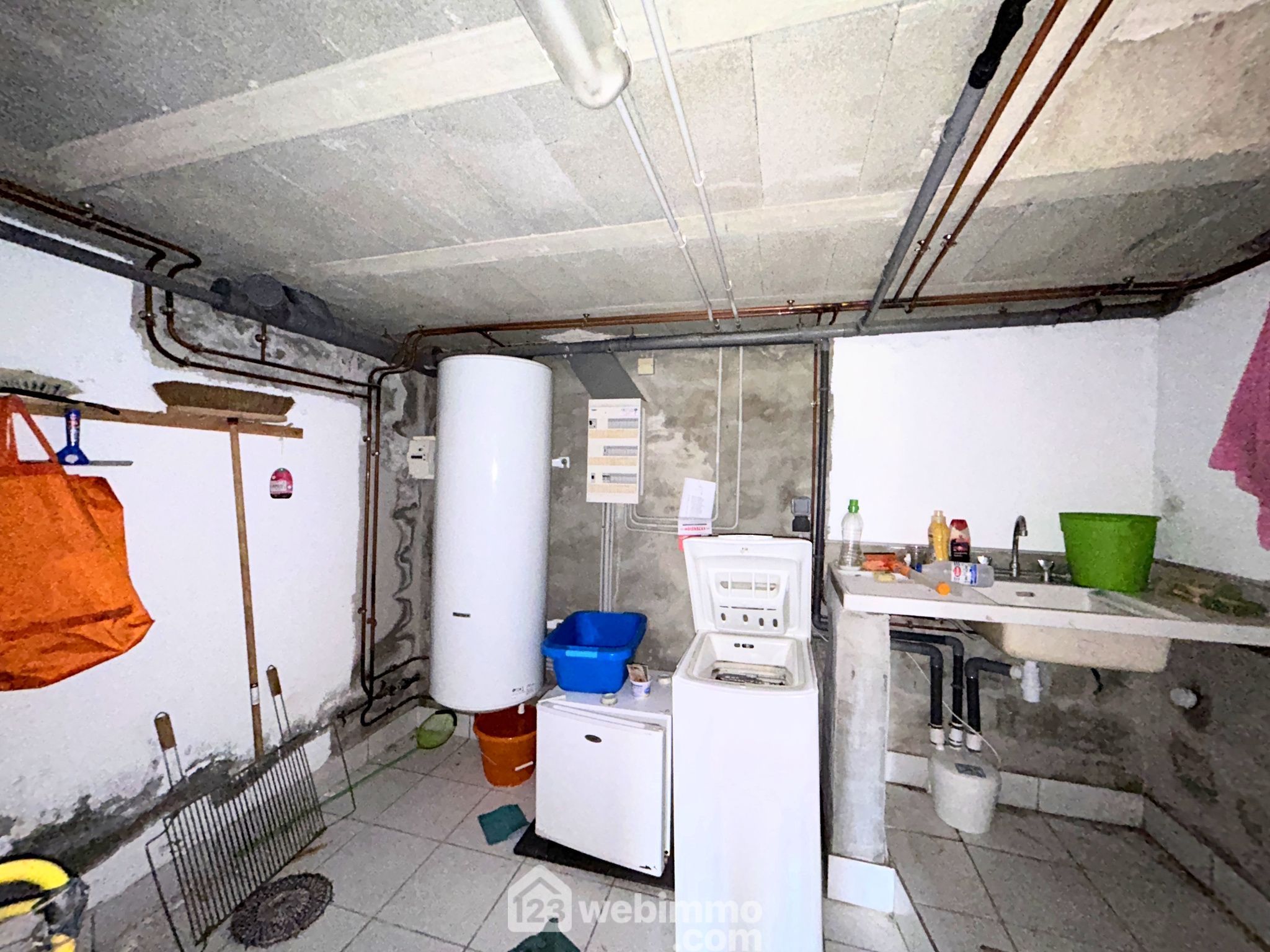 Accessible par la maison, un sous-sol comprend un espace laverie avec un point d'eau de 9m2 et un garage de 16m2 avec porte manuelle.