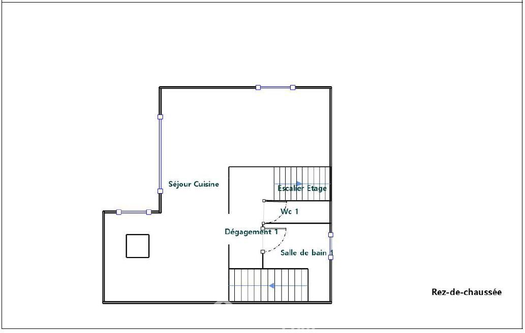 Le rez-de-chaussée s'ouvre sur une pièce de vie renfermant une cuisine aménagée et équipée de 9m2 et un salon - séjour en L de 25 m2 prolongé d'une terrasse de 15m2 orientée plein sud. une salle de bains de 5m2 et un WC séparé complètent ce niveau.