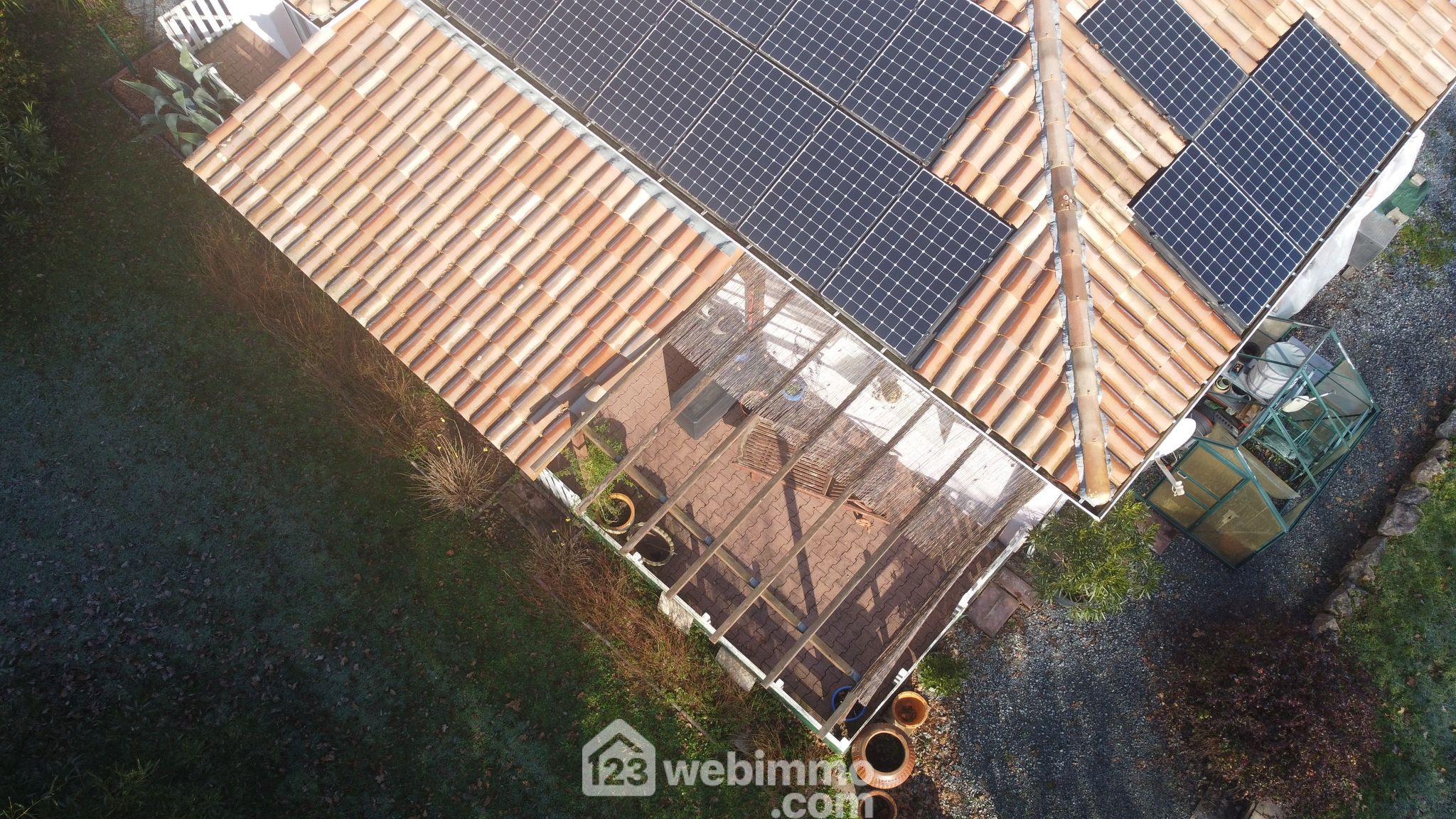 Panneaux photovoltaïques générant environ 1400 €/an grâce à la revente d’électricité (pas de compteur Linky).