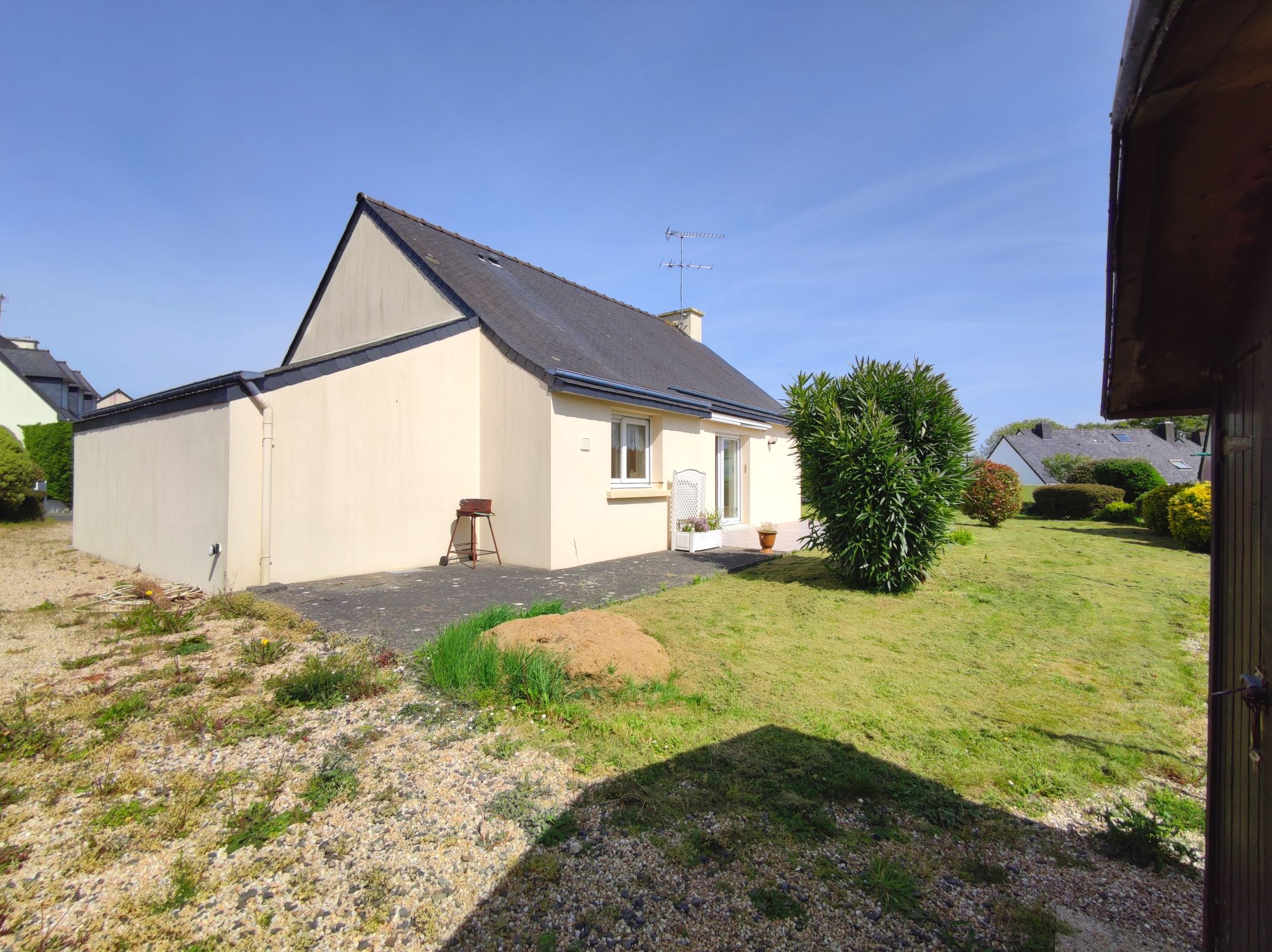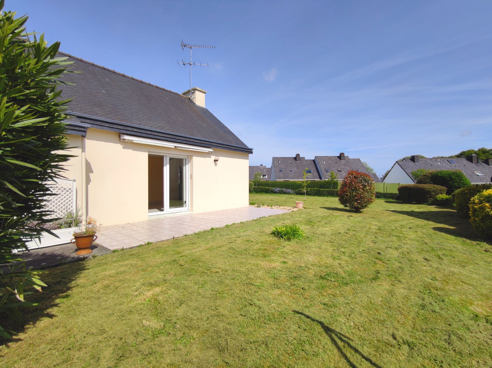 A Lannion, dans le quartier de Kerligonan, à 300m de toutes les commodités, sur une grande parcelle de 666m2, orientée sud-ouest, maison contemporaine de plain-pied, de 75m2 habitables sans vis-à-vis avec garage attenant de 18m2.