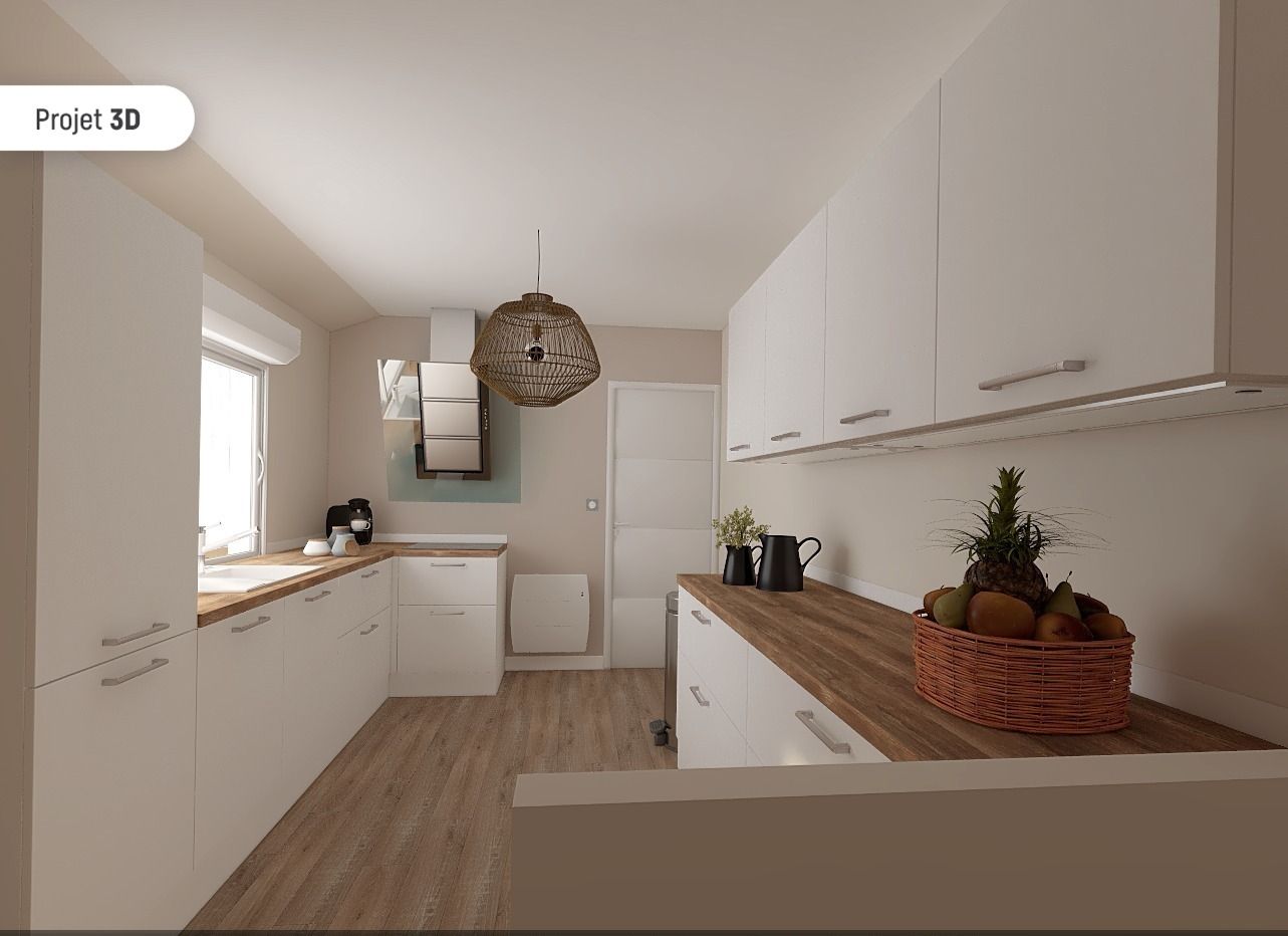 La maison se compose d'une pièce de vie de 39m2 avec un espace cuisine ouvert, 2 chambres de 12m2 et 9m2, un bureau de 8m2, une salle de douche et un WC séparé.
