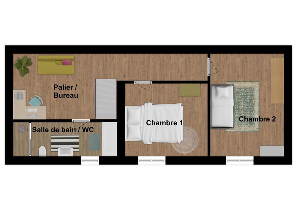Maison en pierre, 3 pièces avec bureau, 75 m2 habitables. Rénovée avec goût, lumineuse, exposée Sud-Ouest. Vue dégagée.