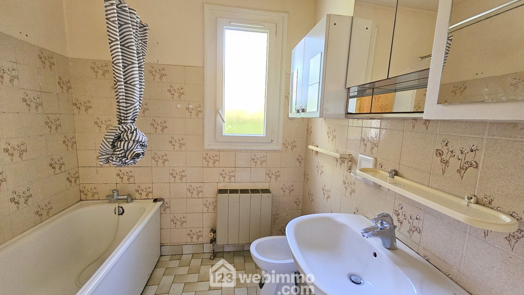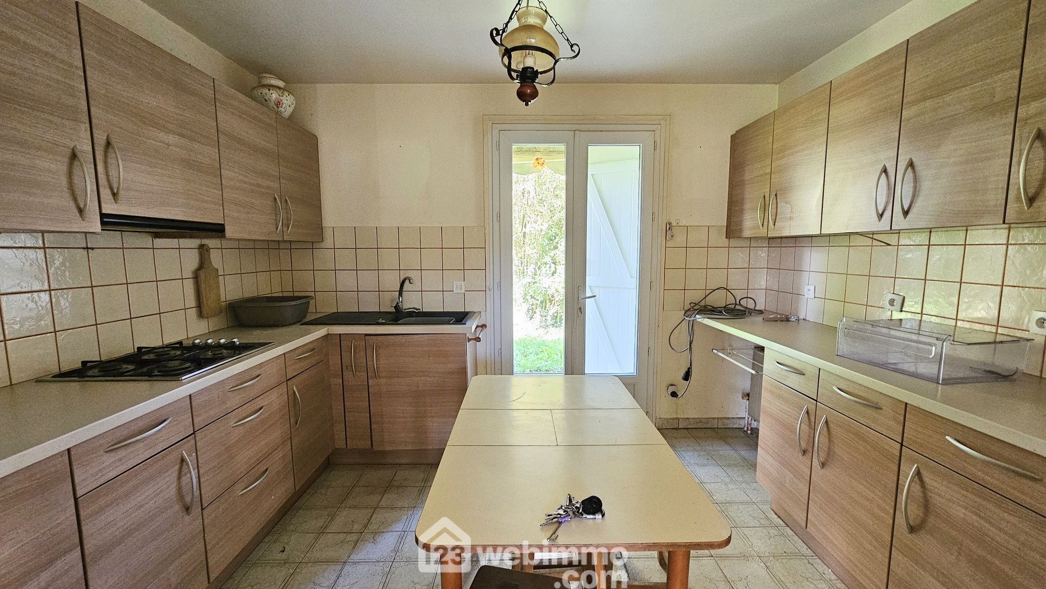 Elle se compose d’une entrée, d’un cellier, d’un séjour spacieux de 27 m² avec cheminée insert, d’une cuisine meublée, de deux chambres, d’une salle de bains et d’un WC.