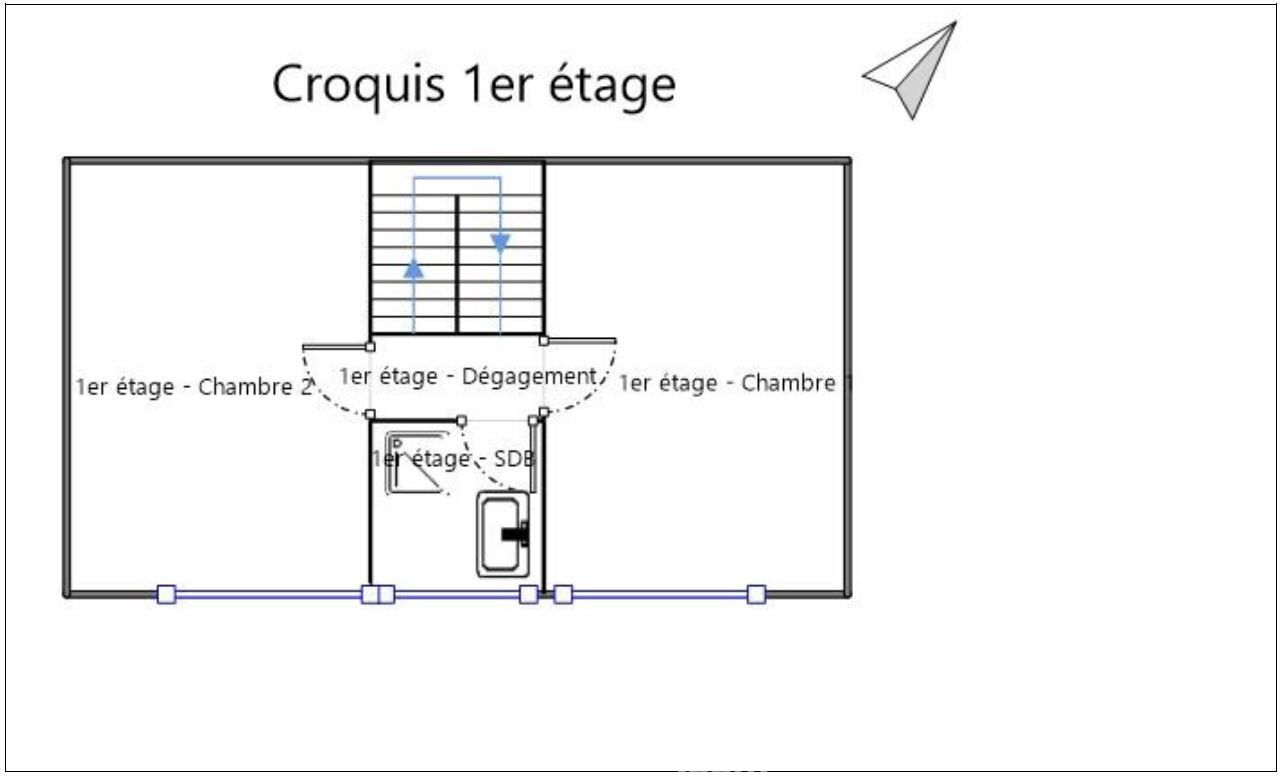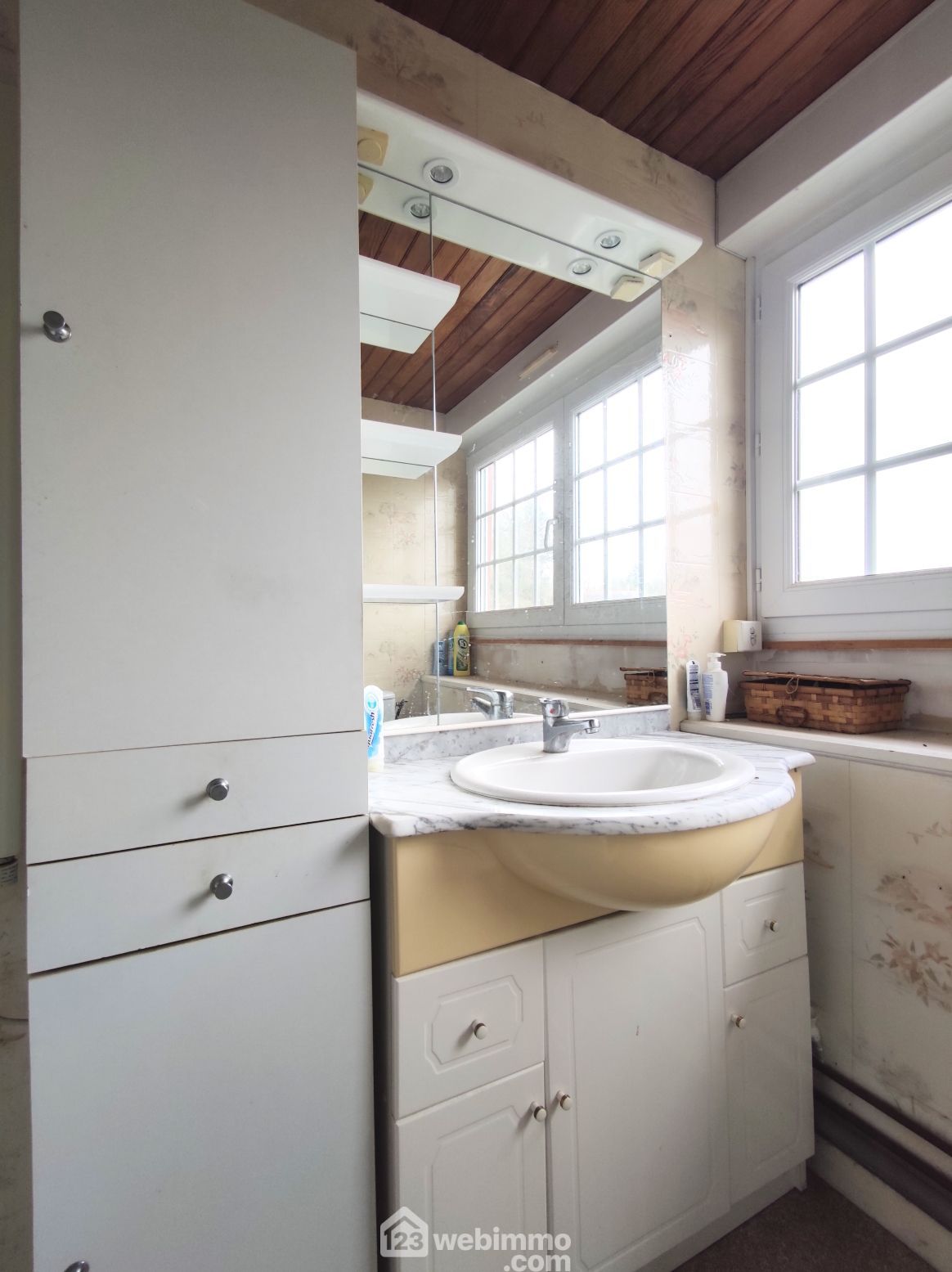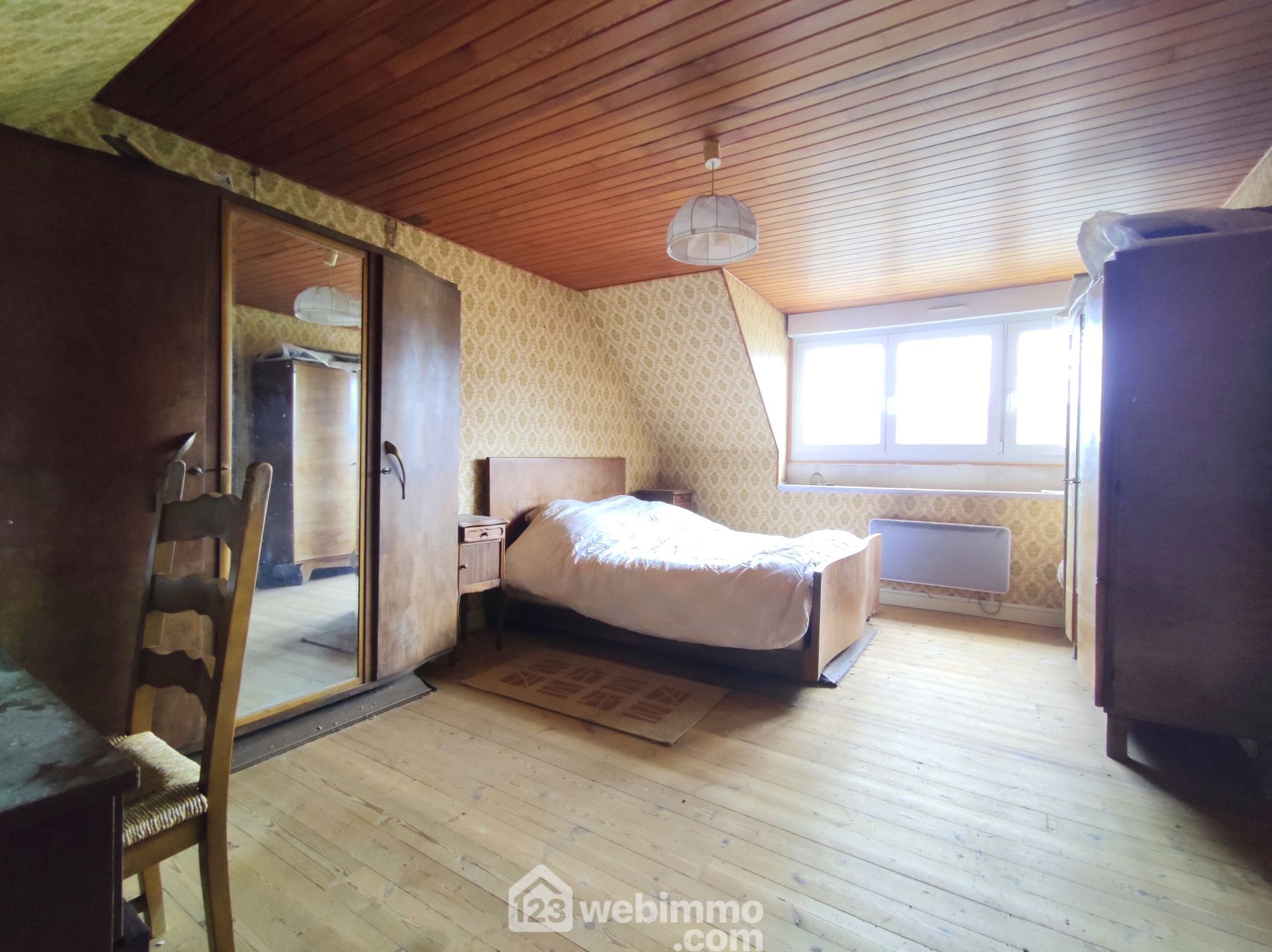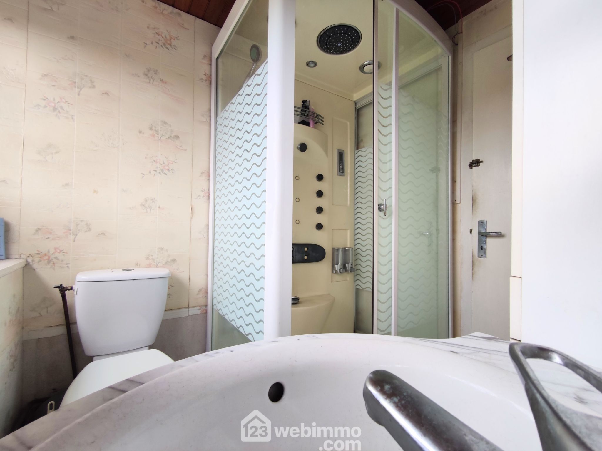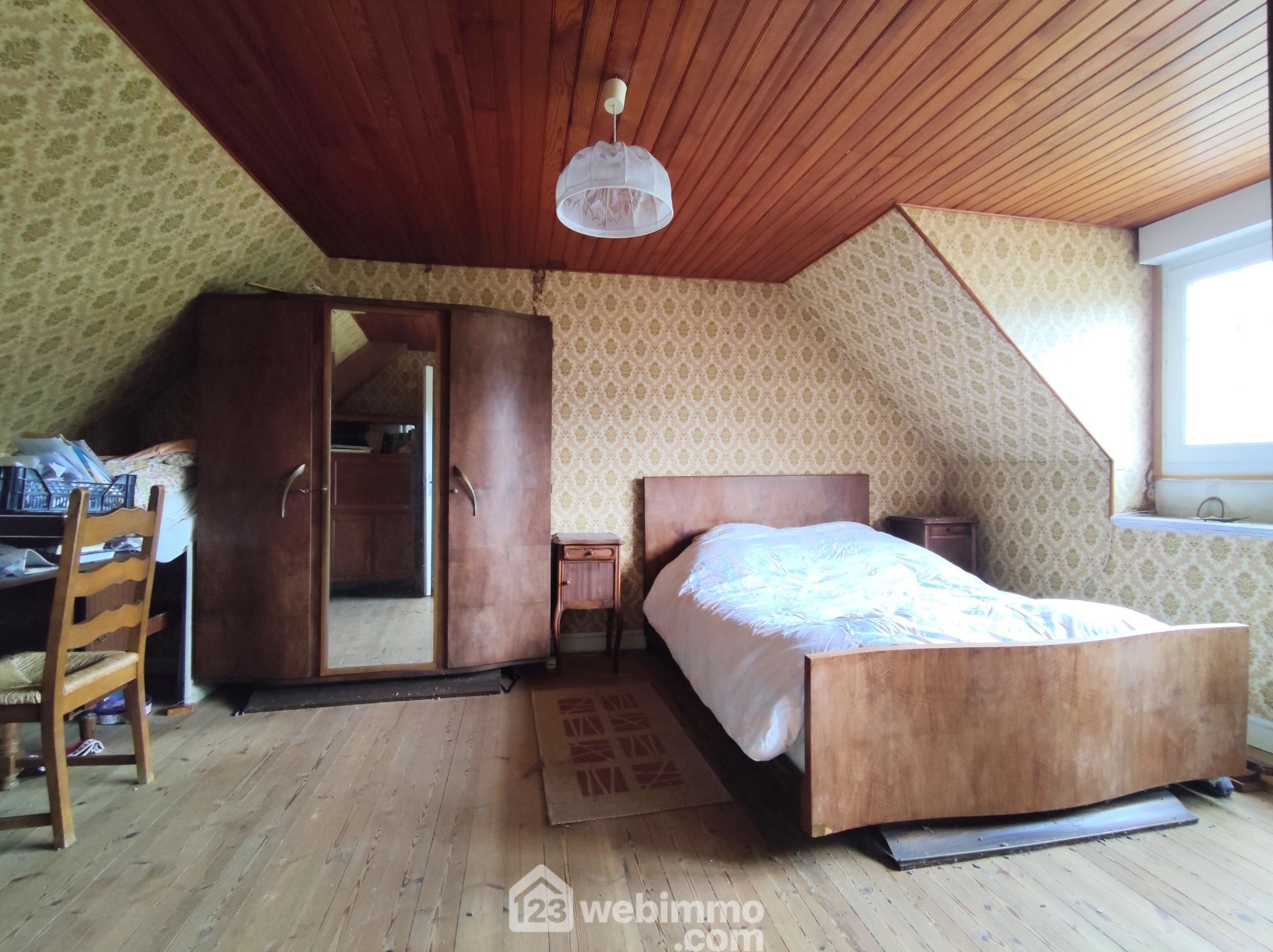 A l'étage, un palier dessert 2 grandes chambres en partie mansardées de 14 et 15m2 habitables et une salle de douche avec WC.