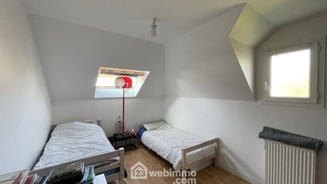 A l'étage, par plancher béton (43 m²) : Dégagement, trois belles chambres dont une avec dressing, salle de bains, wc indépendant.