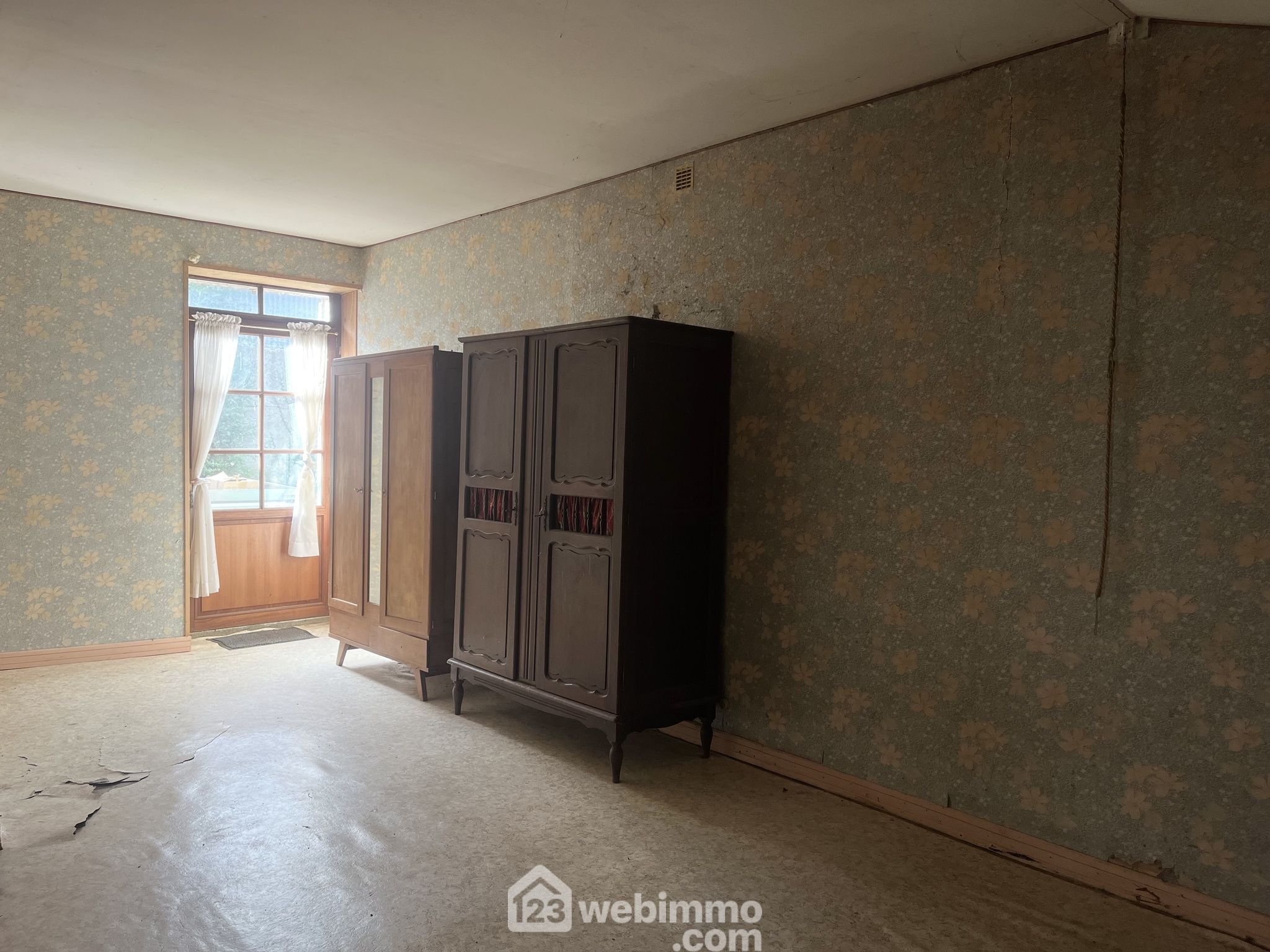 Maison à rénover divisée en deux parties pour un total de 80 m2 habitables, 5 pièces, 4 chambres, sur 1202 m2 de terrain.