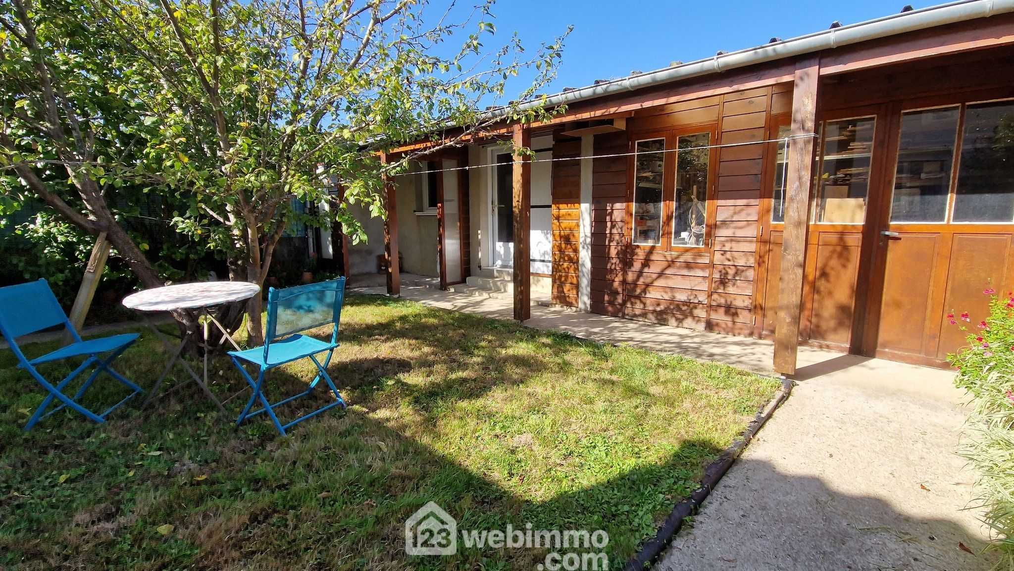 - une dépendance au fond du jardin avec une partie habitable de 11 m² (bureau ou chambre avec point d'eau et wc sanibroyeur, possibilité douche) et un atelier de même surface.