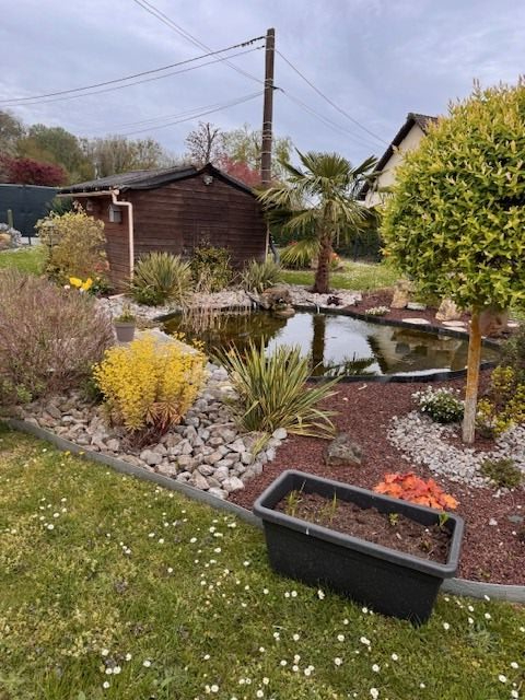 Un jardin soigneusement entretenu par un paysagiste, agrémenté d’un charmant bac à poissons