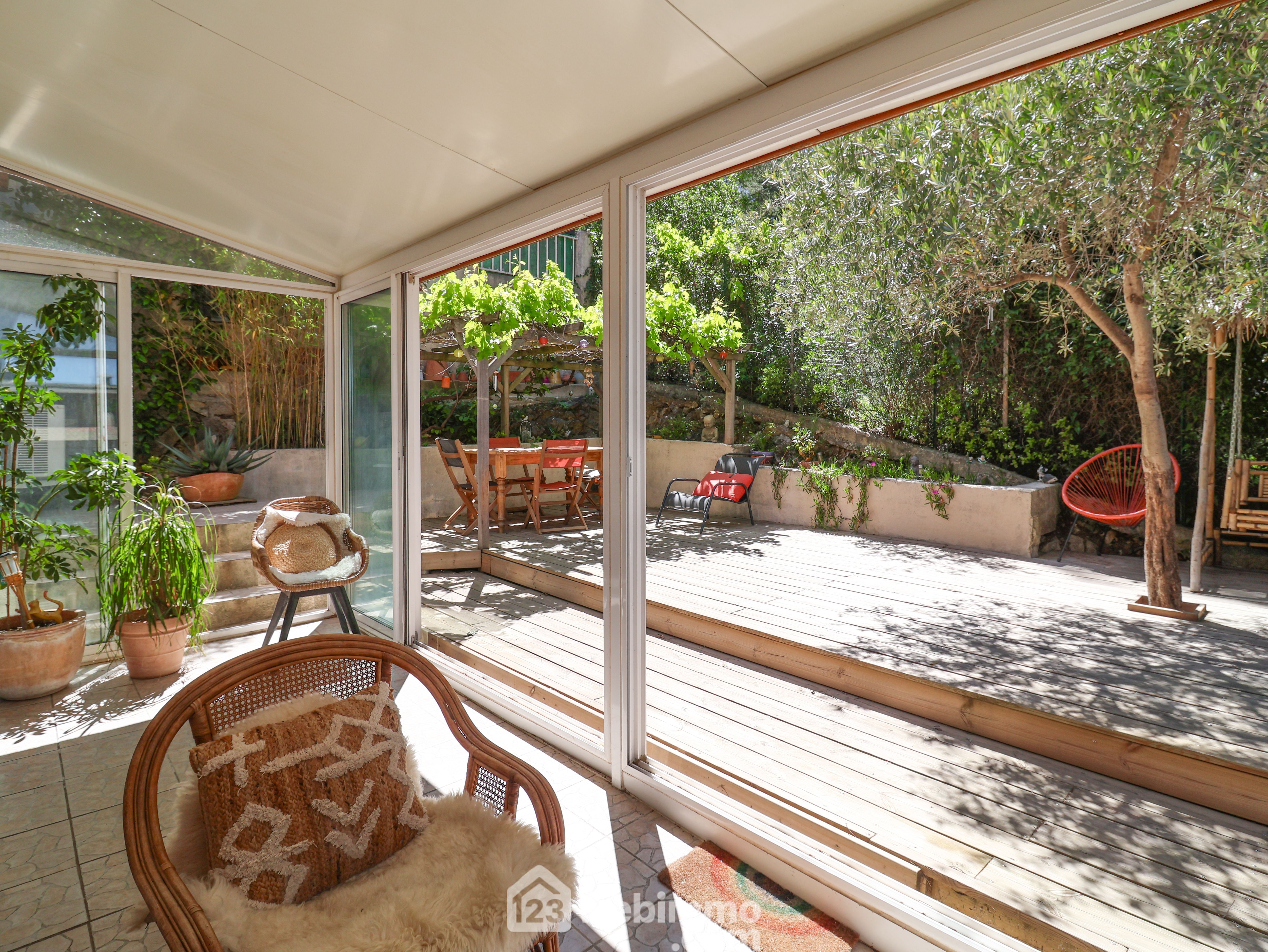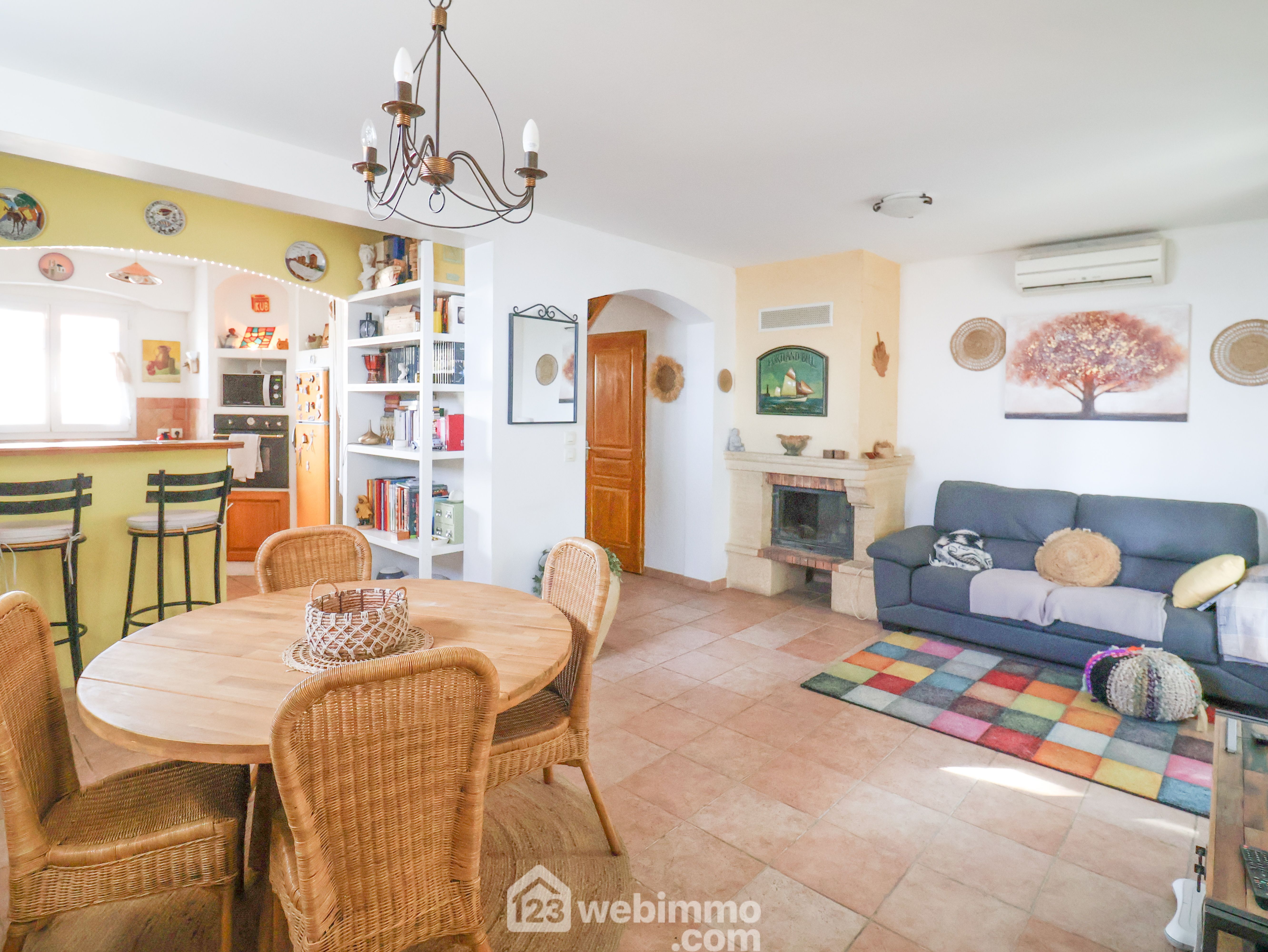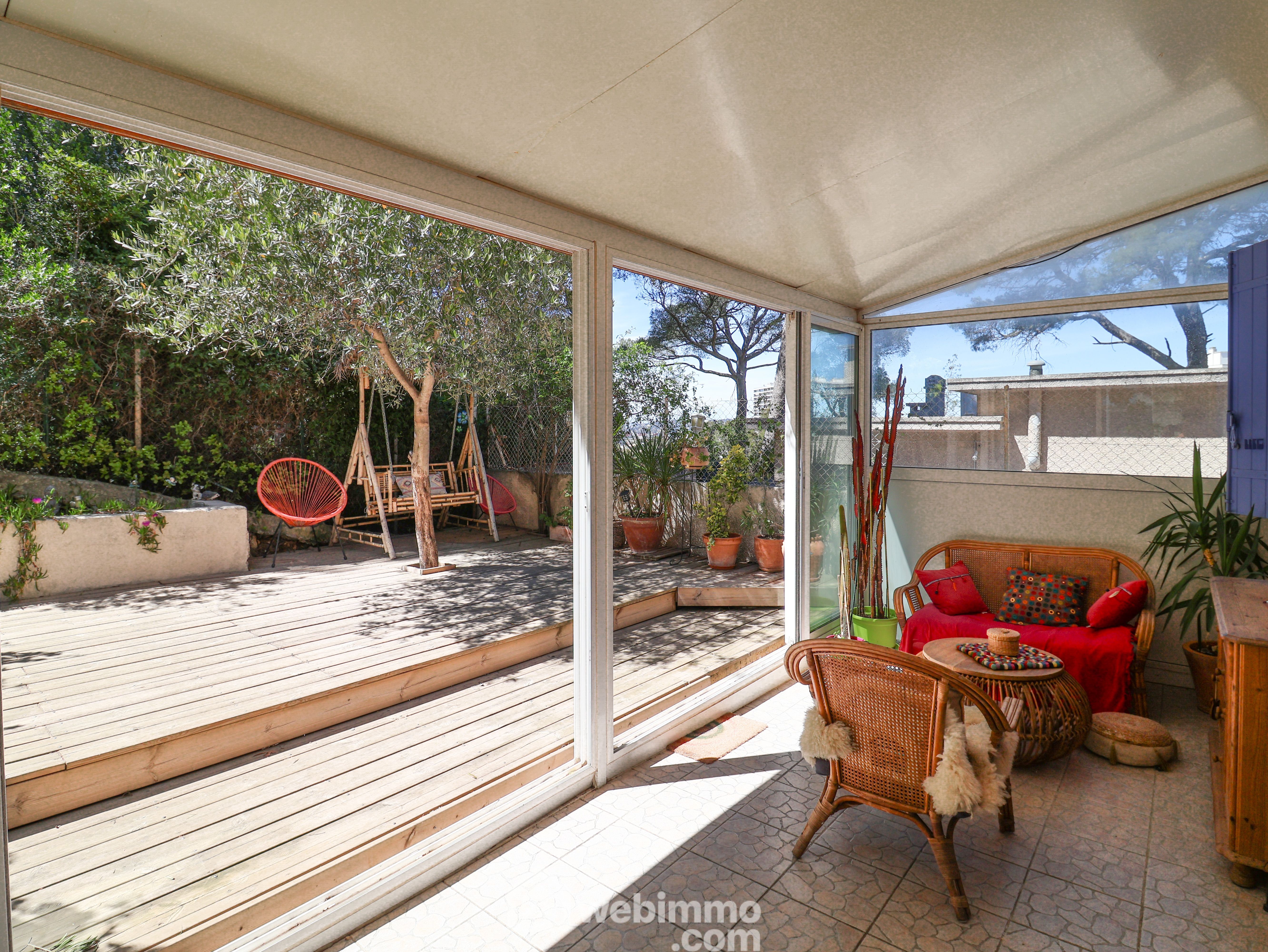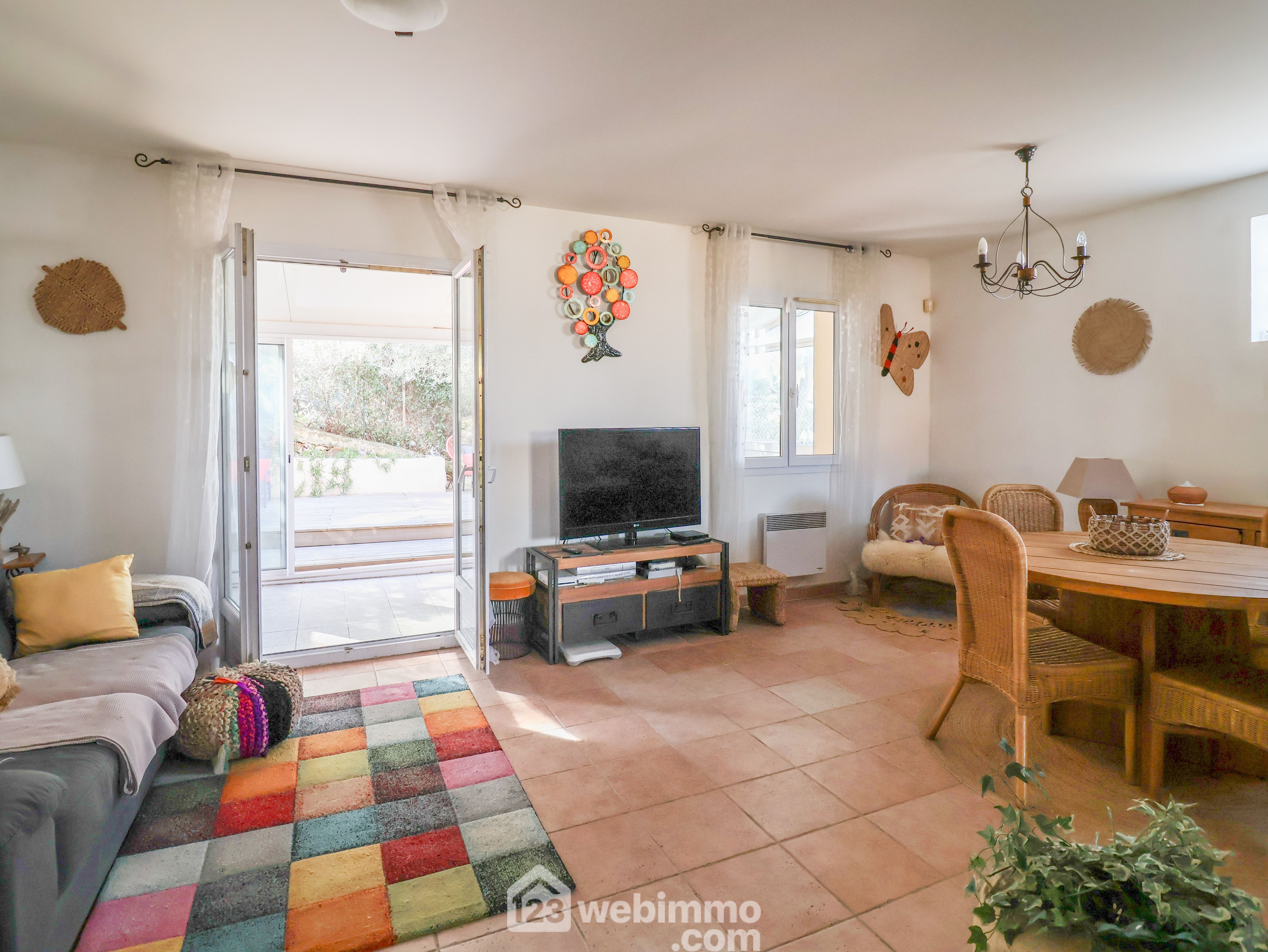 LE REDON côté Félibrige aux portes des Calanques au fond d'une impasse nichée dans la pinède au calme. Charmante maison de 2001 de type 4 de 80m2 avec garage sur un terrain de 200m2. Au premier niveau elle se compose d'un séjour cuisine de 31m2 prolongé par une véranda de 13m2 qui s'ouvre sur un vaste extérieur exposé OUEST duquel la vue sur la pinède vous séduira. A l'étage la partie nuit se compose de 3 chambres et d'une salle de bain. La mer s'aperçoit au travers de la pinède. A chaque niveau se trouve un wc séparé. Le garage attenant mesure 13m2, un 2ème véhicule peut être stationné devant le garage. Double vitrage, climatisation réversible dans le séjour. Cheminée avec insert. Accès facile à pied au Bus B1.
