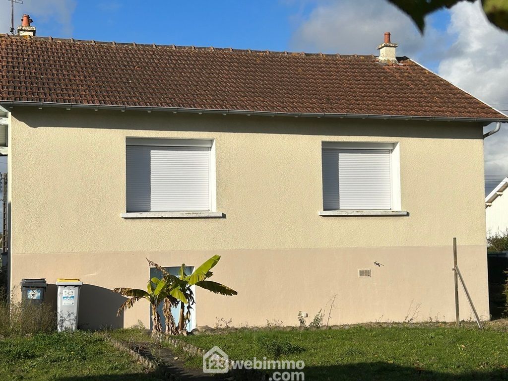 Maison sur sous-sol, 80 m2 habitables, 3 pièces, 2 chambres, garage, jardin avec grand abri, sur un terrain de 576 m2.
