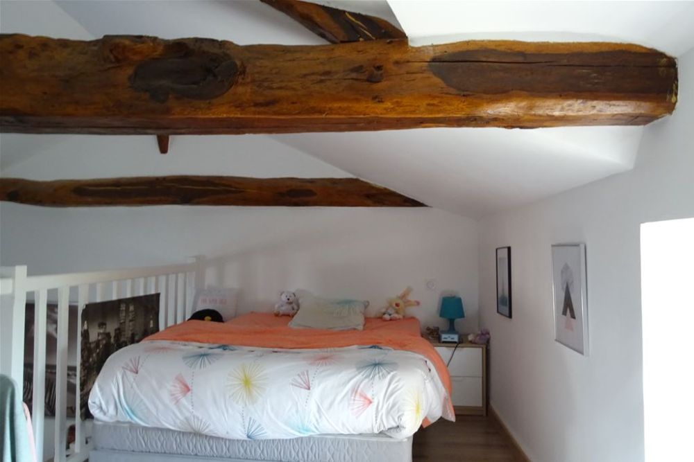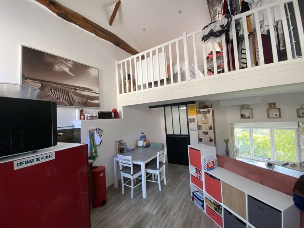 - le 1er logement de 35 m² propose une cuisine neuve aménagée et équipée ouverte sur un salon, une salle d'eau avec WC. En mezzanine, une chambre sur parquet. Au sous-sol : une buanderie.