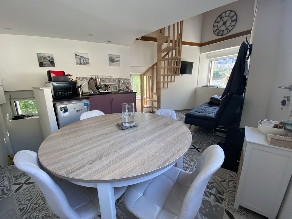 - le 2d logement de 45 m² comprend : une pièce de vie avec cuisine équipée, une salle d'eau avec WC. A l'étage une chambre avec balcon.