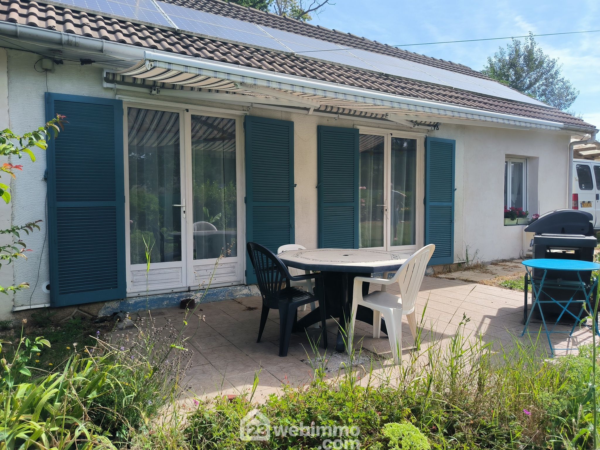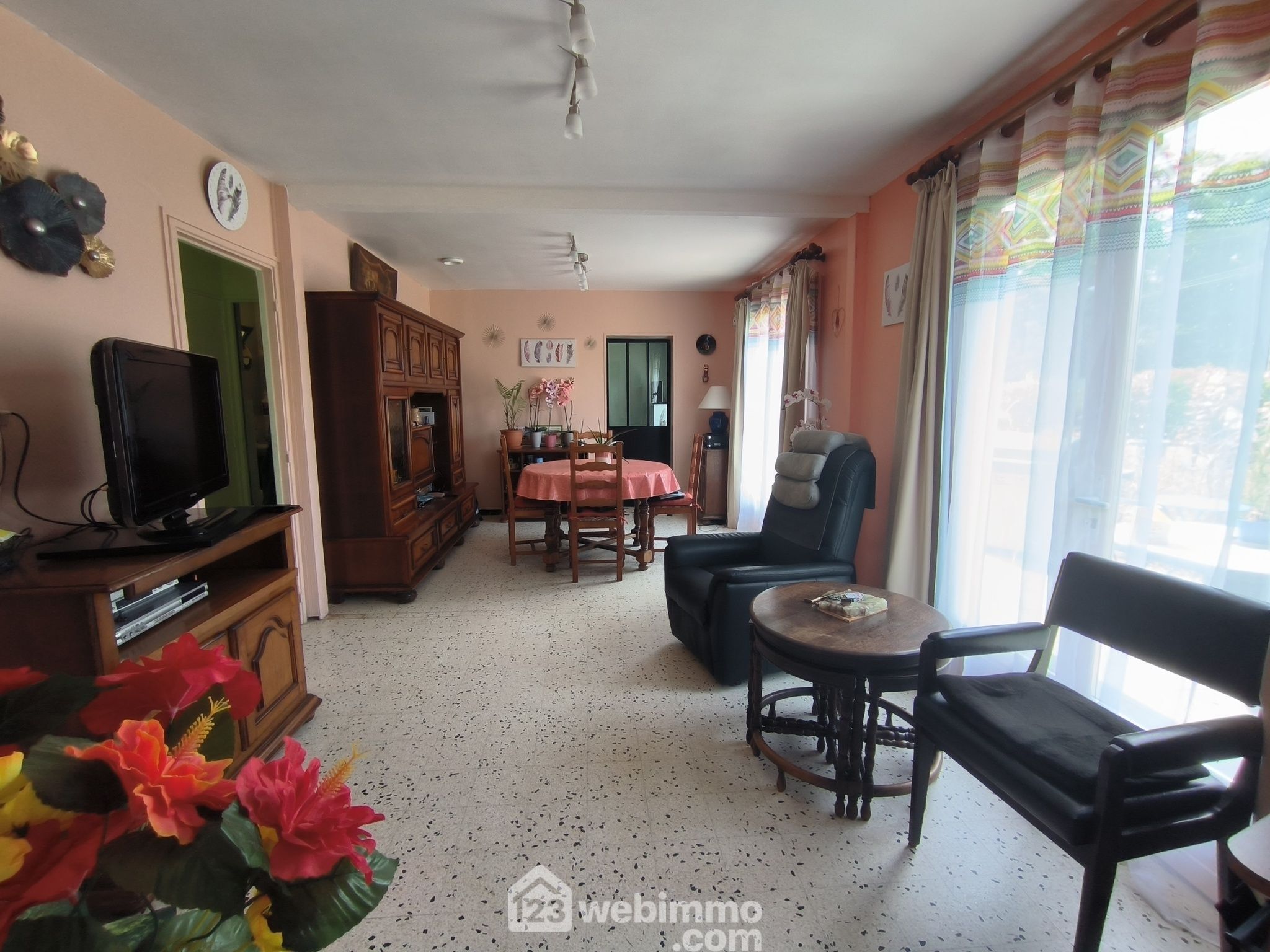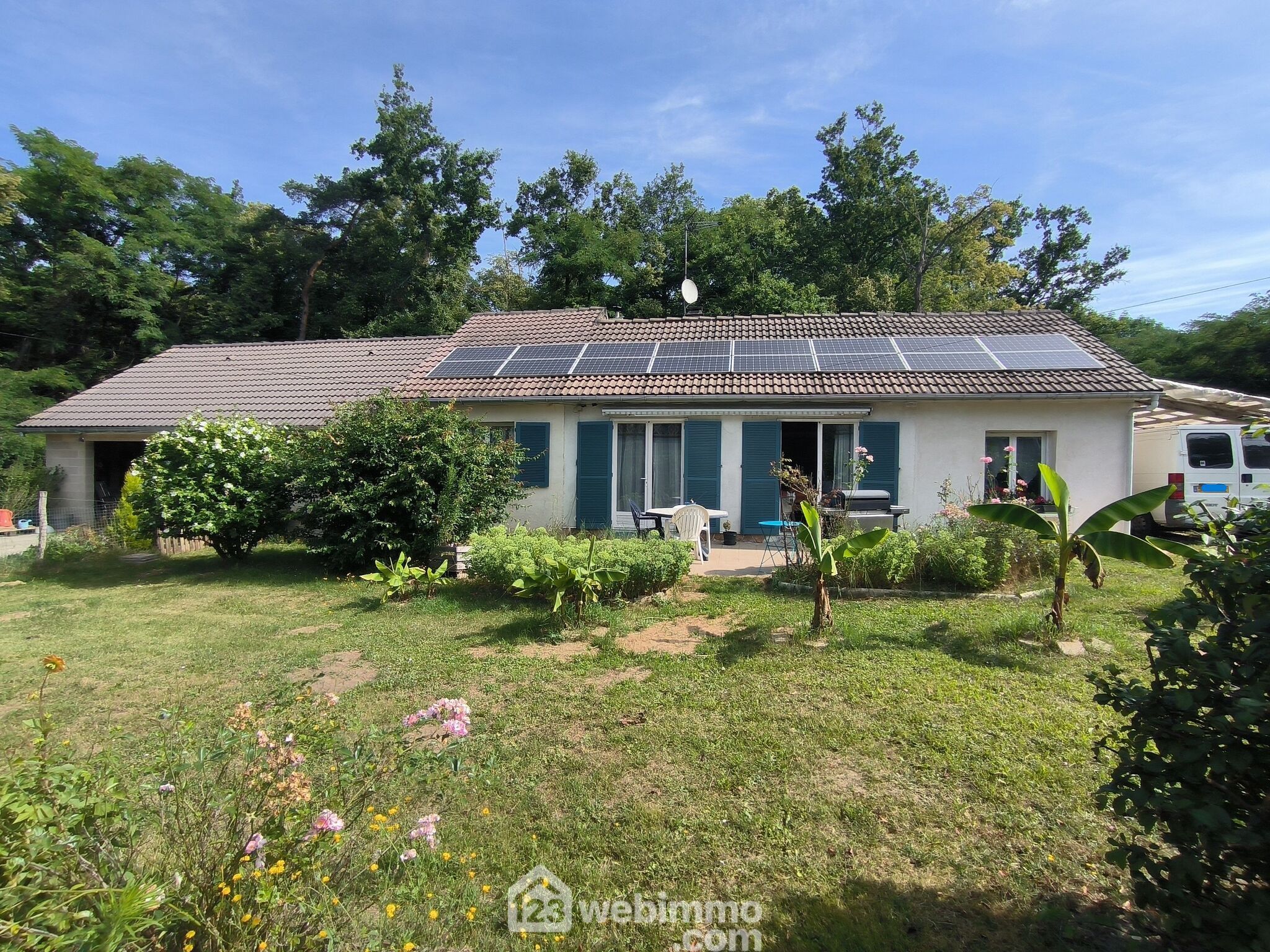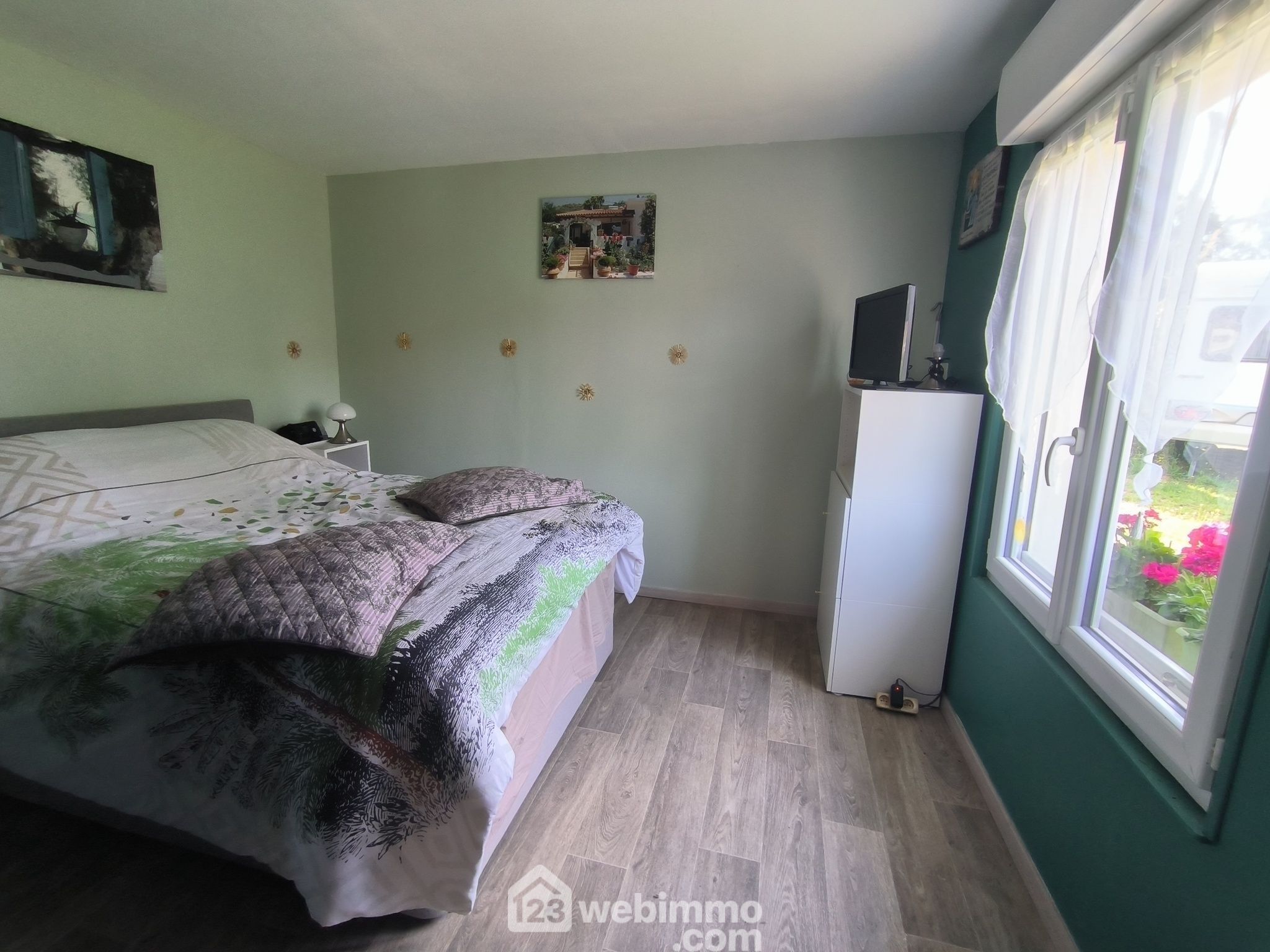Jolie maison de plain pied d'une surface habitable de 80 m² offrant une entrée avec rangement, séjour lumineux, cuisine aménagée, chambre, salle de bains, WC, mezzanine, buanderie. Garage attenant de 60 m² avec porte motorisée.