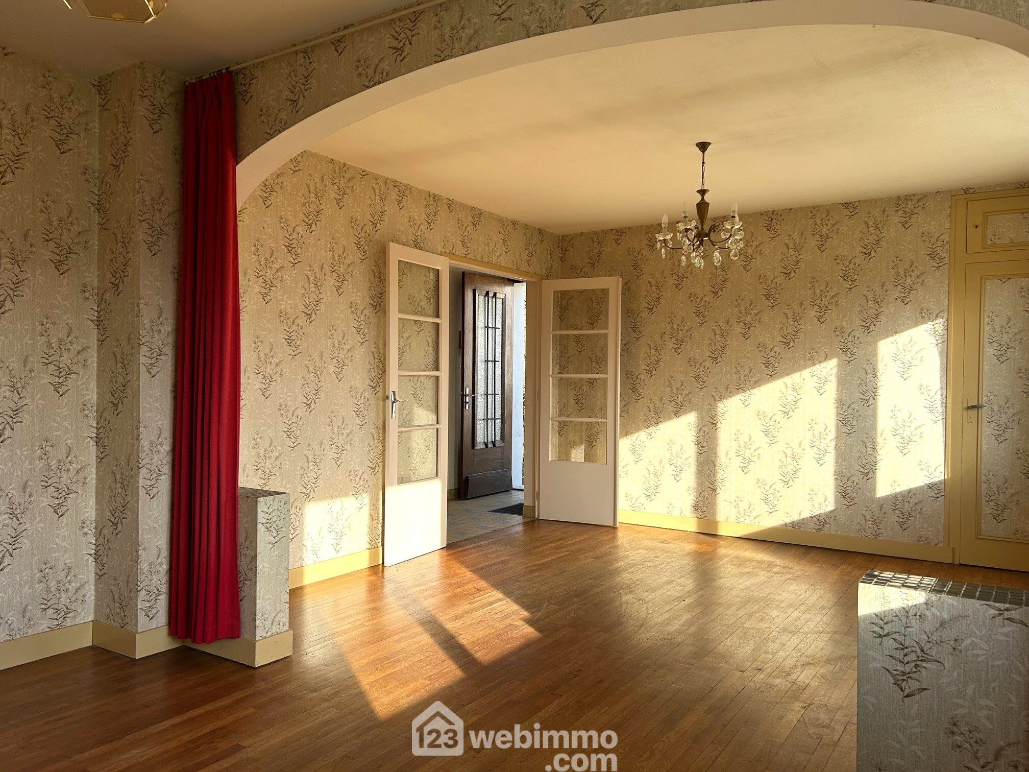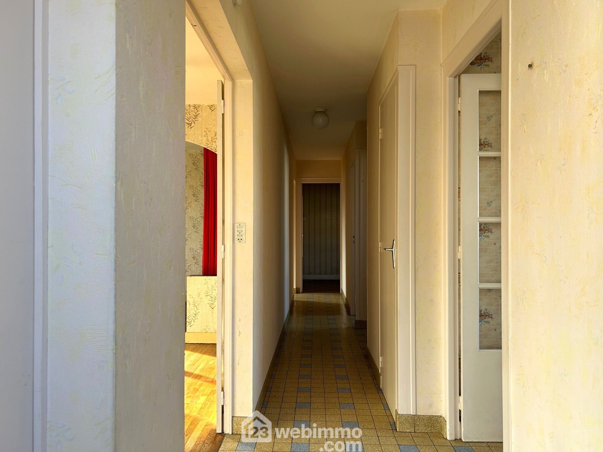Entrée prolongée par un couloir distribuant l'ensemble, dont la cuisine indépendante de 9 m2 non aménagée face au séjour salon, les deux pouvant fusionner en une grande pièce de vie de 40 m2.
