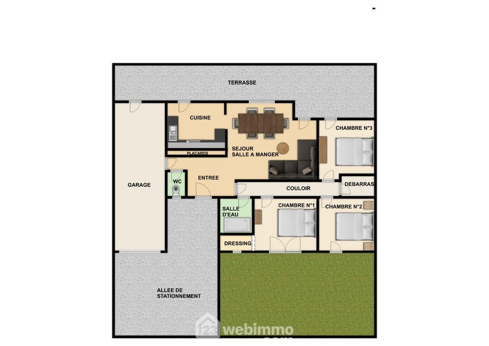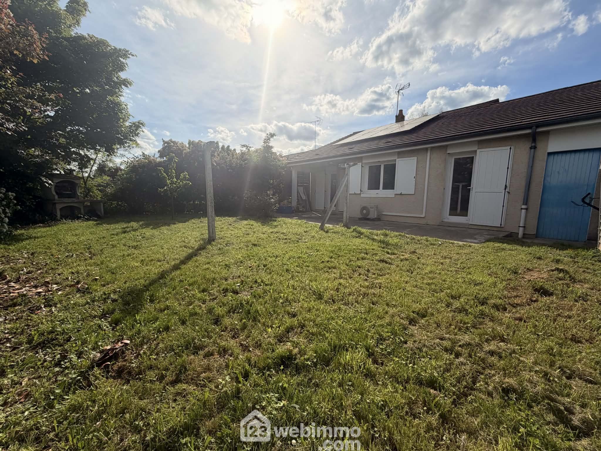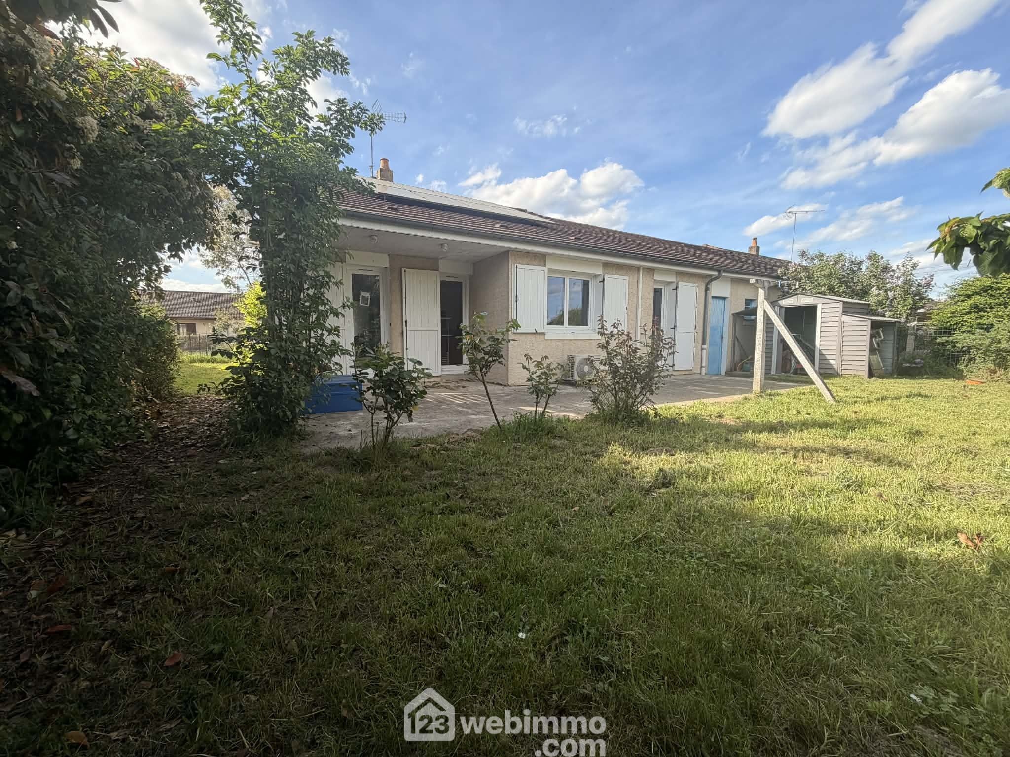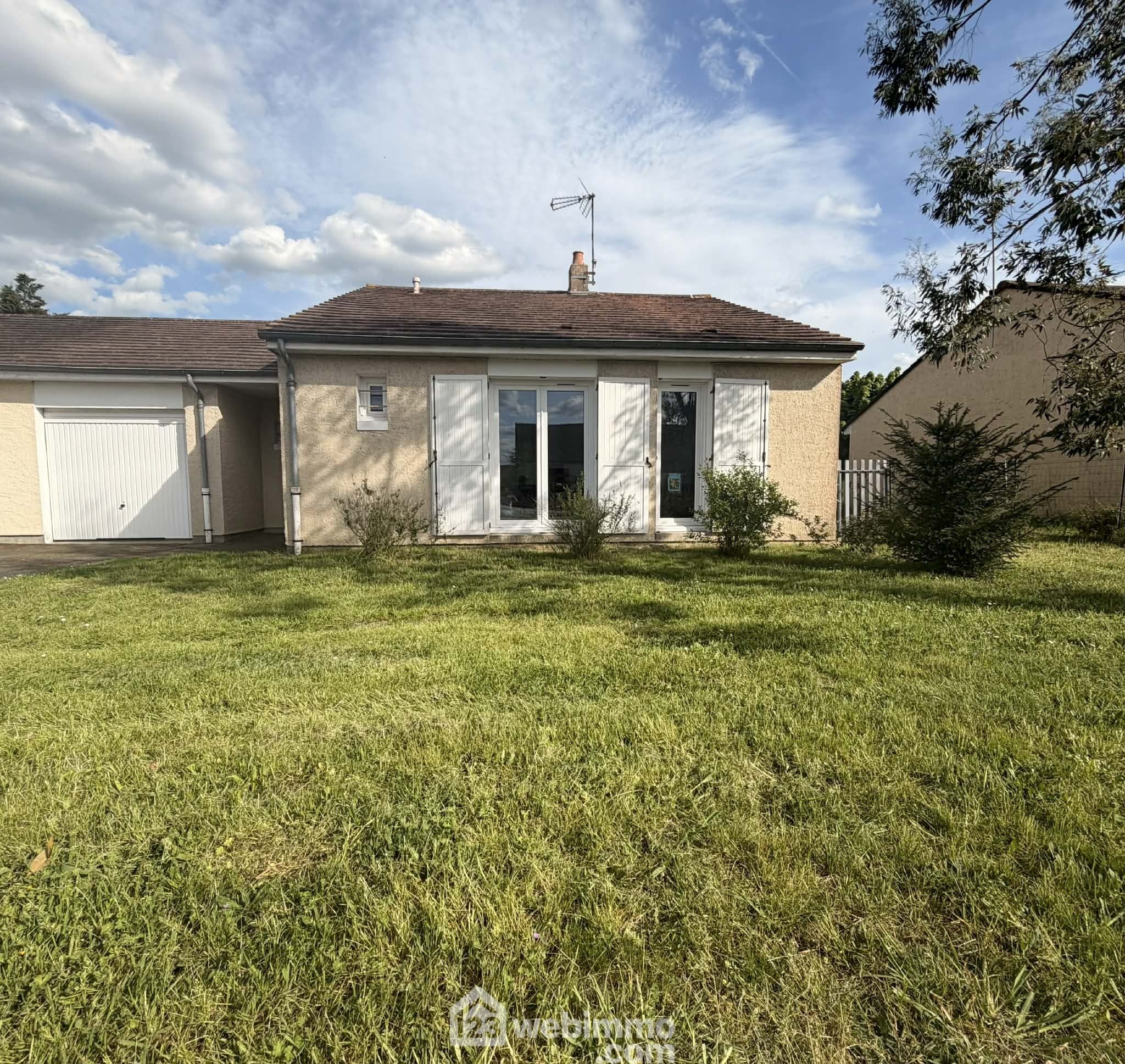 Maison de plain-pied, 82 m2 habitables, 4 pièces, 3 chambres, garage, sur terrain de 510 m2.