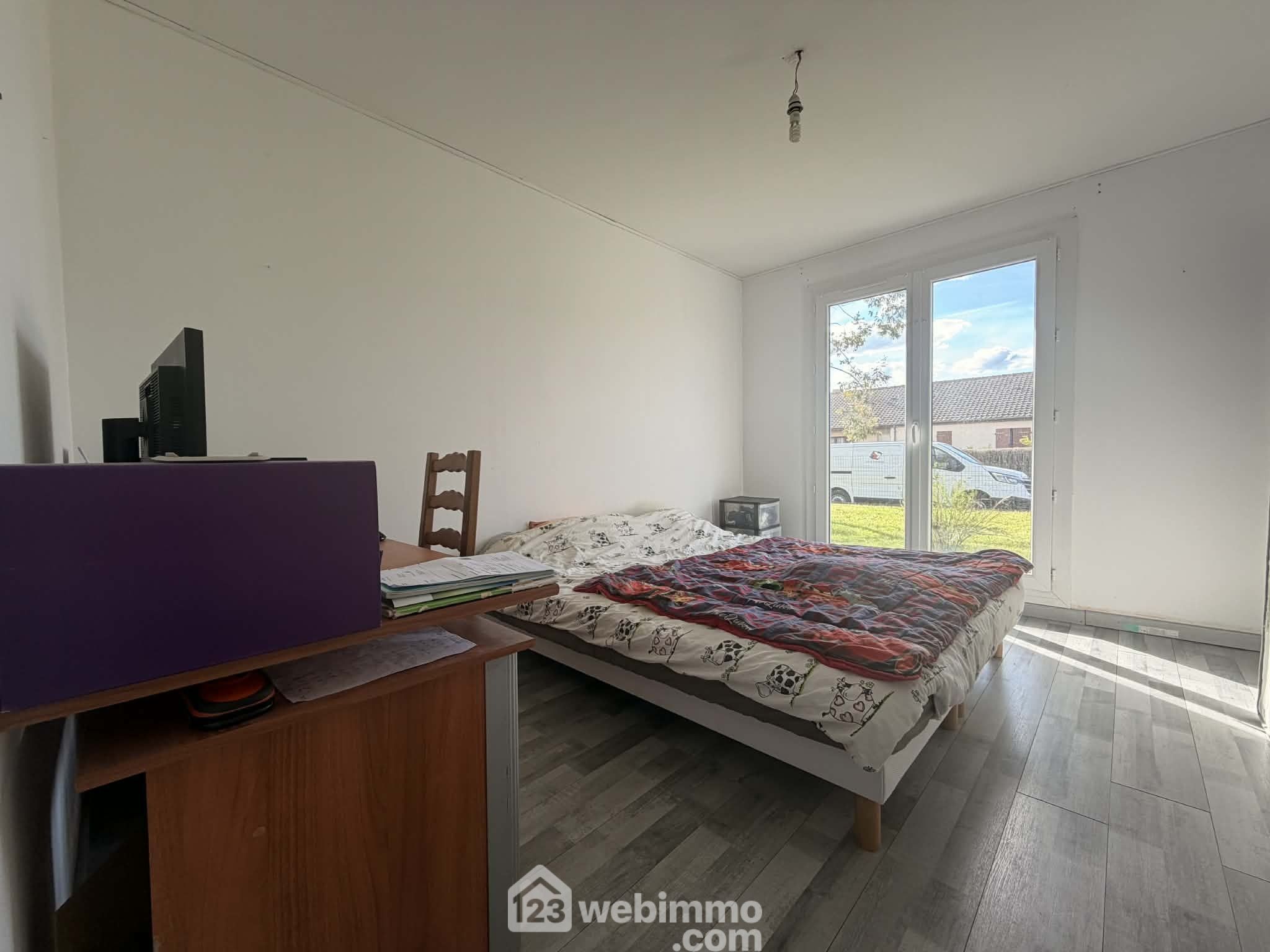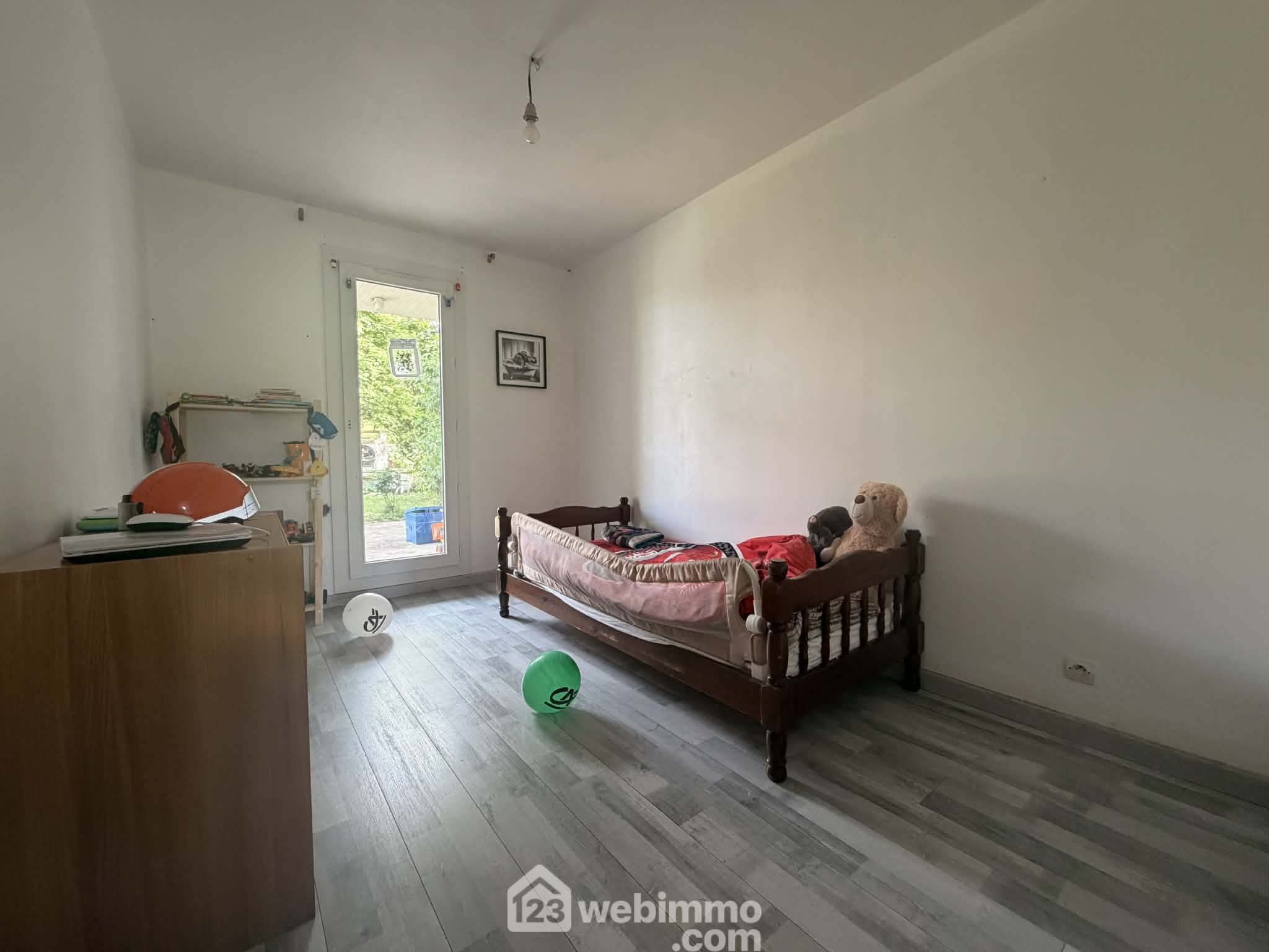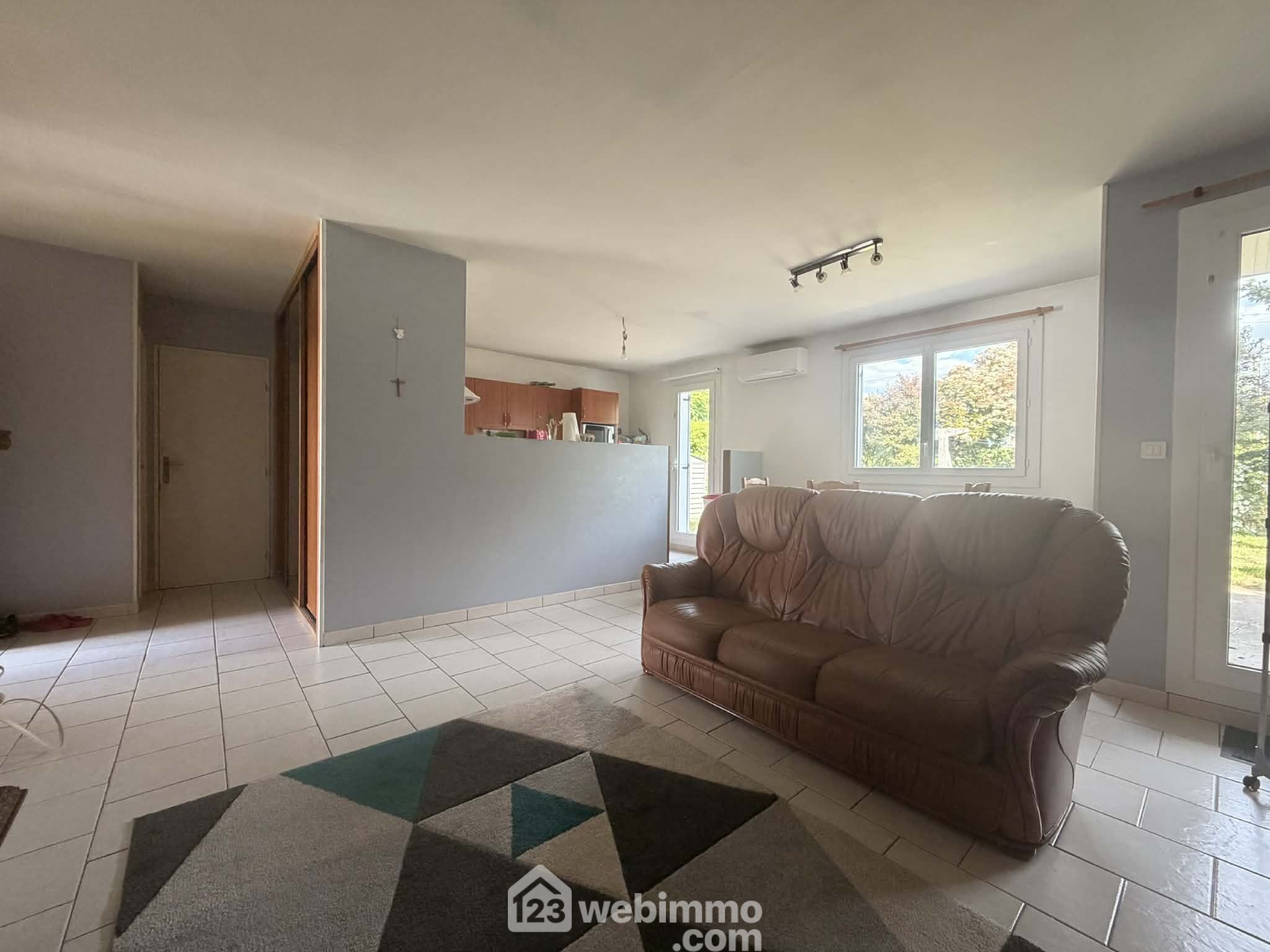 Entrée avec placard et WC, séjour / salle à manger de 30 m2, cuisine aménagée et semi-ouverte sur le séjour, 3 chambres dont 1 avec dressing, salle d'eau rénovée en 2026, débarras.