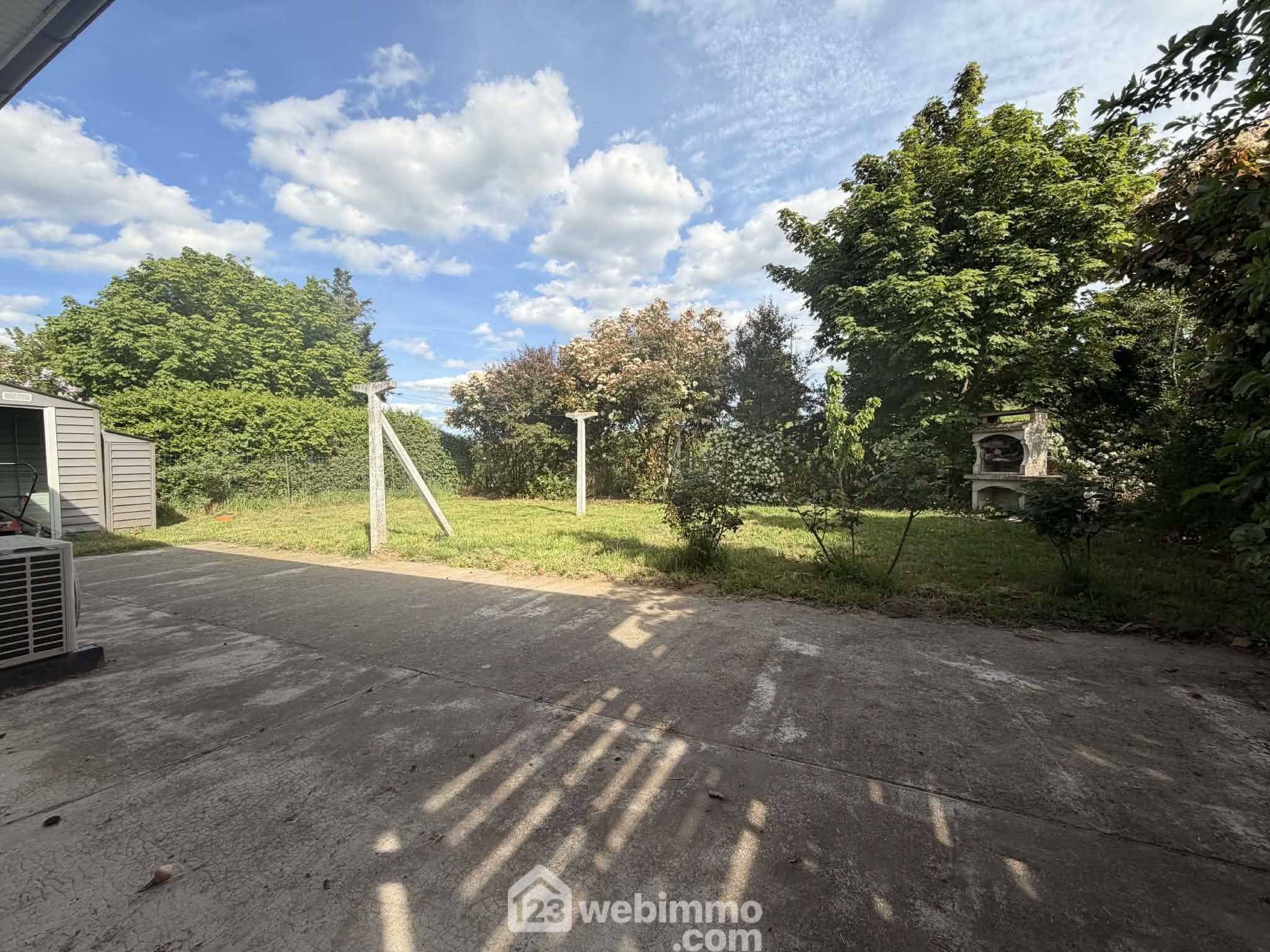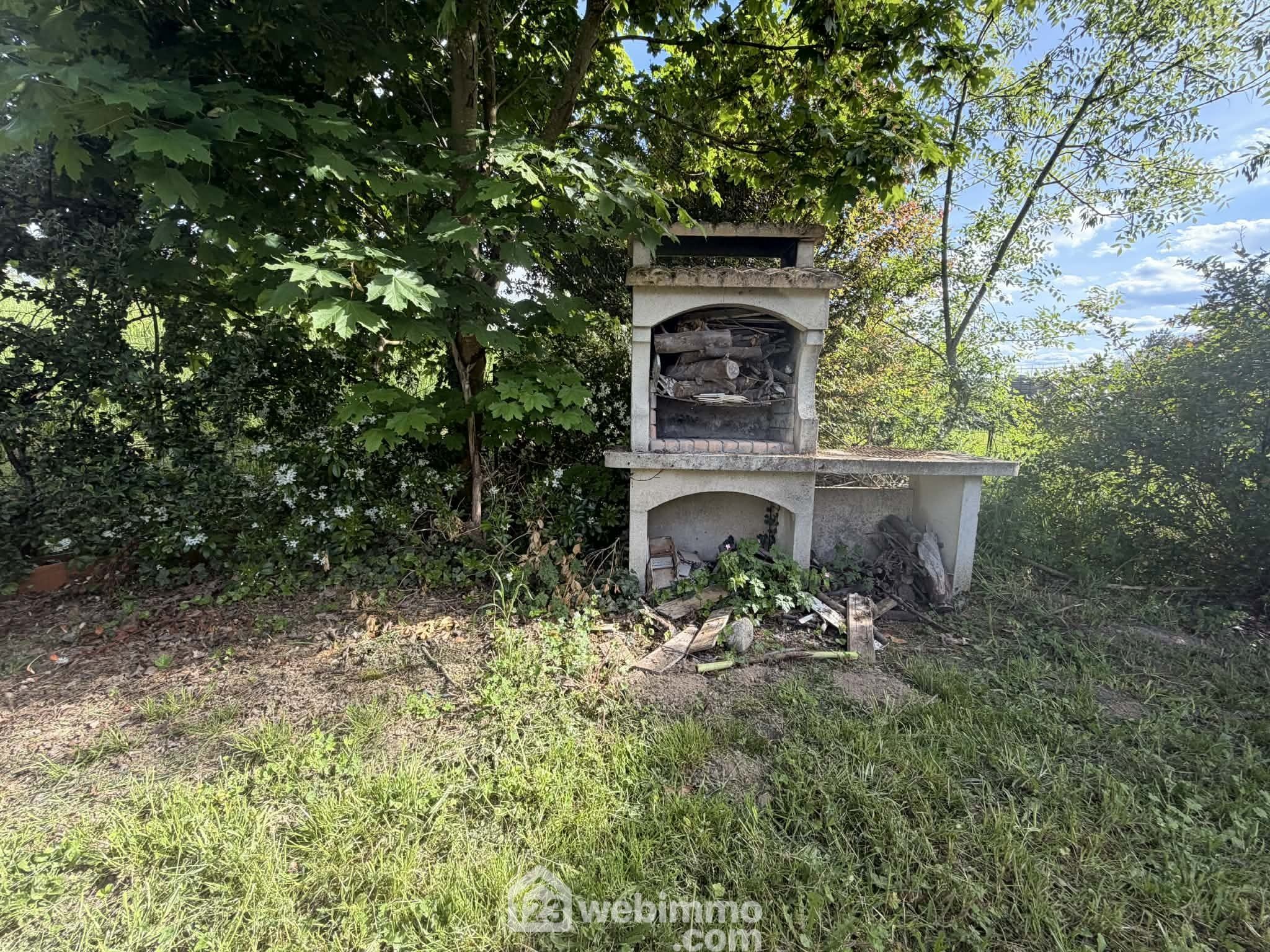 A l'arrière, le jardin est clos, sans vis-à-vis, avec 1 terrasse exposée Sud-Est, barbecue fixe et abri de jardin.