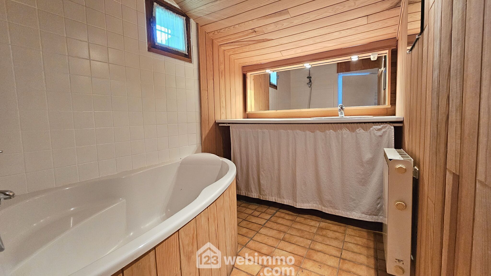 Le rez-de-chaussée de cette propriété vous offre un bel espace de vie comprenant une salle à manger de 16 m², un séjour chaleureux de 14 m² avec cheminée insert, ainsi qu'une cuisine fonctionnelle de 8 m². De plus, une chambre avec mezzanine, une salle de bain et un cellier viennent compléter cet espace convivial. La maison est parfaitement entretenue, offrant confort et charme.
