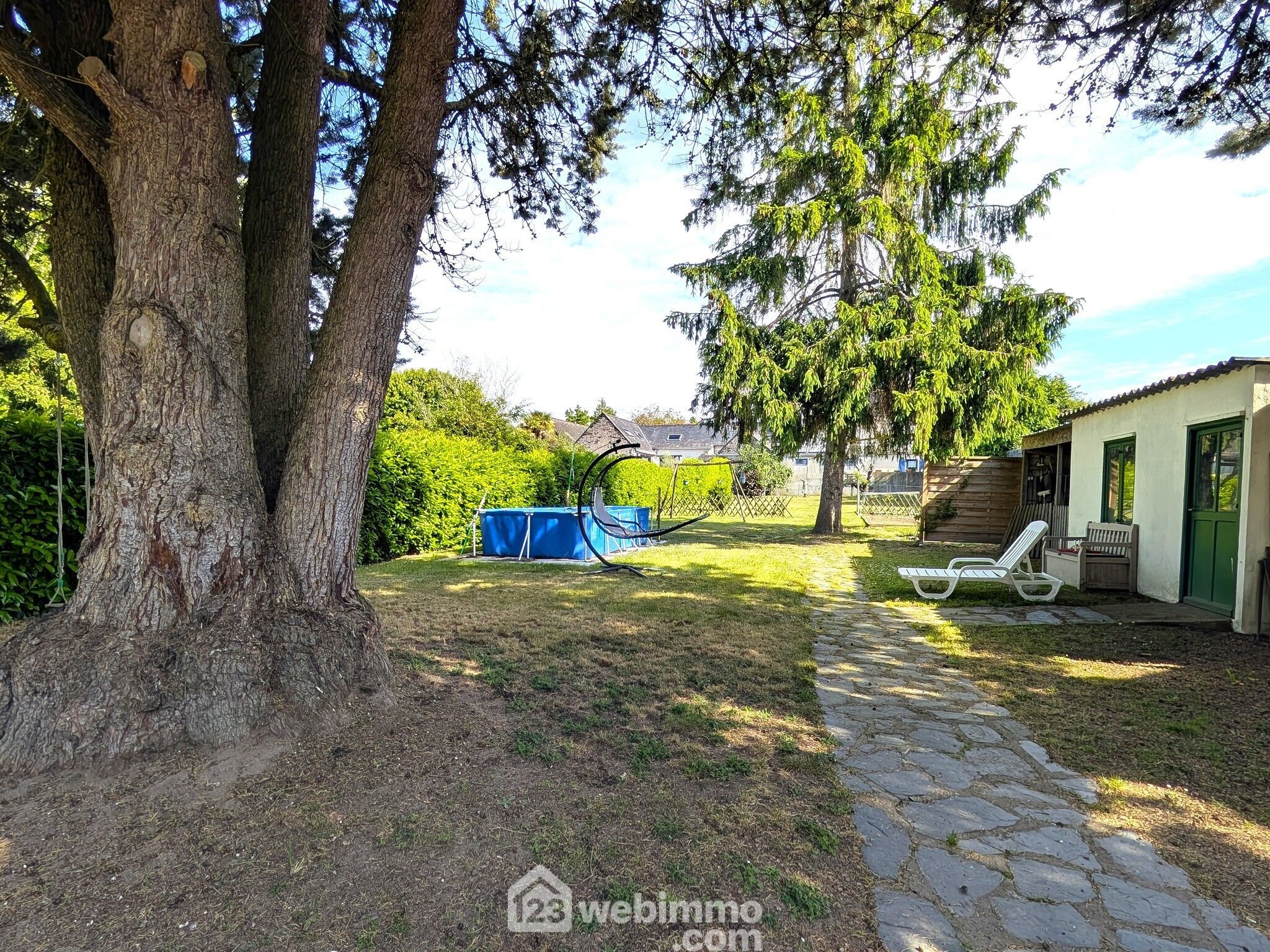 Le terrain, vaste et arboré, s’étend sur 1 920 m² en zone constructible. Un coin de verdure paisible, sans vis-à-vis, tout en étant à deux pas des commerces, écoles et services du centre-bourg.