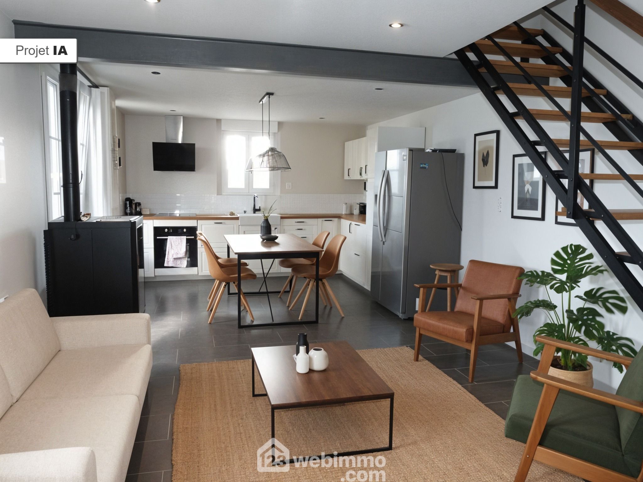 Elle comprend au rez-de-chaussée : entrée, pièce à vivre de 30 m² dont espace cuisine avec poêle à granulés; wc séparé; chambre.