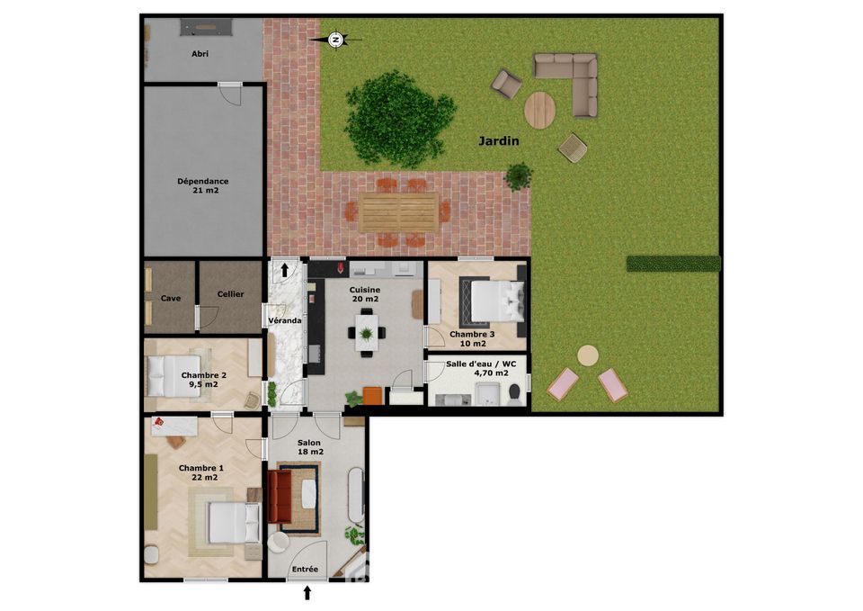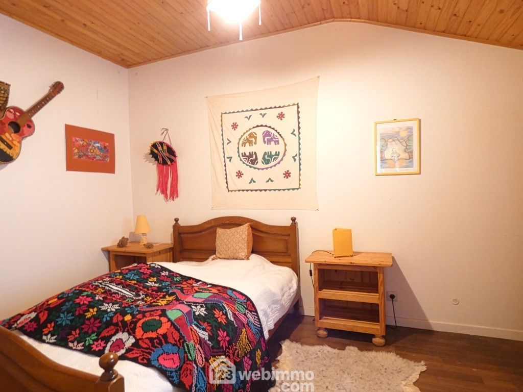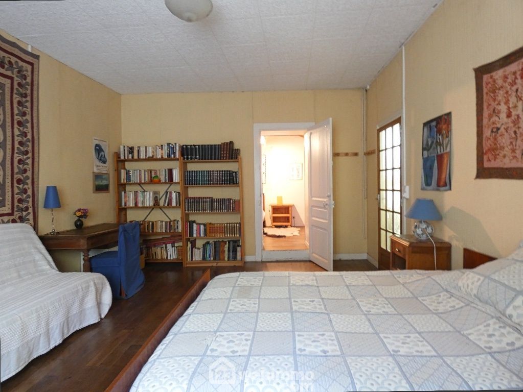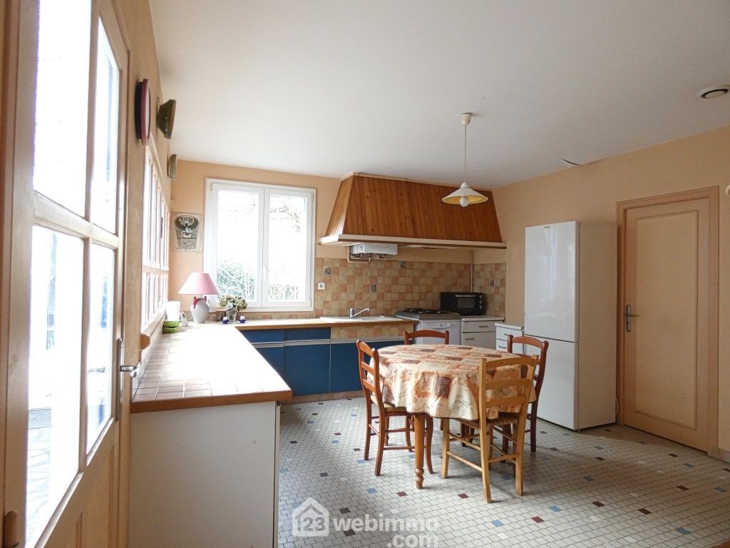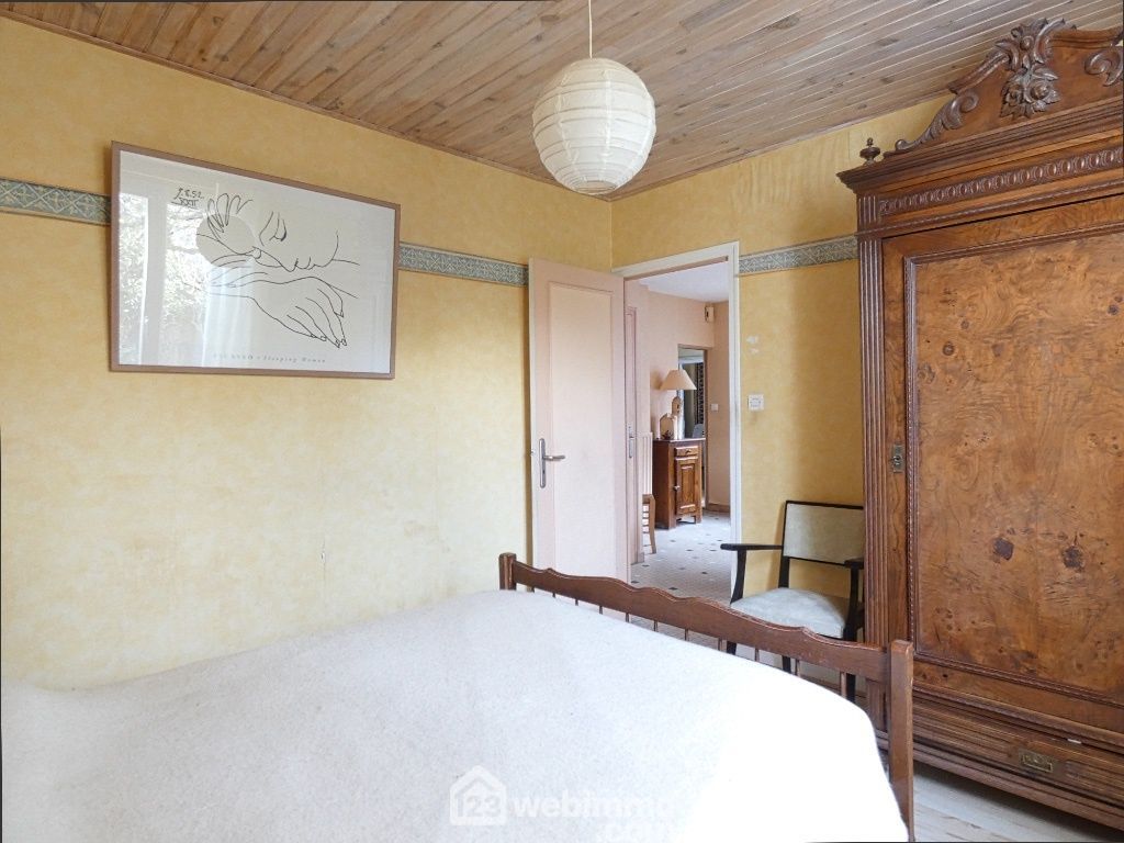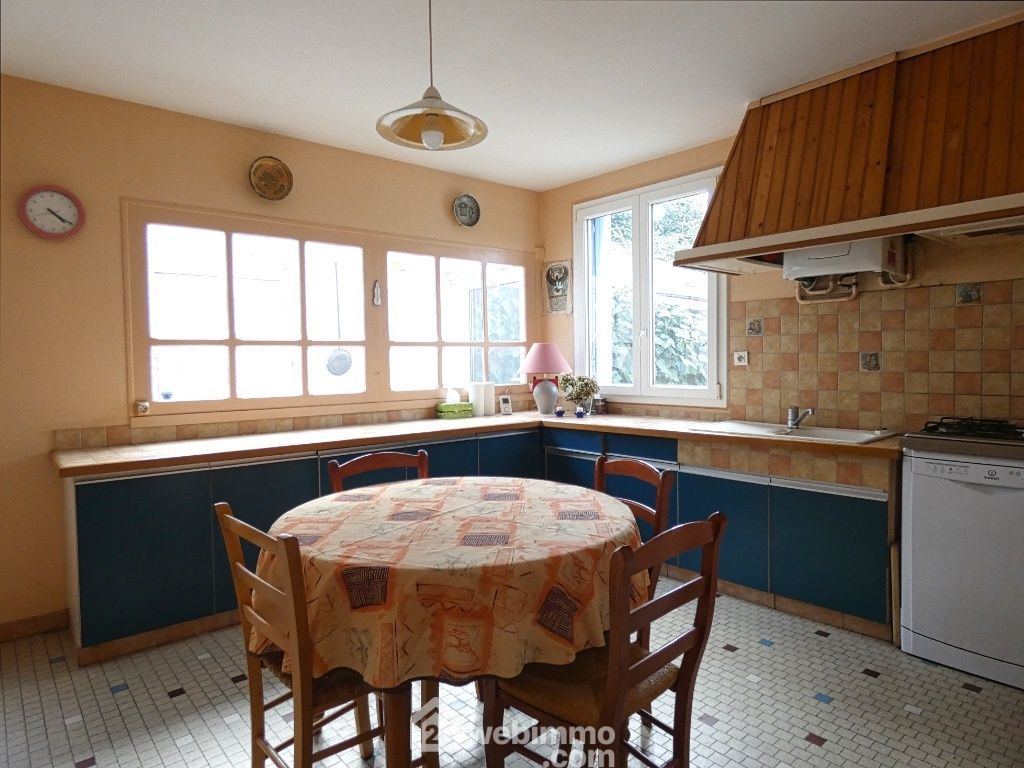 Entrée dans le salon (18 m2), cuisine aménagée (20 m2) avec vue sur le jardin, 3 chambres de 9,5 m2 à 22 m2, salle d'eau avec WC, véranda, cellier avec cave, dépendance attenante d'environ 28 m2 pouvant être aménagée en pièce d'été ou bien en extension d'habitation. Jardin clos.