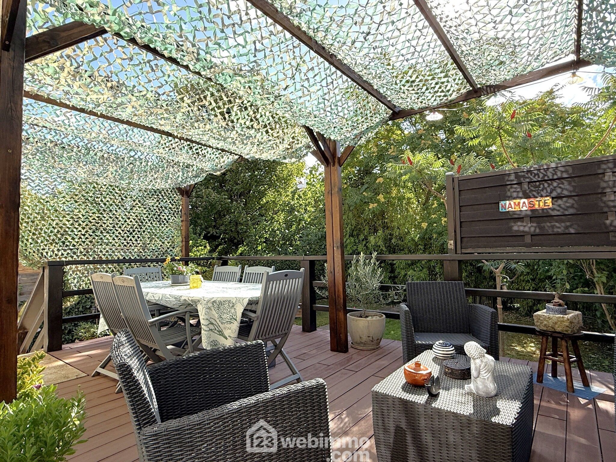 Garage attenant (16 m2), terrasse composite (18 m2), buanderie, atelier.
