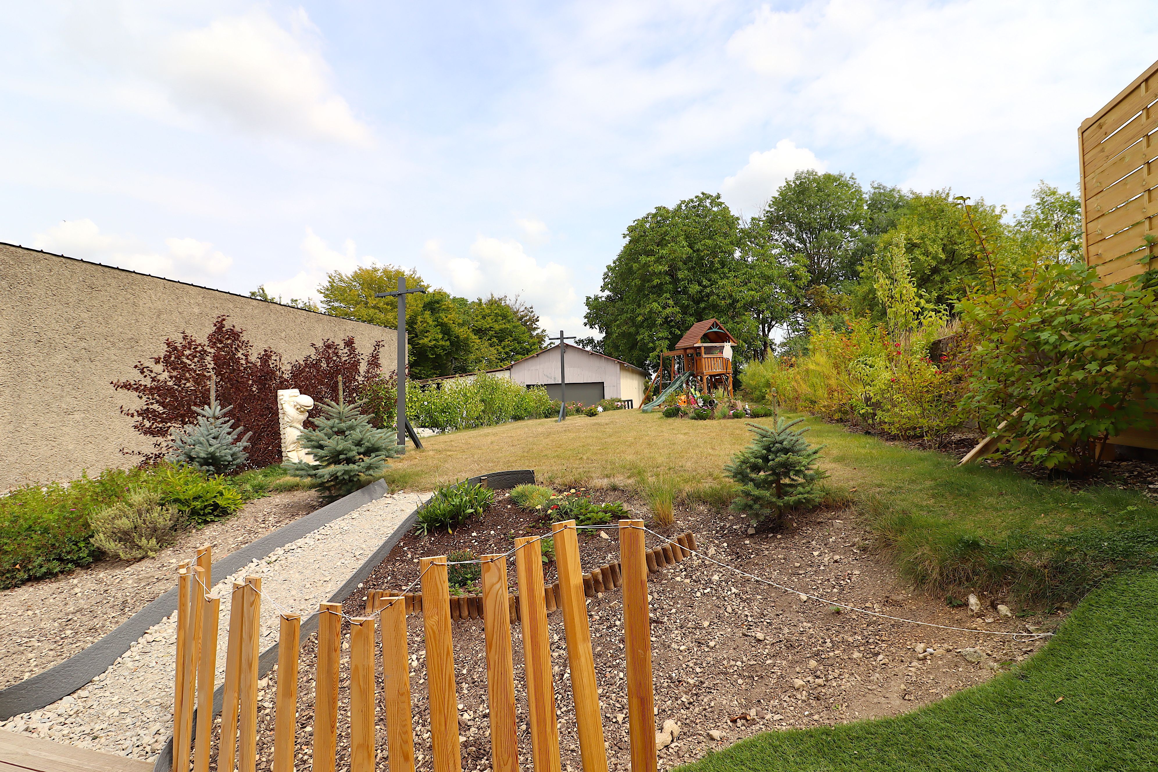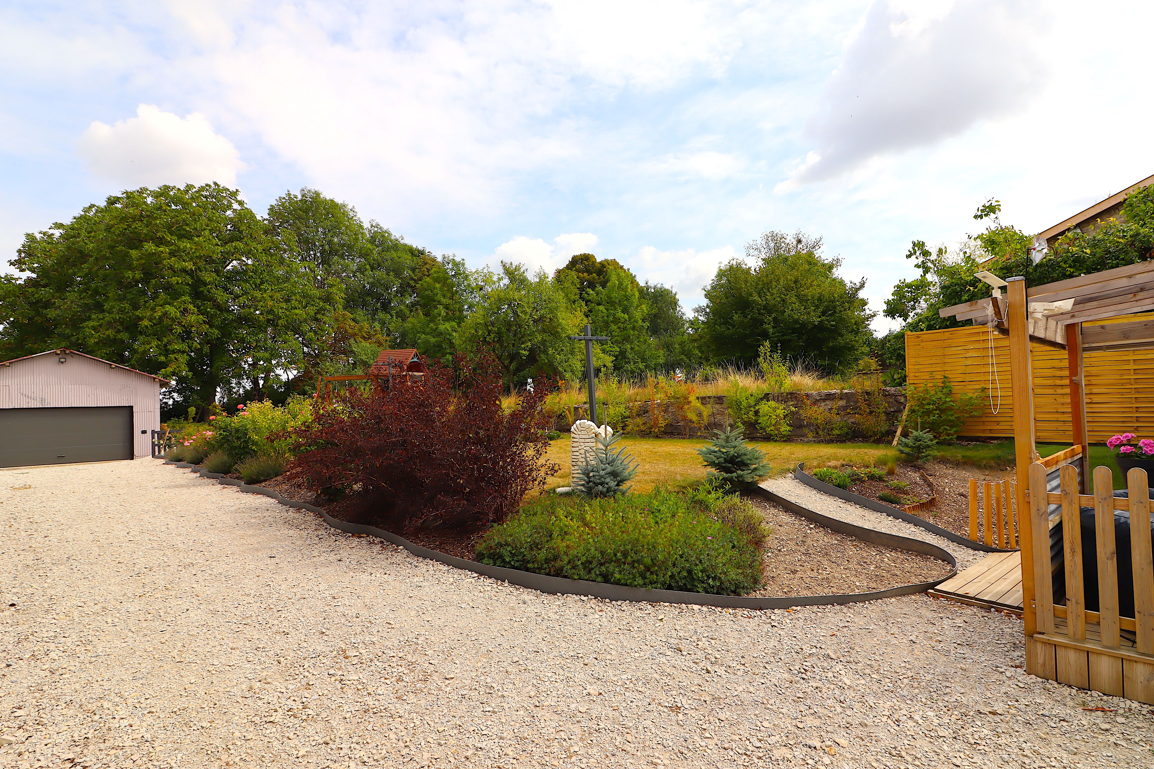 - Jardin paysagé et arboré sans vis à vis, allée carrossable - 1200 m²