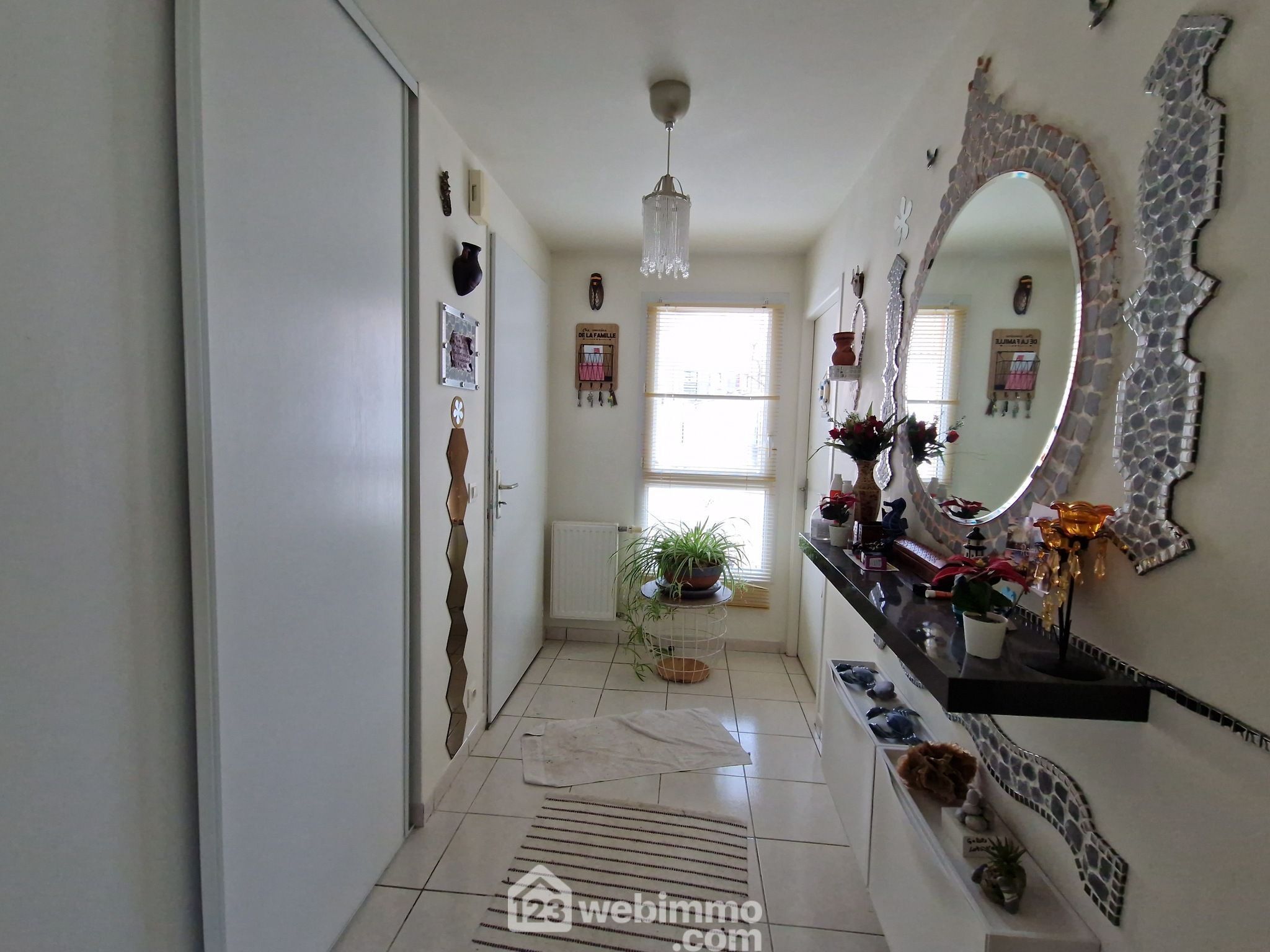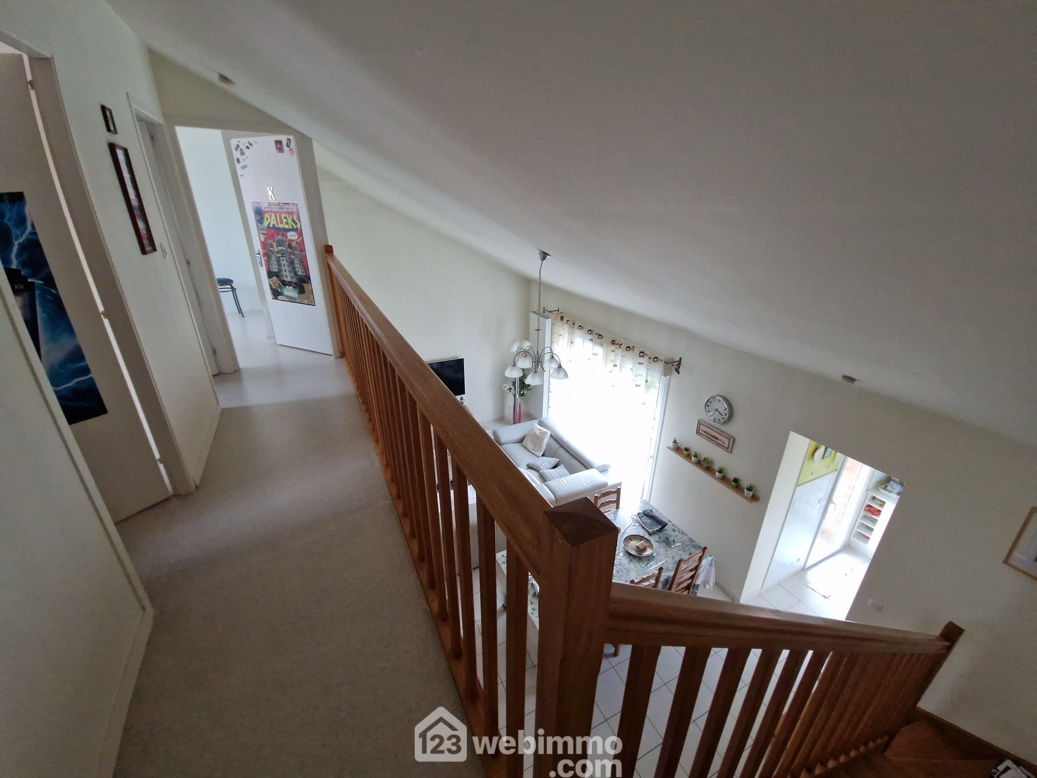 Belle entrée avec placard, pièce de vie avec hauteur sous plafond et baie sur terrasse. Cuisine donnant accès à un grand cellier de 21 m² (ex-garage) avec porte de service côté jardin.