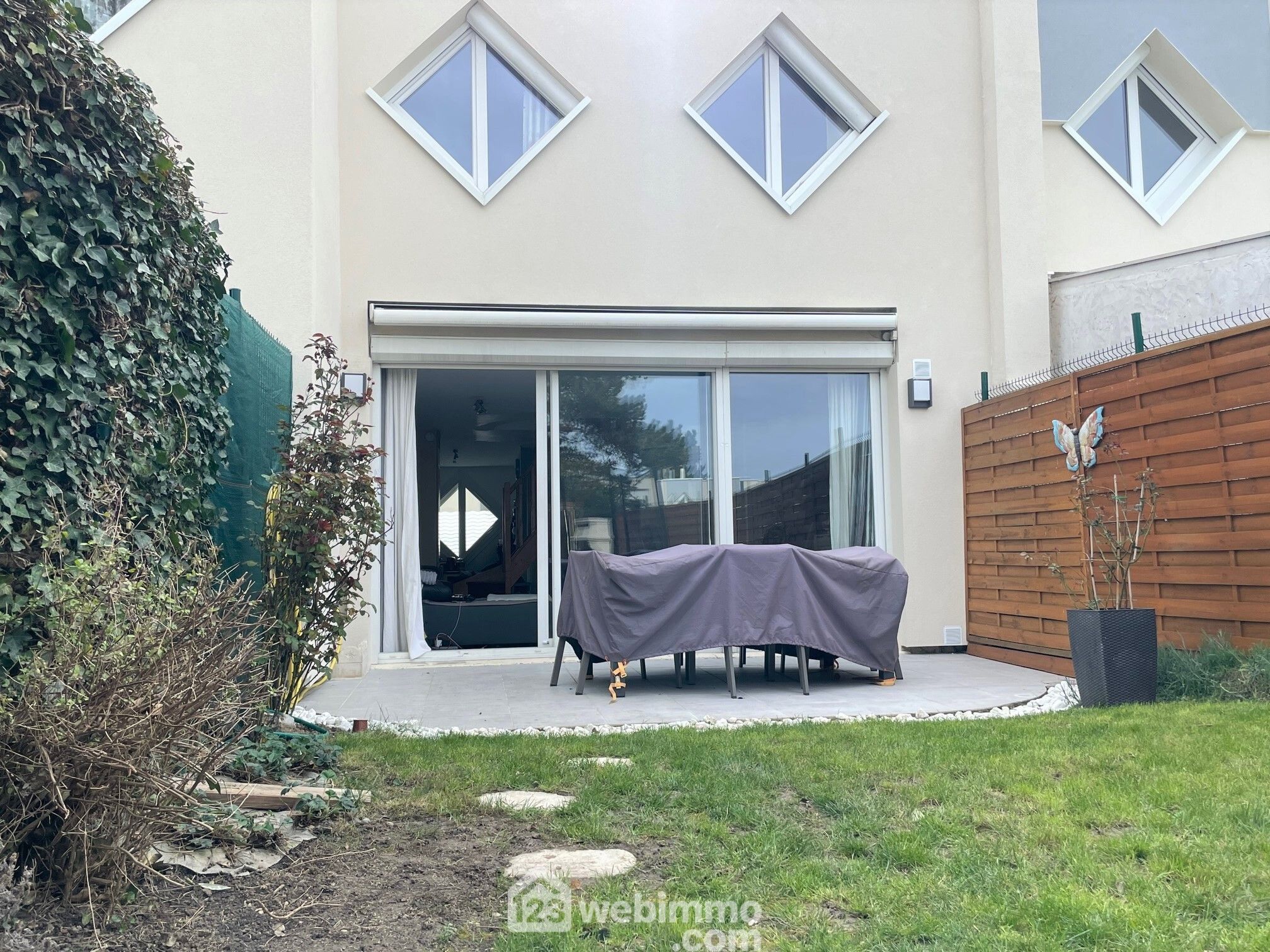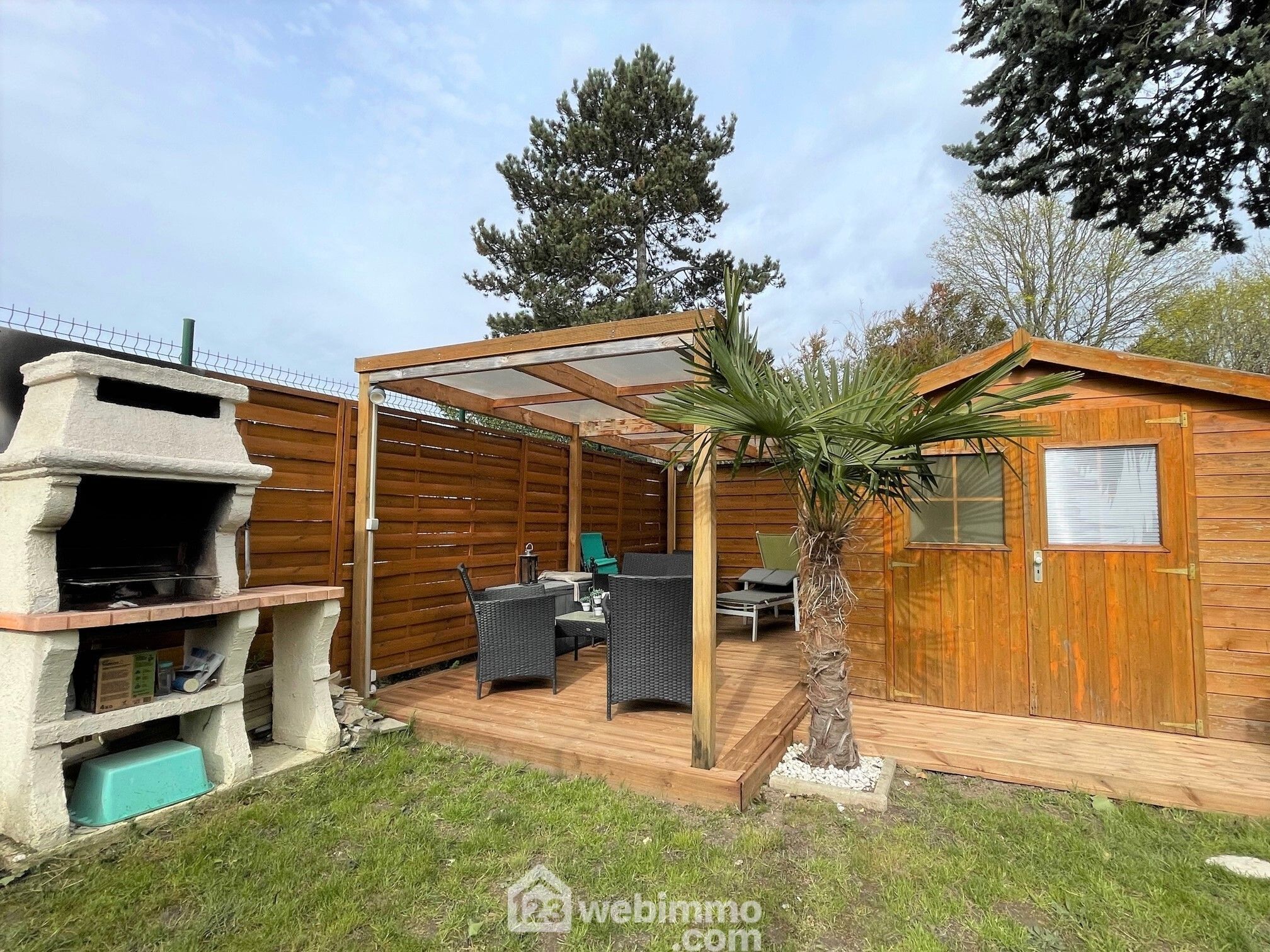 Jardin clos disposant d'une terrasse avec store banne électrique, d'un espace détente sous pergola, d'un cabanon et d'un barbecue pour profiter des beaux jours.