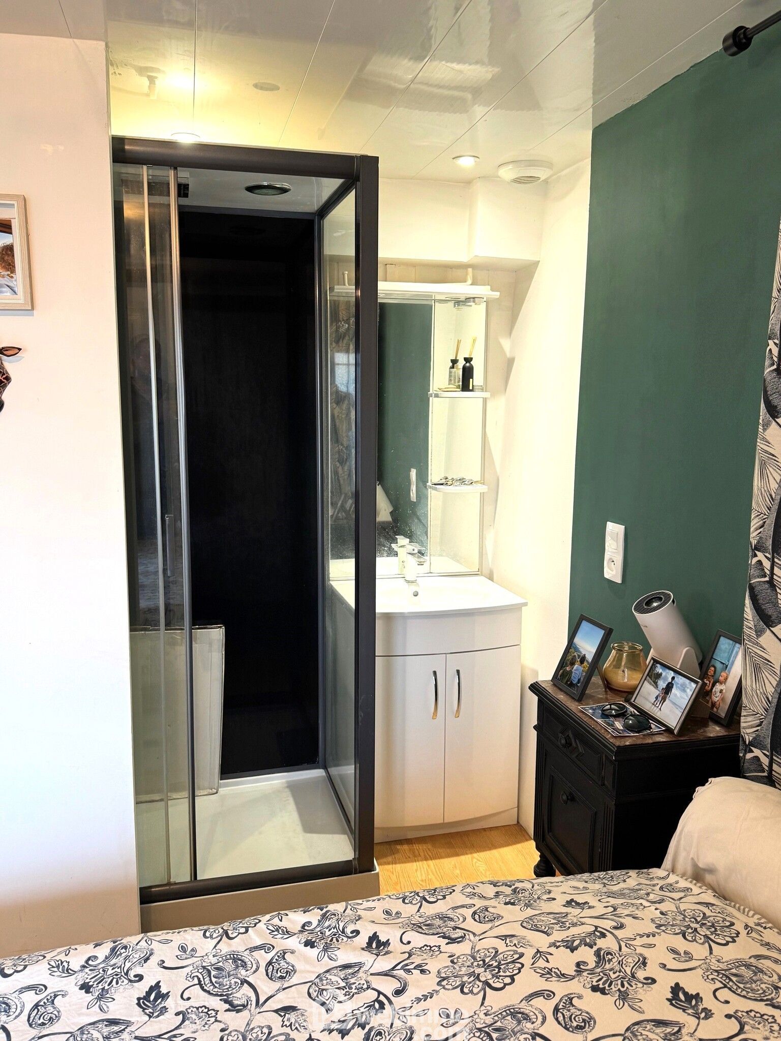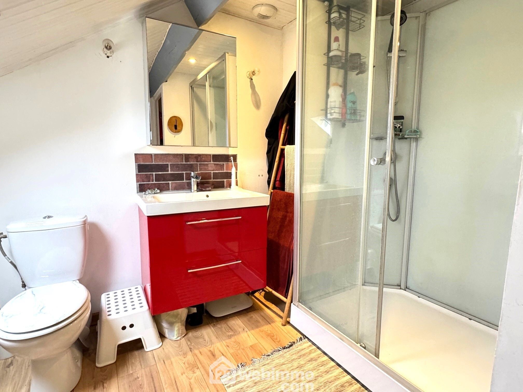 Au rez-de-chaussée, vous trouverez un séjour chaleureux, une cuisine aménagée et équipée, ainsi qu'une chambre avec douche et WC.