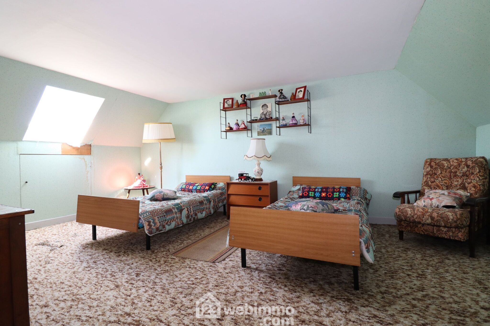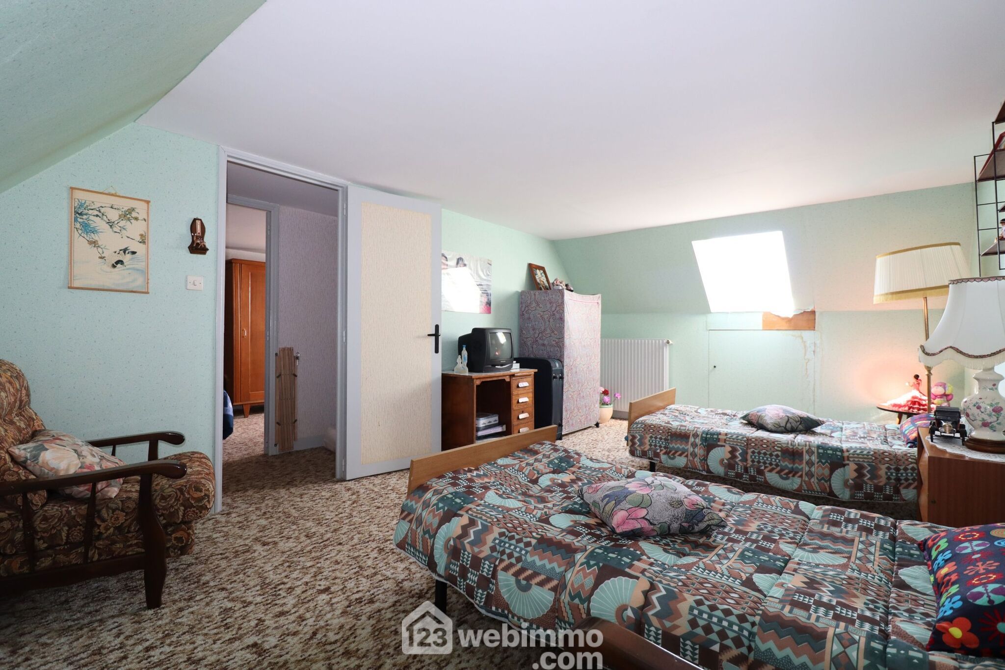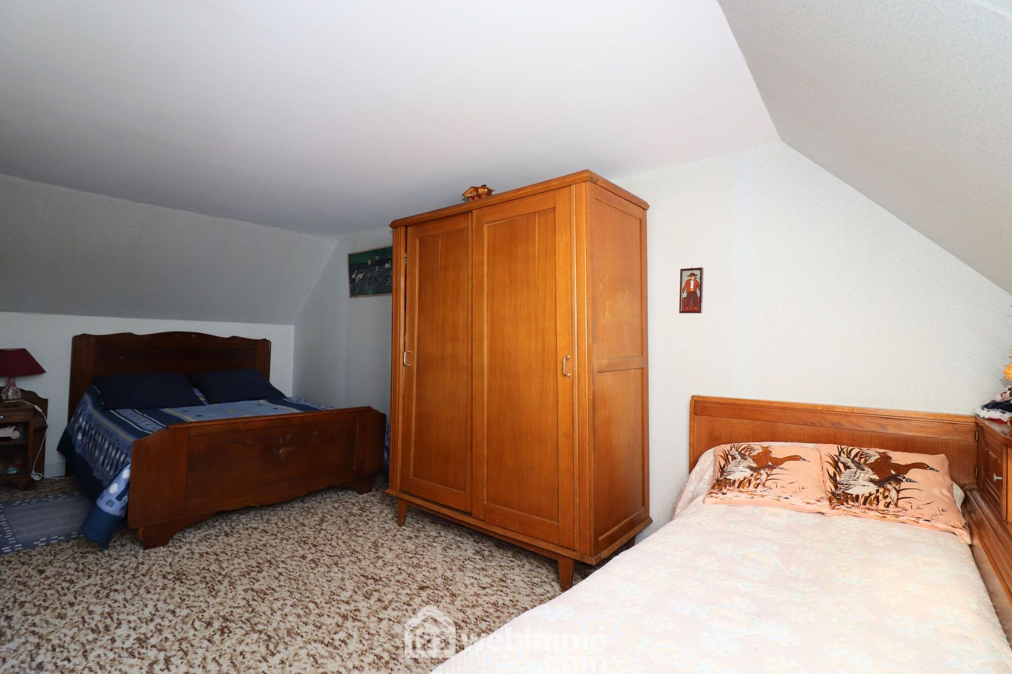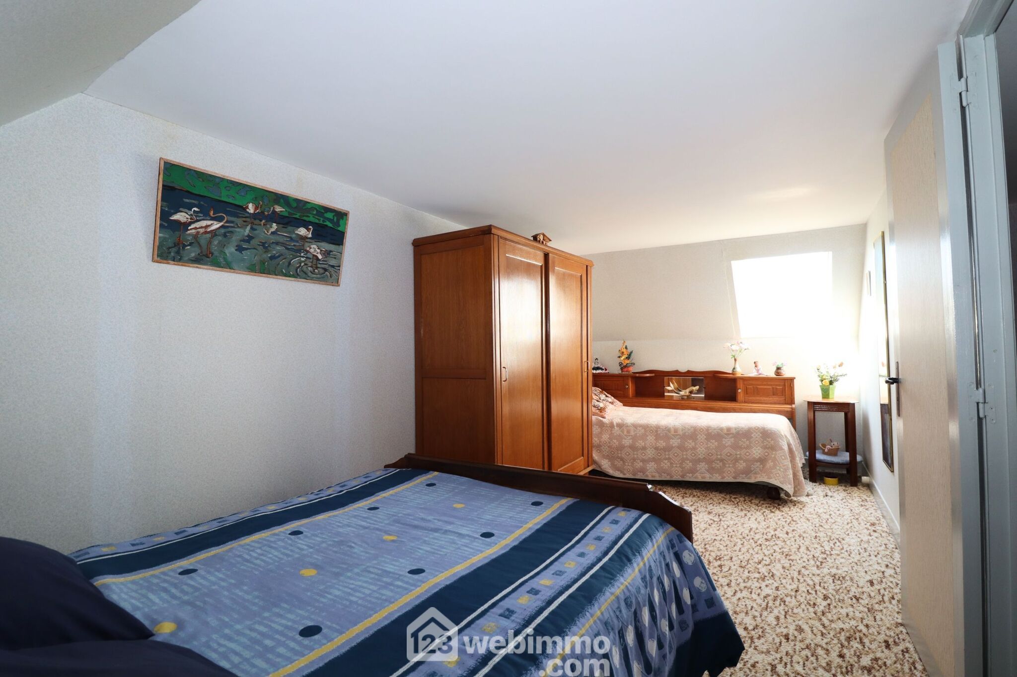 A l'étage, accessible par un escatrappe, le palier dessert 2 belles chambres de 14,5 et 11m2 habitables.