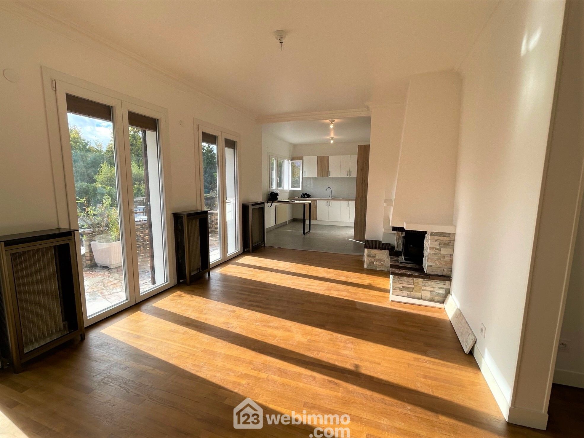 salon-séjour lumineux avec possibilité de faire une troisième chambre, cuisine ouverte aménagée totalement refaite, deux chambres, une salle d'eau moderne avec fenêtre, wc indépendant.