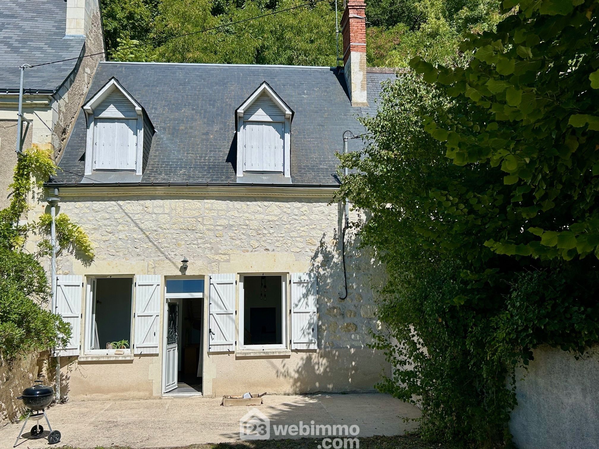 Située en lisière de forêt, au bord du côteau, à 700 m du fleuve et à 300 m de la Gare SNCF bien desservie par le TER Tours-Saumur-Angers, à proximité de tout. Cette maison authentique, et typique de l'architecture locale, bénéficie d'une exposition parfaite Sud-Est en façade, d'une protection totale coté Nord et Ouest, d'un calme réel et de la proximité immédiate de la nature, avec une vue dégagée et imprenable sur la vallée.