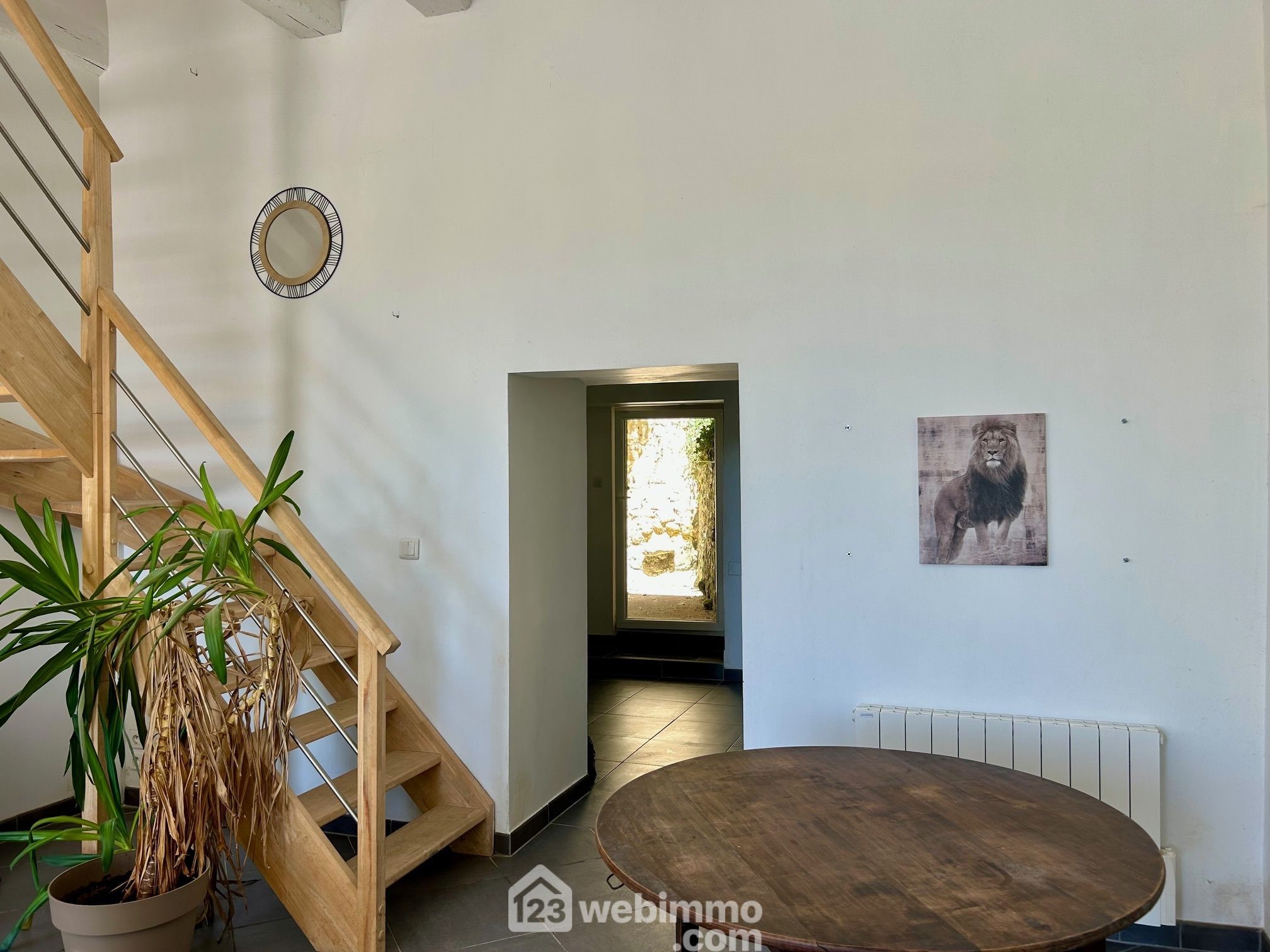 Entrée par le séjour/salon lumineux de 33 m2 avec une grande cheminée authentique en pierres de taille et à foyer fermé pour l'efficacité. Poutres d'époque. Au-delà, la cuisine de 12 m2 aménagée et équipée ouvre sur une courette intime et protégée qui dessert la cave de 15 m2 creusée dans le roc. Buanderie avec WC. Grande salle de bain avec baignoire d'angle, double vasque sur meuble et sèche serviettes.
