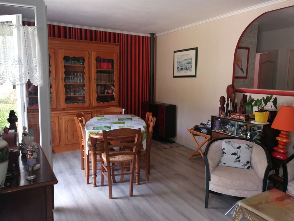 Maison composée d'une entrée/véranda, un salon/séjour lumineux avec poêle à granules, une cuisine aménagée et équipée, dégagement, Wc, de nombreux placards, une salle de douches récemment rénovée et 3 chambres. L'ensemble sur un joli terrain arboré avec goût, un garage attenant, un chalet et local de rangement jardinage.
