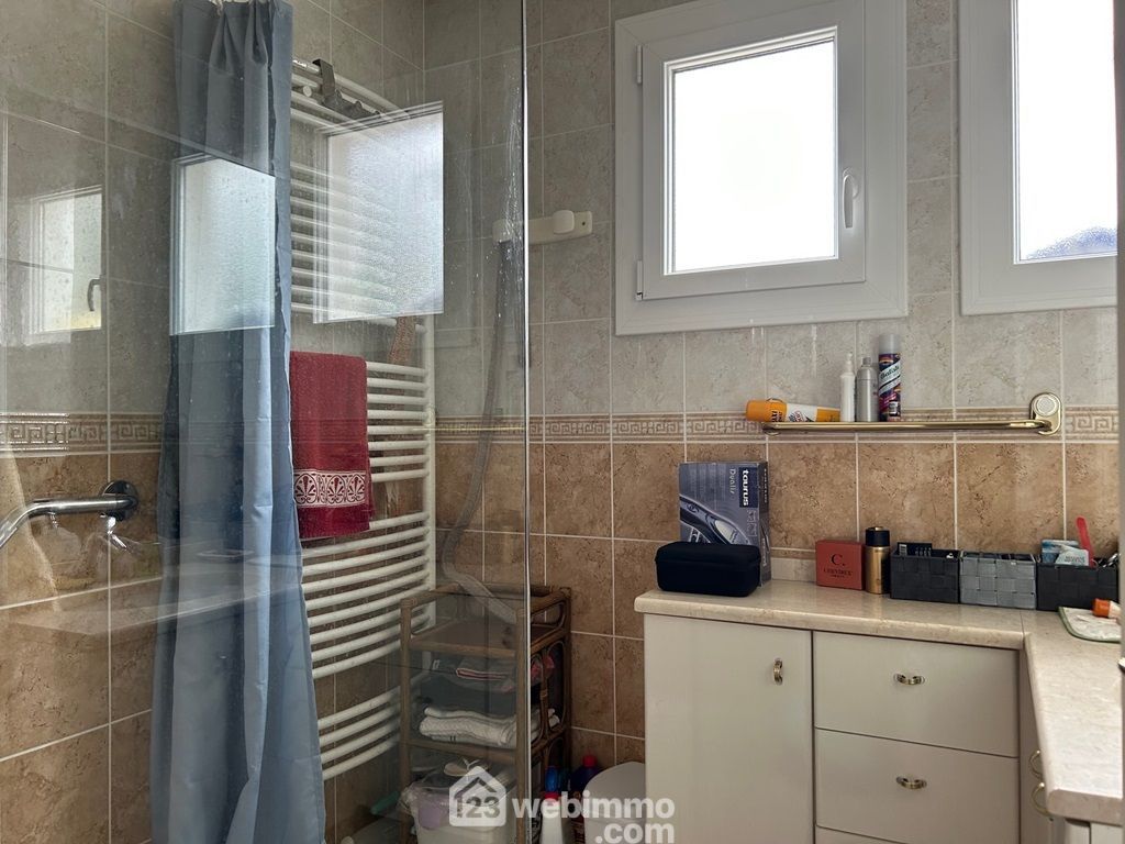 La salle d'eau avec grande douche à l'Italienne est optimisée. A côté, un WC indépendant avec fenêtre et une petite buanderie.