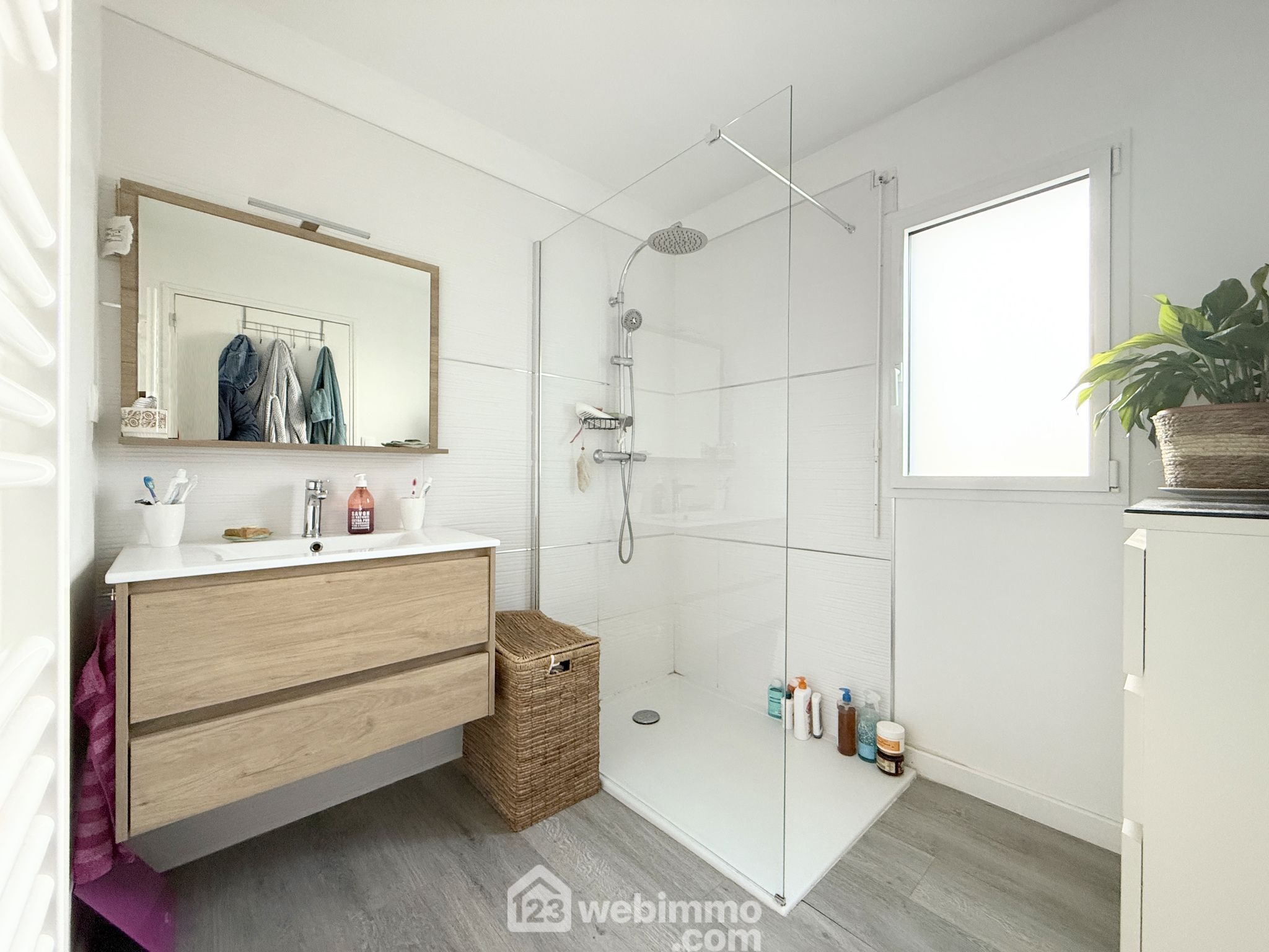 Dès l’entrée, vous profitez d’un espace avec dressing menant à une agréable suite parentale, lumineuse et moderne, avec salle d’eau privative. La pièce de vie de 36 m², chaleureuse et facile à aménager, s’ouvre sur une grande terrasse bois exposée plein sud : un lieu idéal pour lire, recevoir ou simplement profiter des beaux jours.