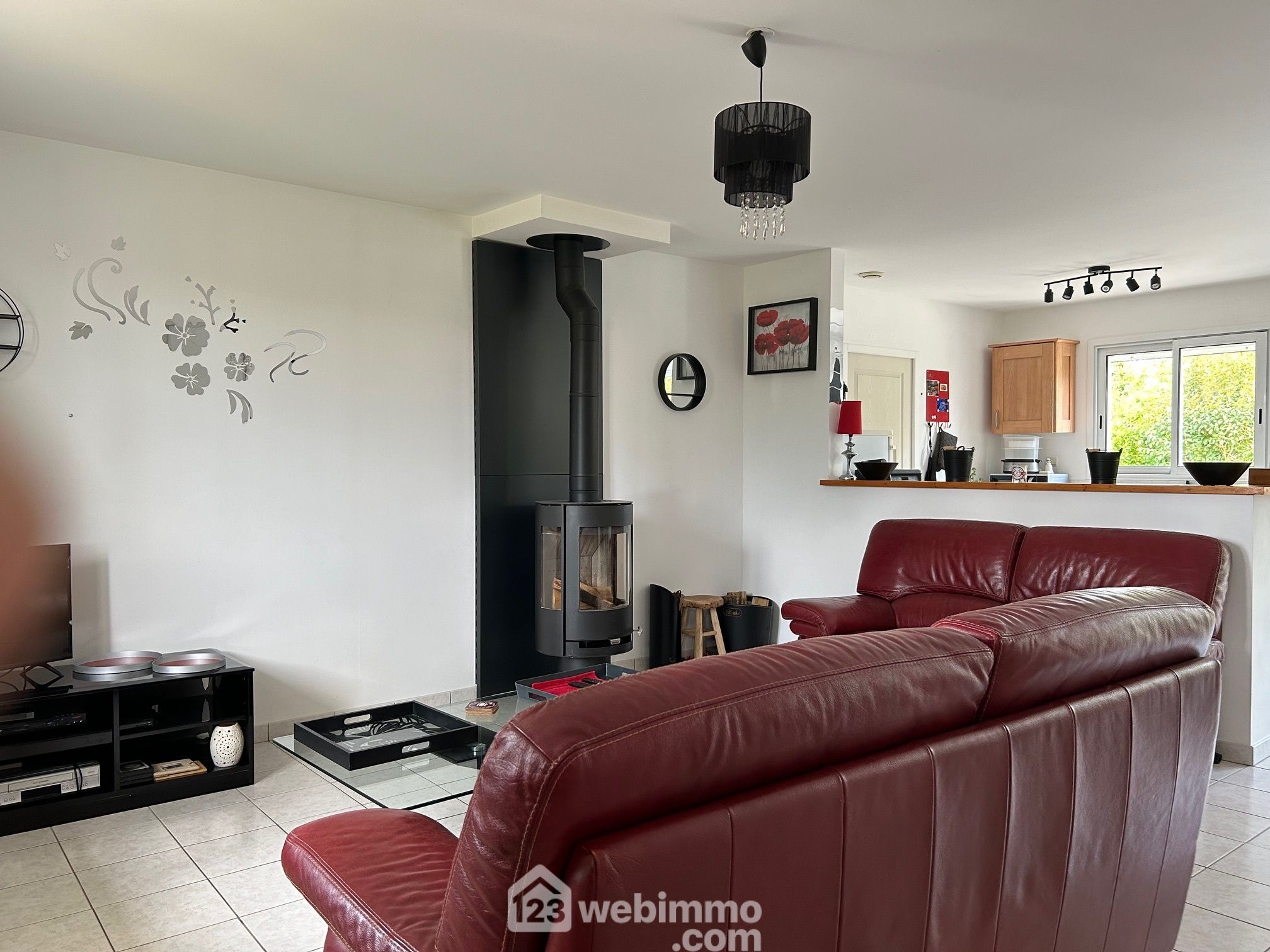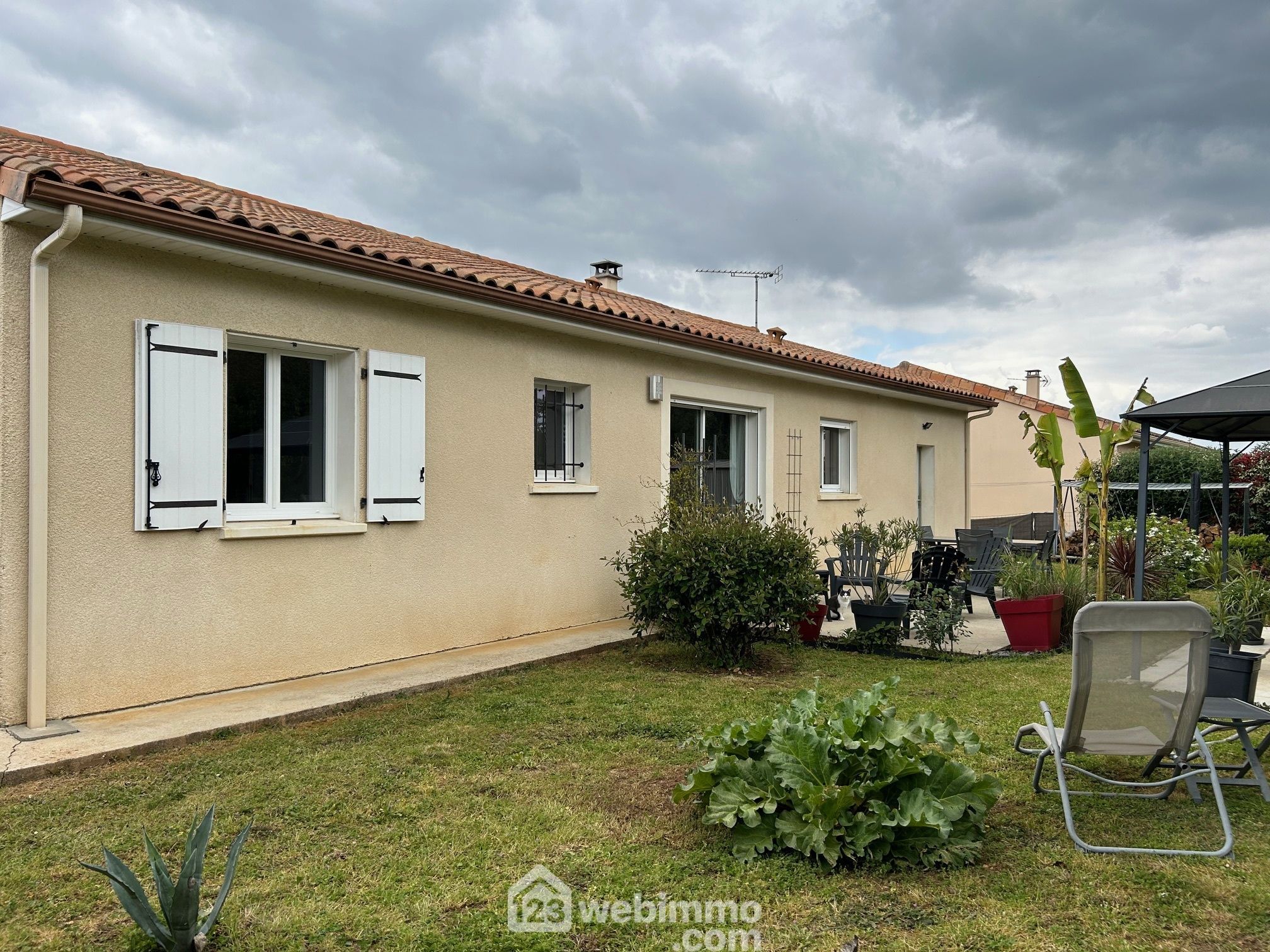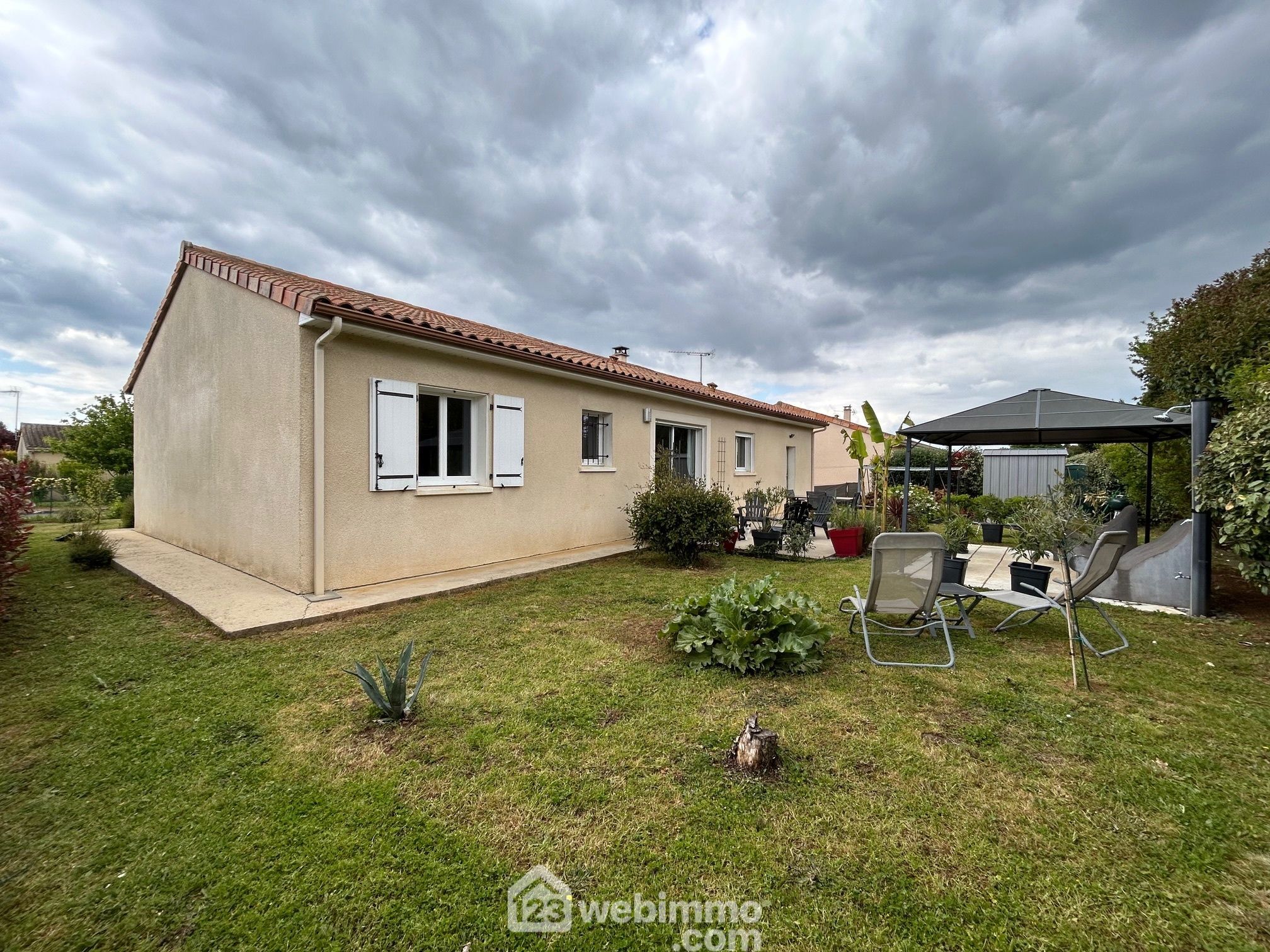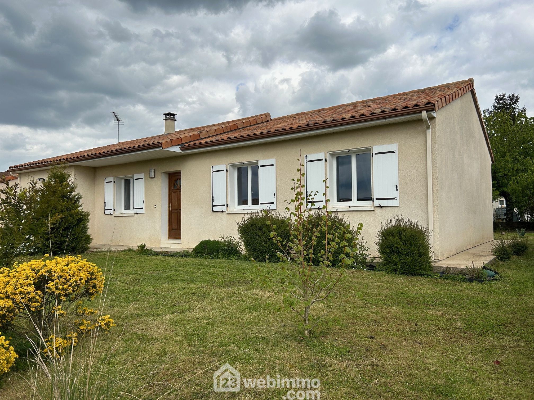 Maison de plain-pied, 4 pièces, 90 m2 habitables sur terrain de 650 m2 avec garage et cellier.