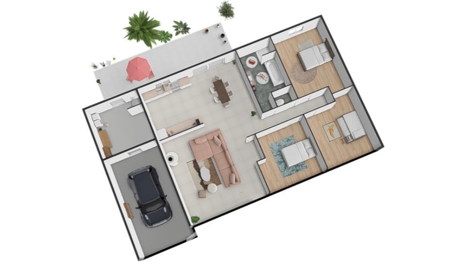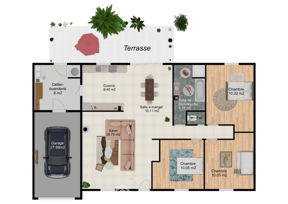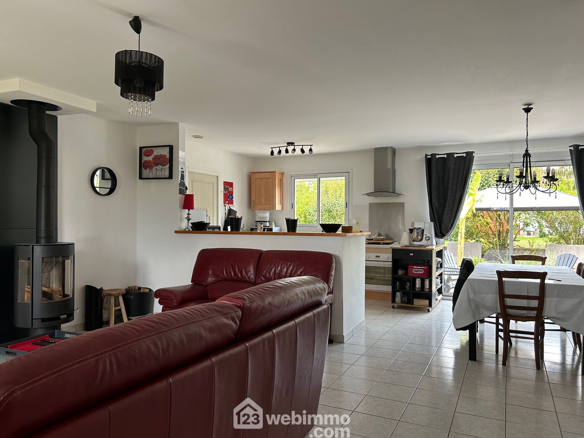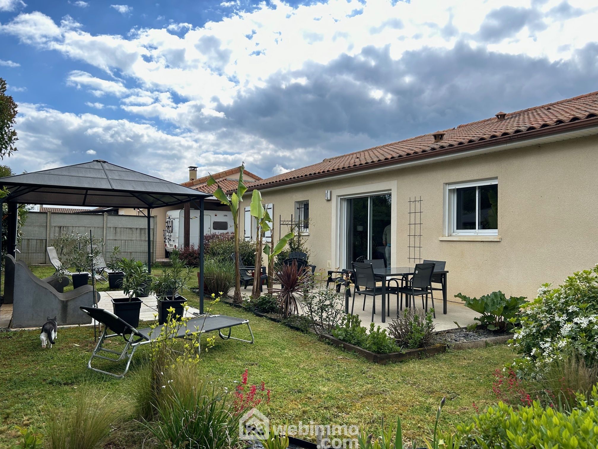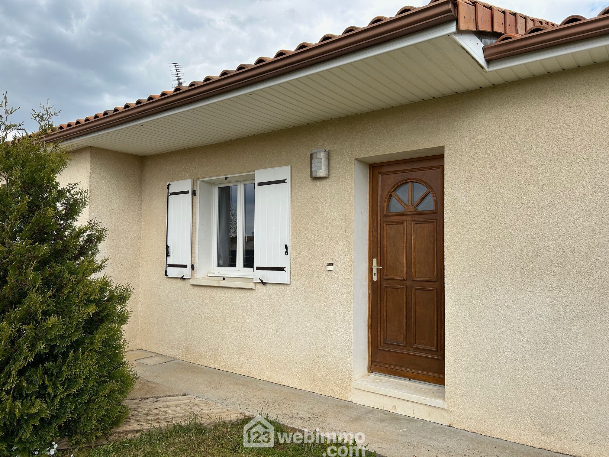 Maison de plain-pied, 4 pièces, 90 m2 habitables sur terrain de 650 m2 avec garage et cellier.