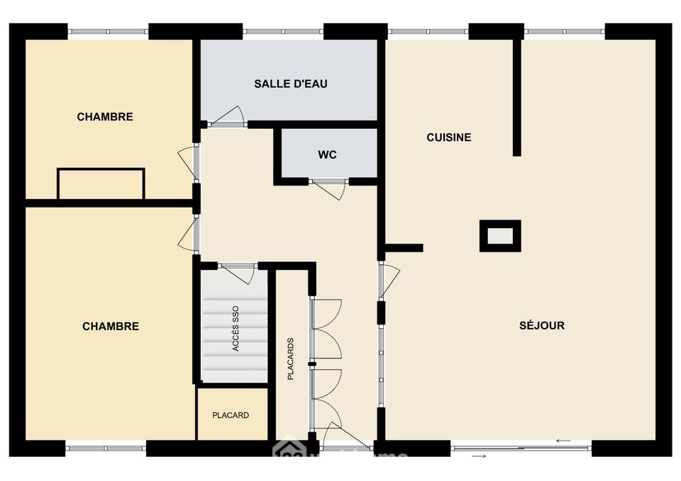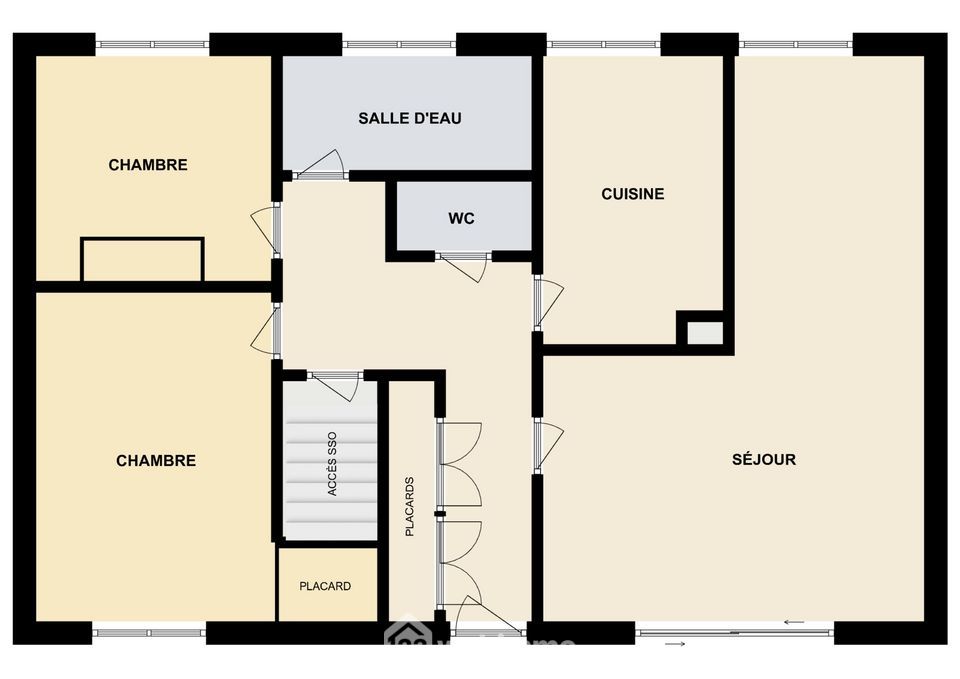 Maison sur sous-sol, 90 m2 habitables,4 pièces, 3 chambres, sur terrain clos de 340 m2.