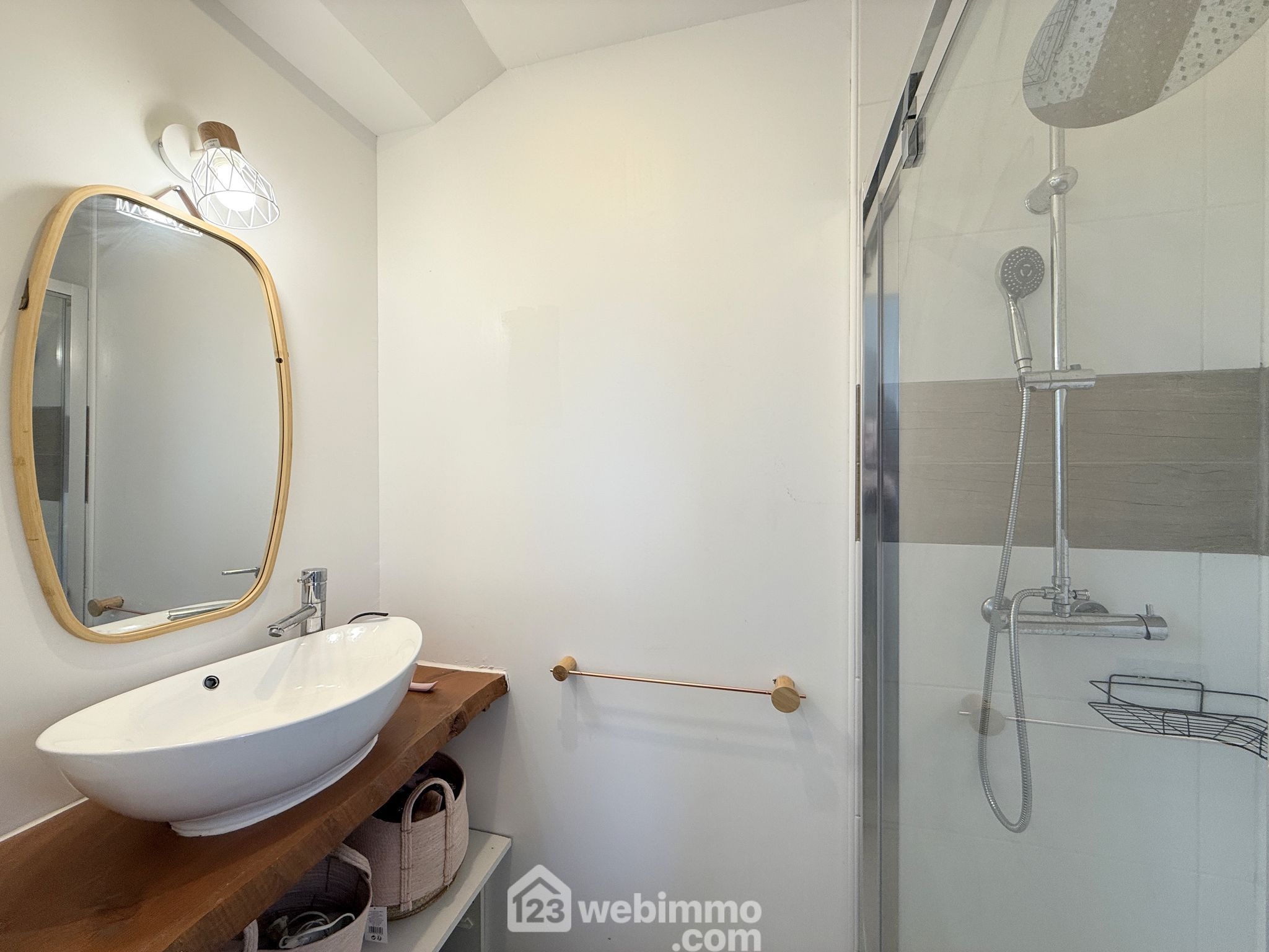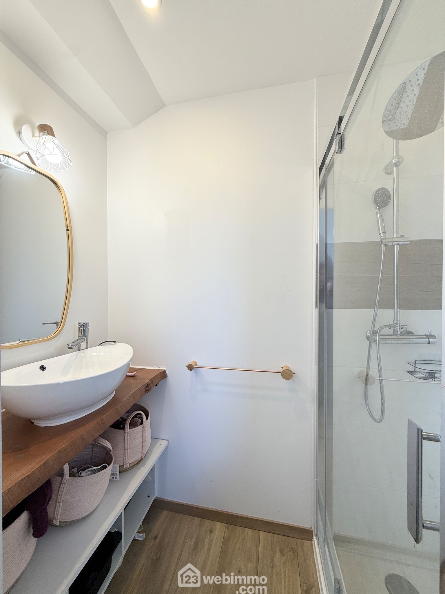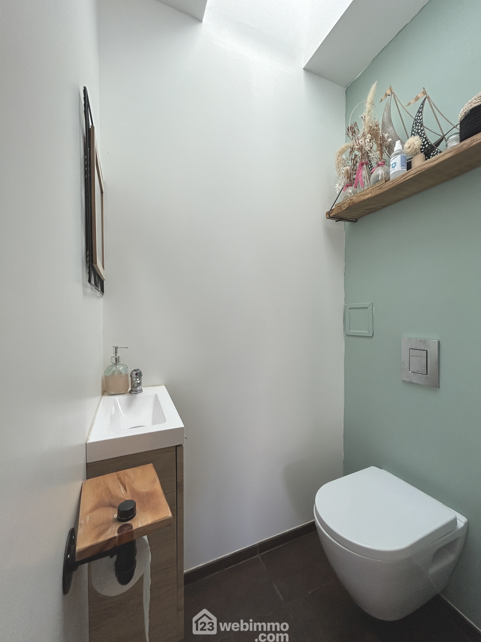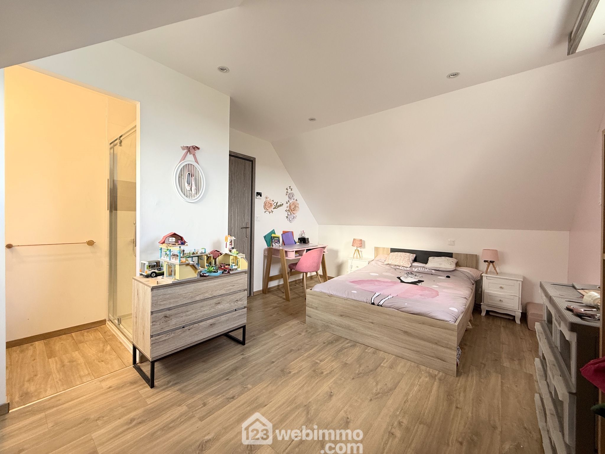 À l’étage, le palier dessert deux suites parentales avec douches, de 16,5m² et 15,5m² au sol (13,5m² et 12,5m² habitables) ainsi qu'un WC indépendant.