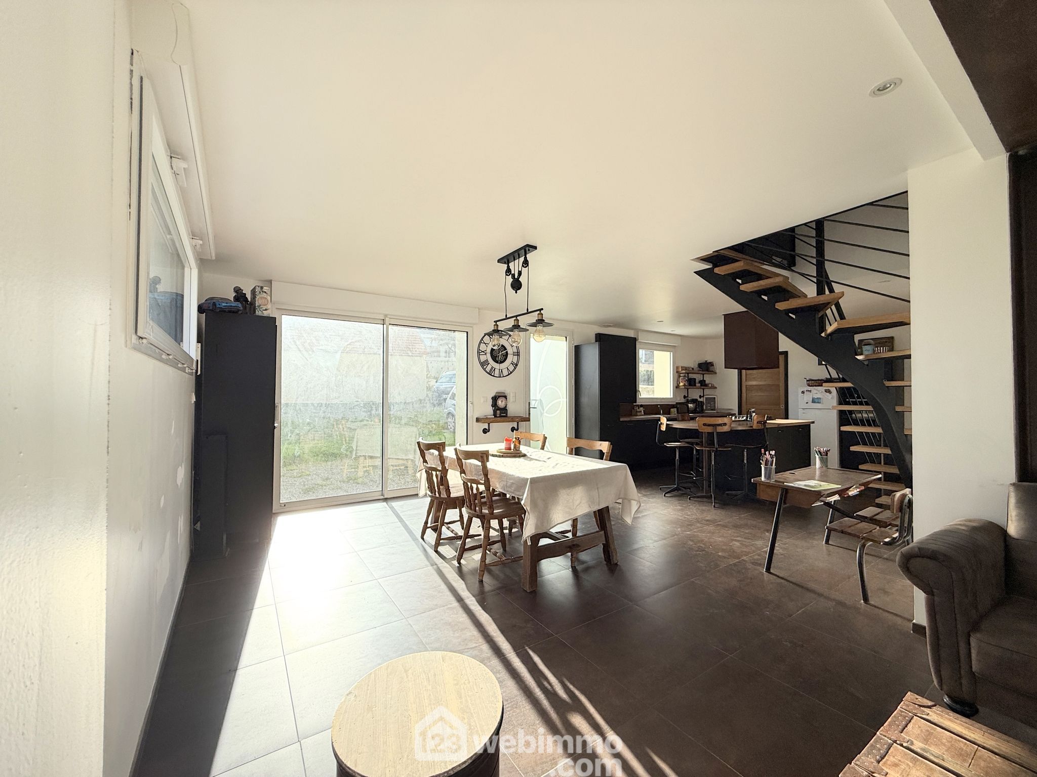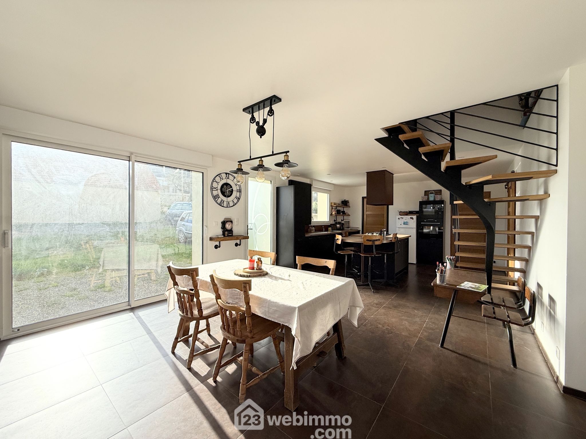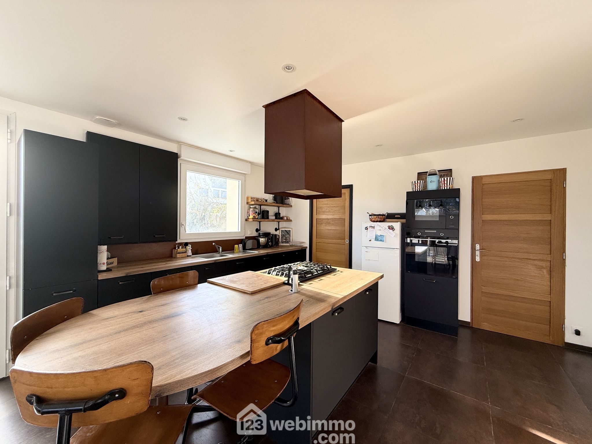 Le rez-de-chaussée, qui offre une vie de plain-pied, comprend une belle pièce de vie de 47m² gorgée de lumière, avec un espace salon-séjour et une cuisine ouverte aménagée et équipée.