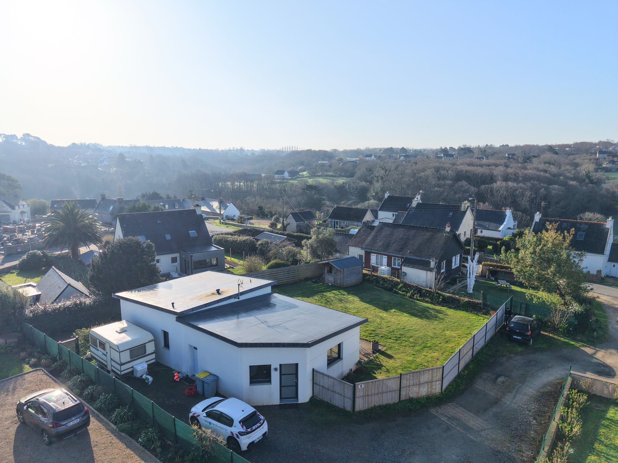Sur la commune de Trédrez-Locquémeau, à 300m à pied de la plage et 500m de l'épicerie-boulangerie, maison contemporaine de plain-pied de 90m² édifiée en 2017, sur un terrain de 642m², orientée Sud.