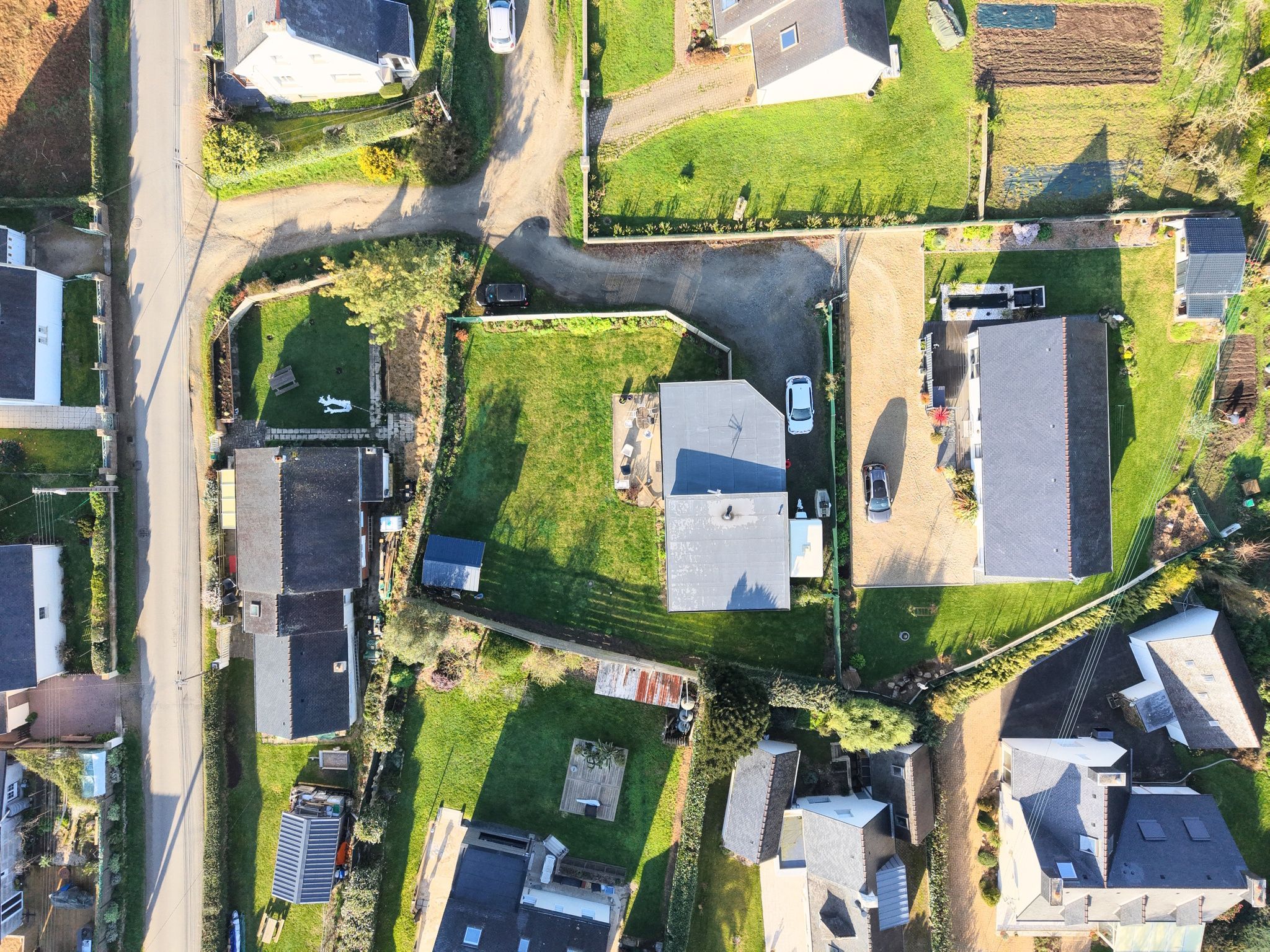 A l'extérieur, le terrain est entièrement clos, plat et facile d'entretien. Les clôtures en bois et grillagées sur les côtés apportent intimité et sécurité. Le jardin bénéficie d’une bonne exposition et d’une belle luminosité tout au long de la journée. Un abri de jardin complète l’ensemble.