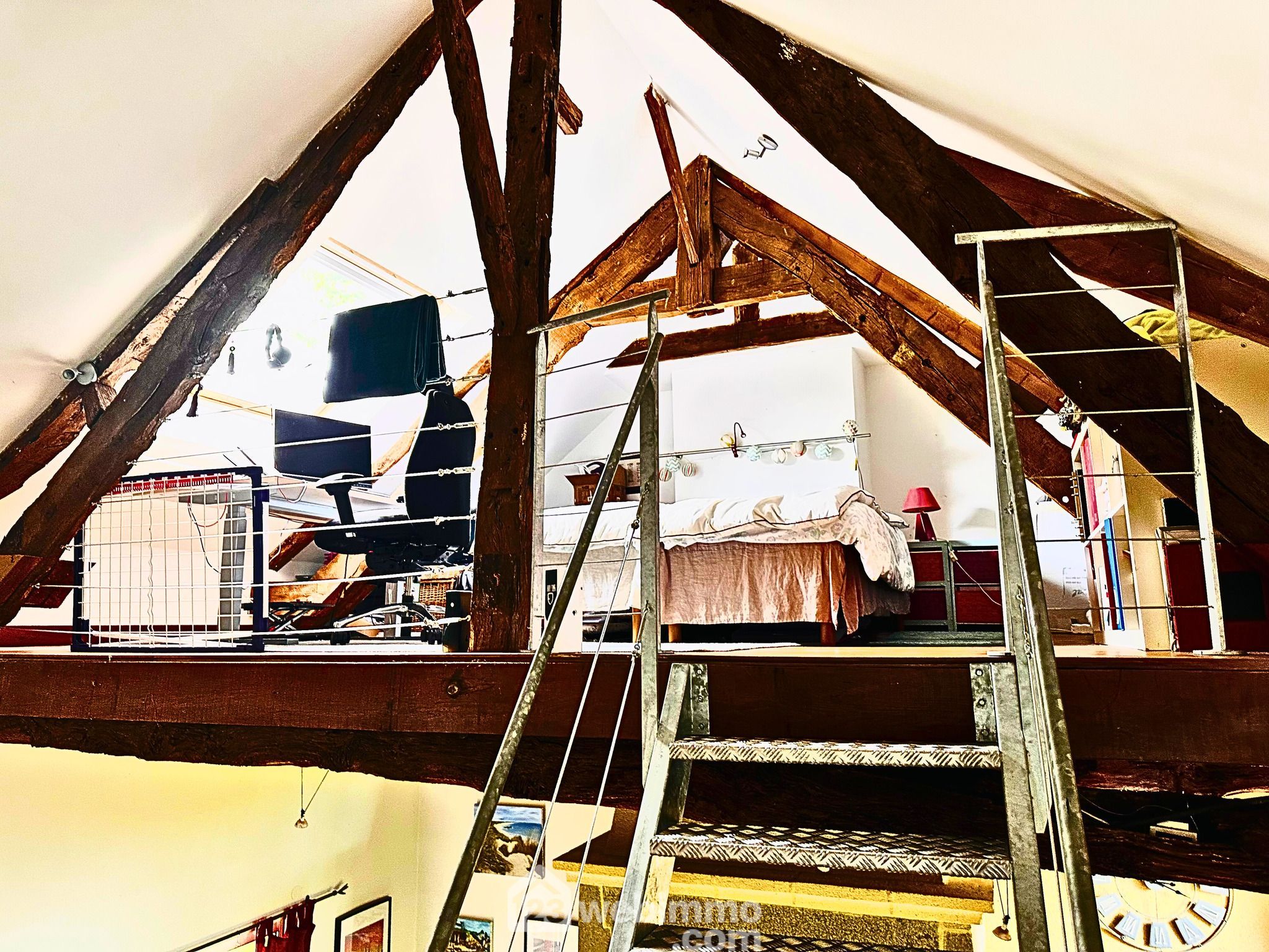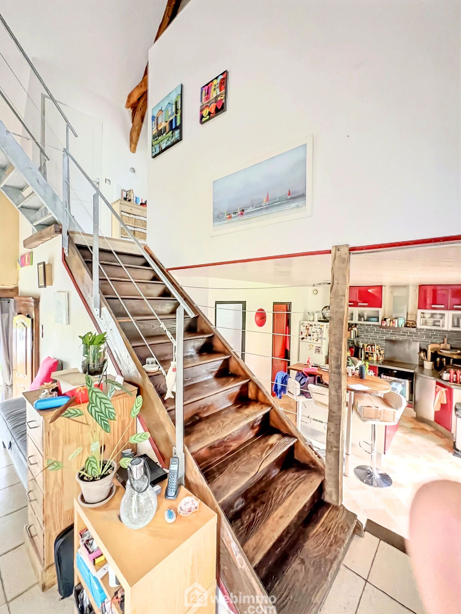 -Des escaliers en bois élégants mènent à l’espace nuit à l'étage, composé de deux chambres lumineuses et d’une mezzanine pouvant servir de chambre d’amis.