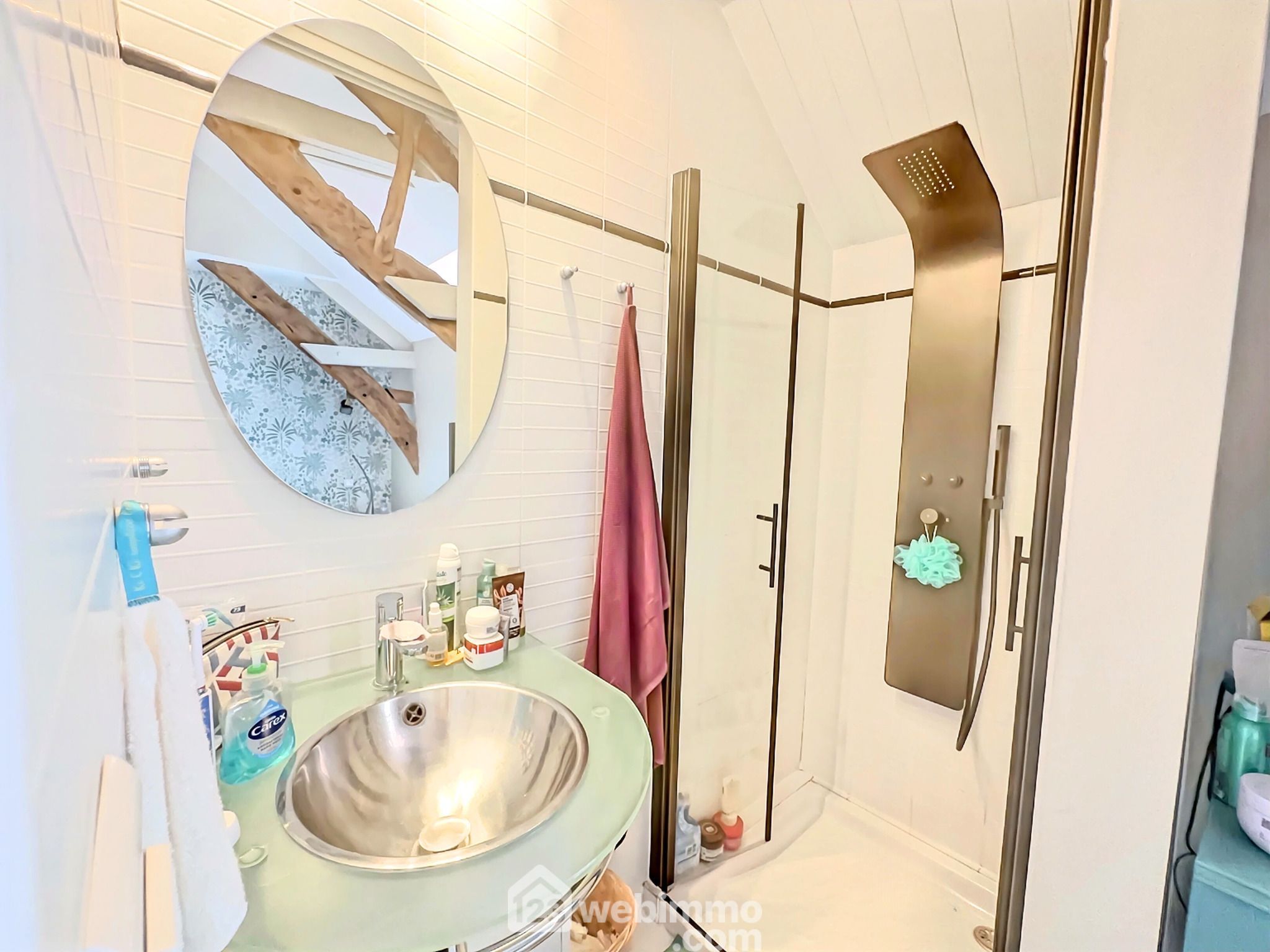 -La chambre parentale intègre, ce qui est rare pour un tel bien, une autre salle d’eau moderne, composée d'une douche qui ajoute au confort de cette demeure. Le premier étage dispose également de toilettes facilement accessibles depuis les chambres.