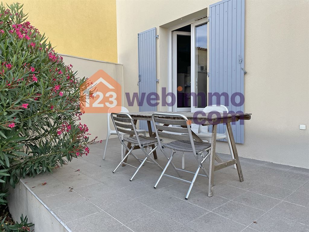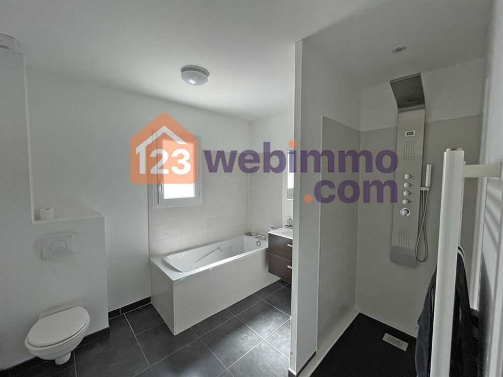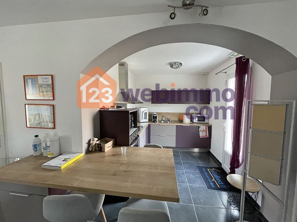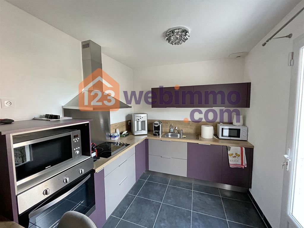 Entrée, pièce de vie composée de salon salle-à-manger avec cuisine ouverte aménagée le tout donnant sur terrasse et jardin, wc. A l'étage: 3 chambres, salle de bains avec baignoire et douche + wc. La maison dispose d'un jardin et d'une terrasse et est située dans un quartier résidentiel. Garage et place de parking. Maison adaptée PMR.