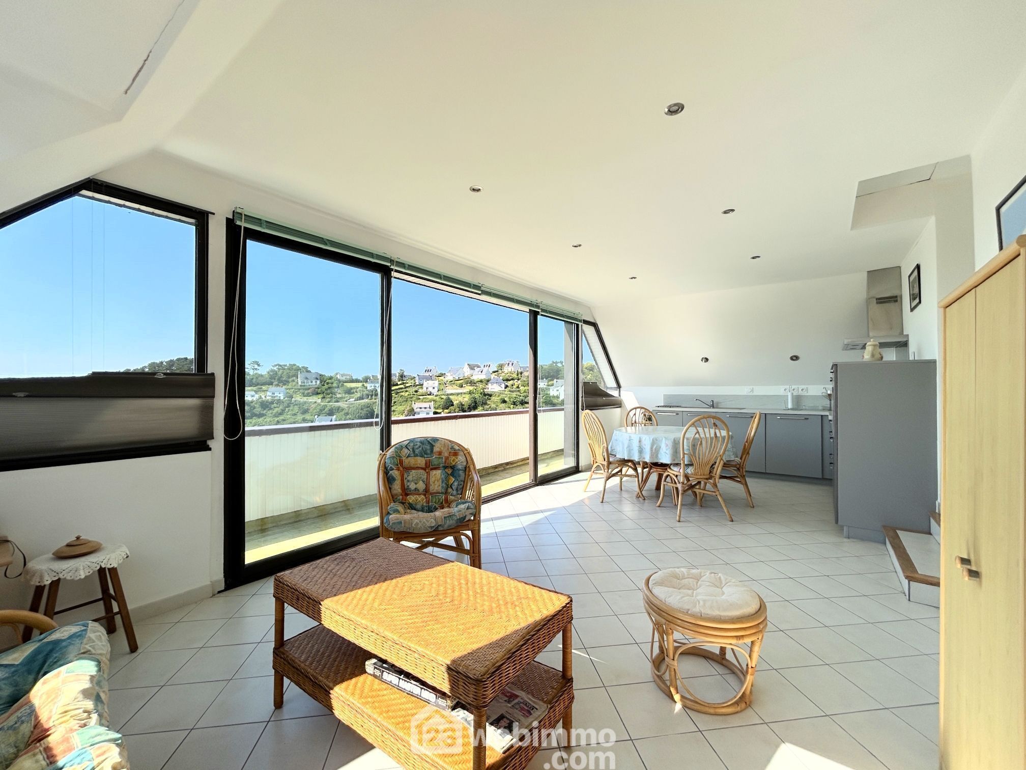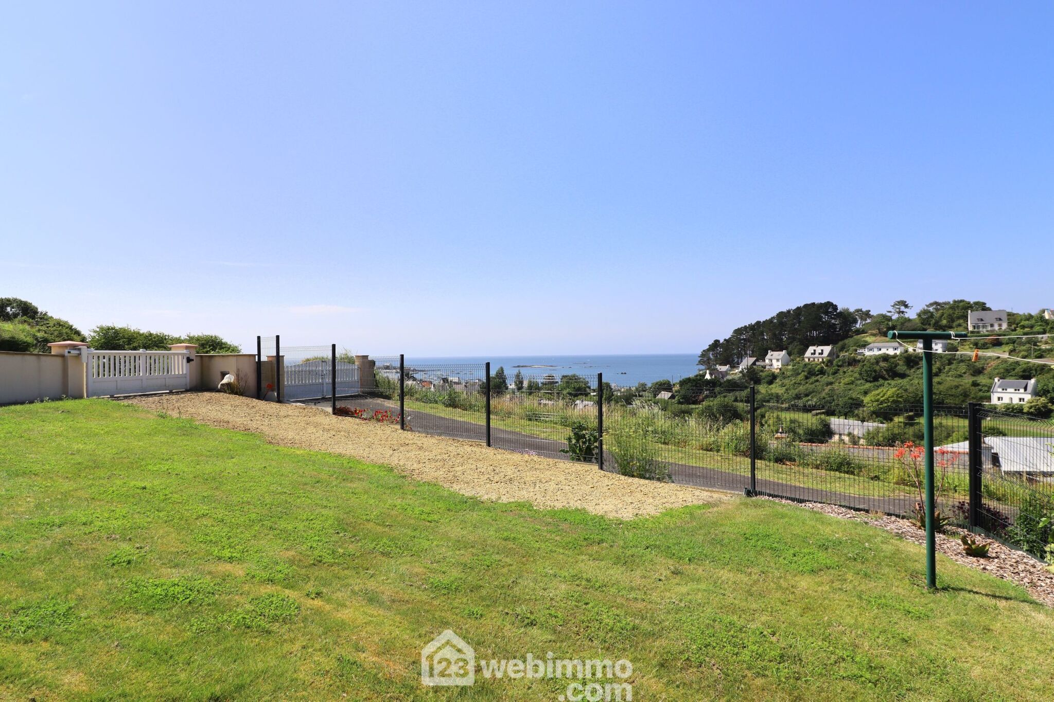 Sur Locquémeau, proches des commodités, maison de 92m2 avec vue mer imprenable plus garage de 27m2 sur terrain constructible de 360m2.